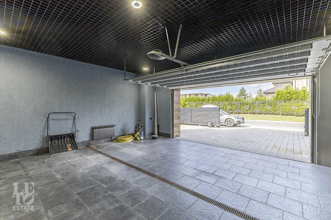Первый этаж: холл, гардеробная, кухня-столовая-гостиная с биокамином и выходом на крытую летнюю террасу, спальня, ванная комната, сауна, котельная, постирочная, отапливаемый гараж на 2 автомобиля.