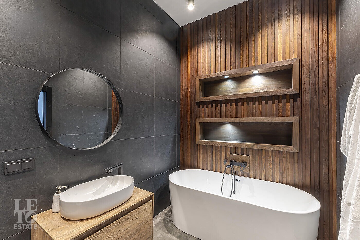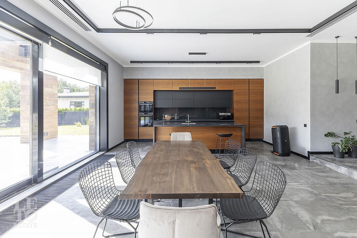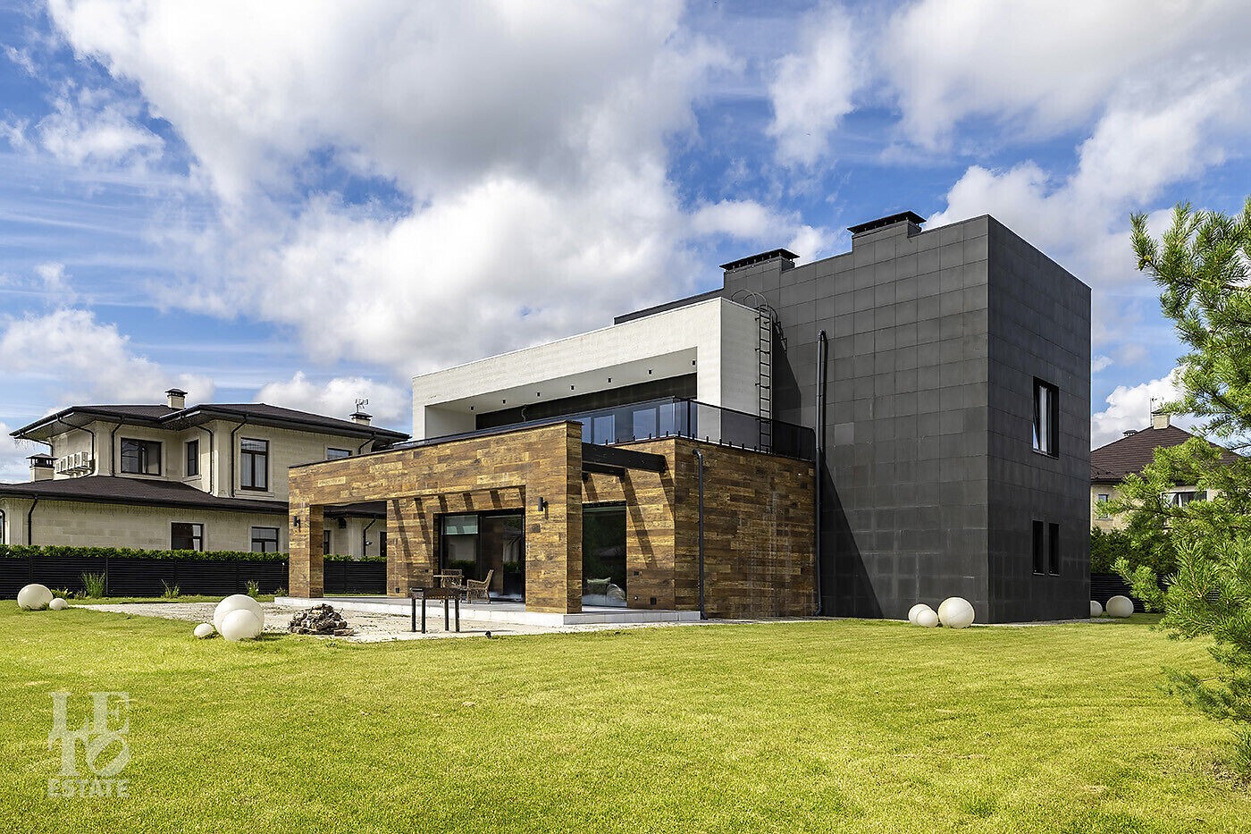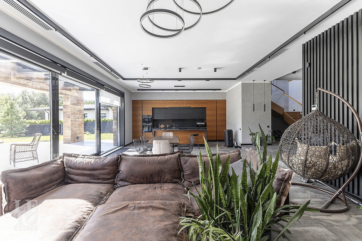 В доме выполнена отделка по индивидуальному проекту, в современном стиле с использованием дорогих, качественных материалов. Благодаря высоким потолкам и большим окнам в пол пространство наполнено воздухом и светом. Эксклюзивные дизайнерские решения придают уникальность внутреннему пространству дома.