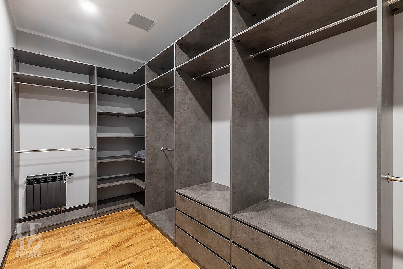Второй этаж: мастер-спальня со своей гардеробной и ванной комнатами, 3 спальни, каждая со своей гардеробной и ванной комнатами, балкон.