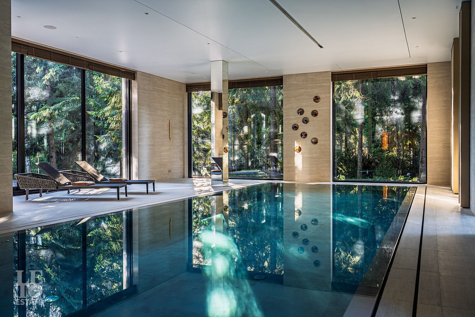 задачи: ещё одну детскую, спортивную зону, игровую или второй кабинет — пространство остаётся свободным и даёт запас для будущего. Спа-зона с бассейном 12 м, хаммамом и сауной,