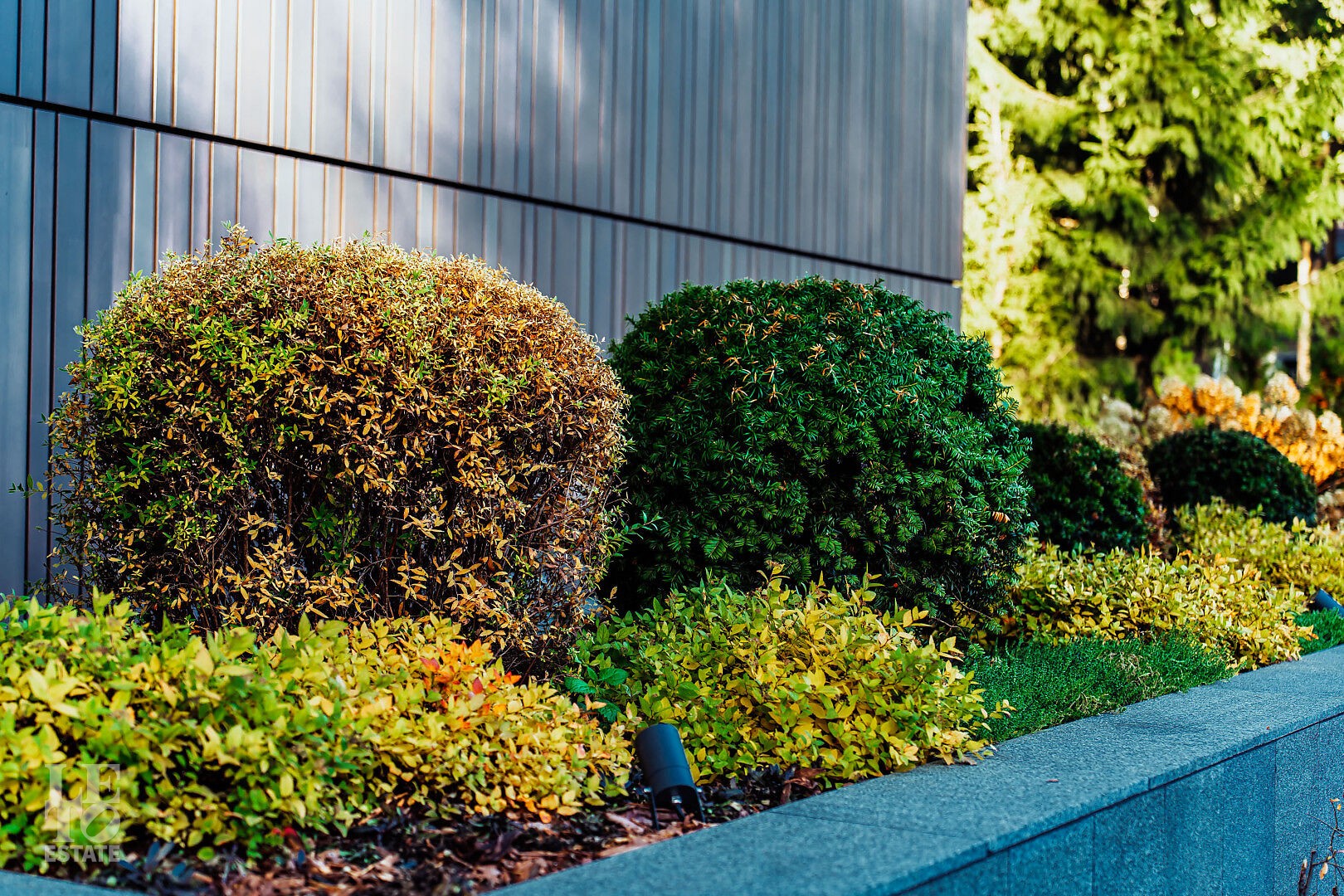 Дома в современном стиле с добавлениями классических элементов прекрасно вписываются в природный ландшафт. Сосны и стройные ели не только окружают посёлок, но и высажены на каждом придомовом участке. Растения для всех посёлков Villagio Estate были привезены из самого крупного питомника Европы — компании Imperial Garden.