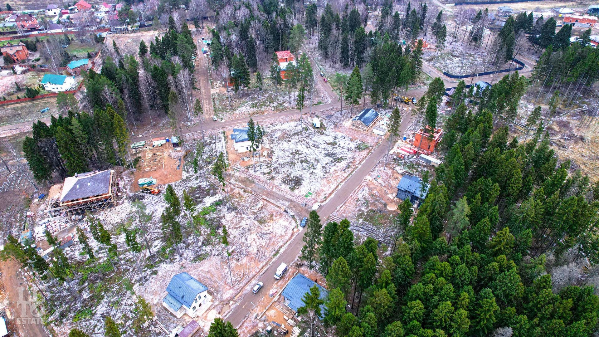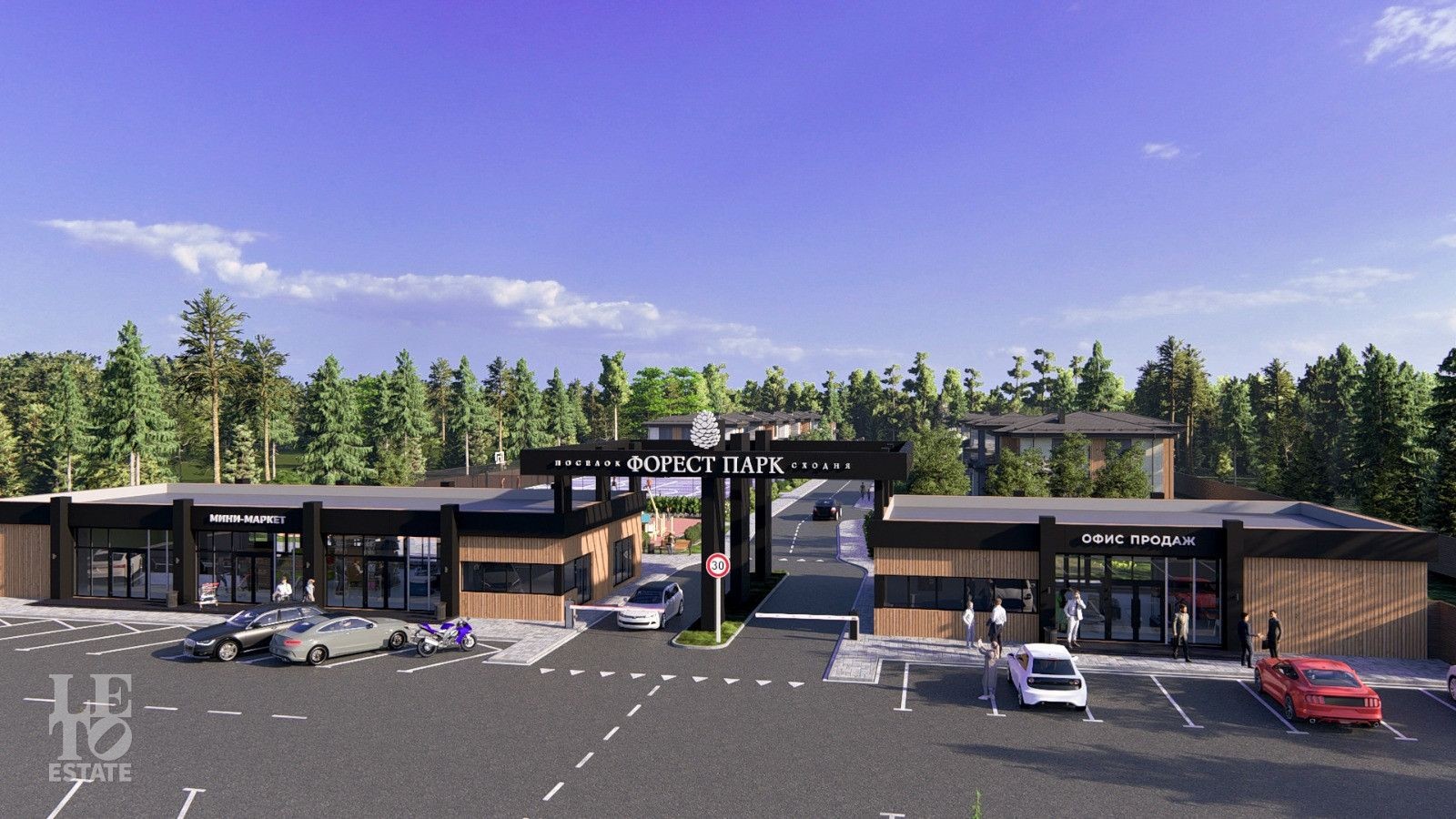 Также предусмотрены асфальтированные дороги и гостевая парковка. Главной особенностью поселка является его окружение лесом. Жители могут наслаждаться свежим воздухом, тишиной и пением птиц.