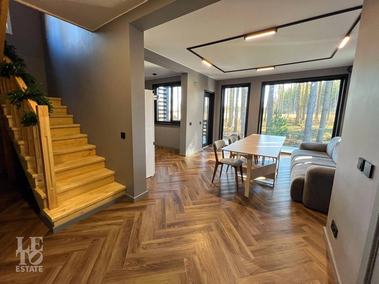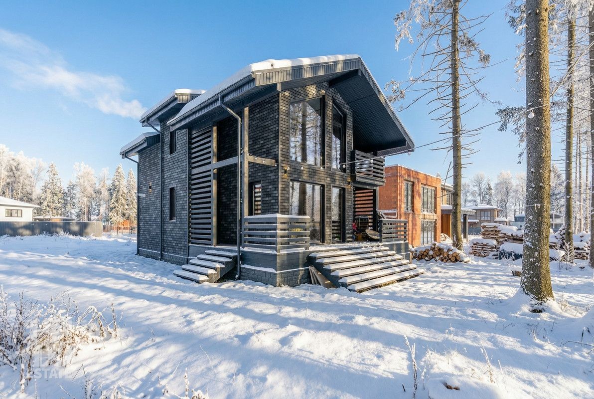 В этом современном доме продумана каждая деталь для комфортной и безопасной жизни. Авторская архитектура и природное окружение создают особую эстетику и чувство простора. Панорамные окна в гостиной и спальнях открывают живописные пейзажи, обеспечивая приватность и ощущение единения с природой.