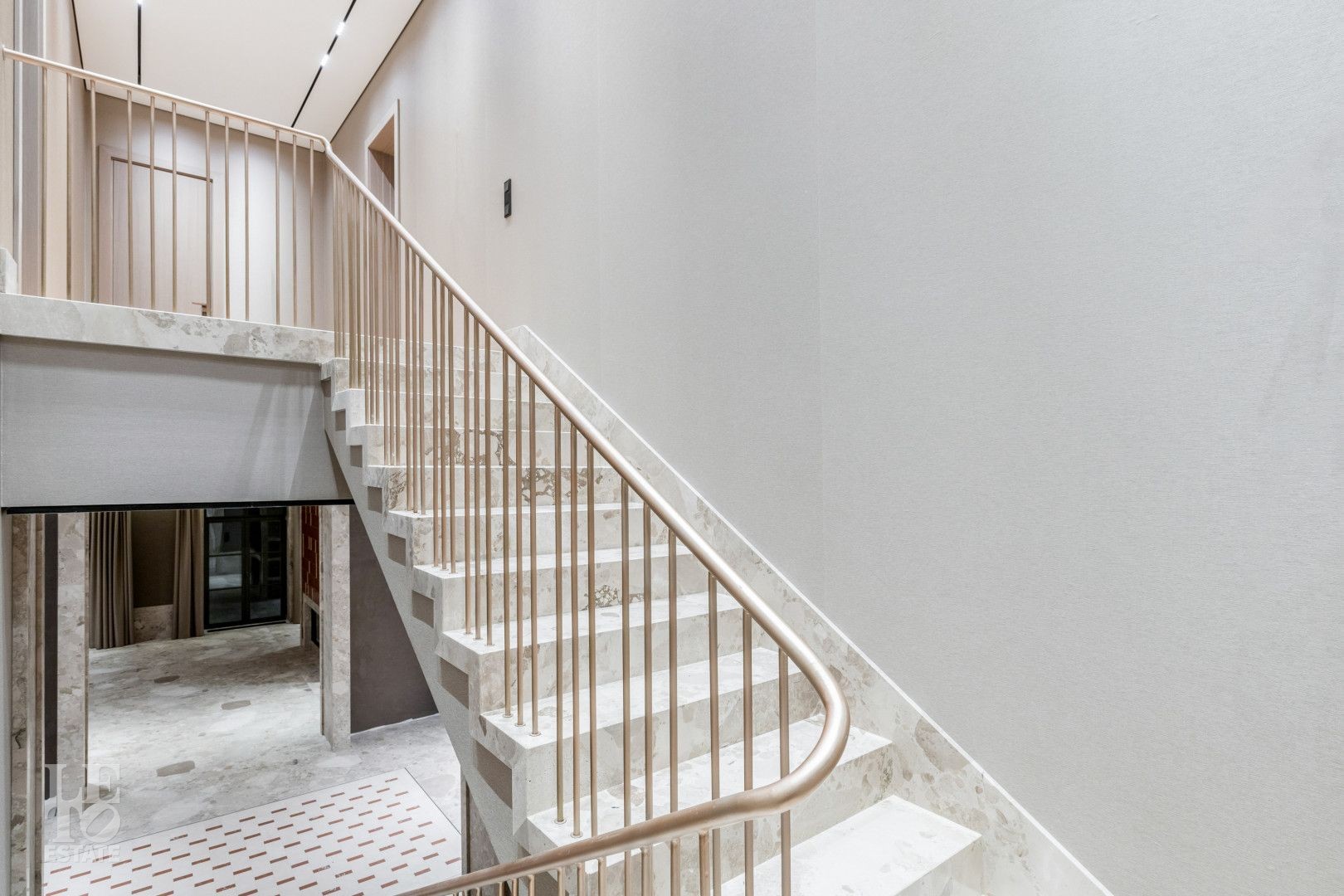 Второй этаж: мастер-спальня с санузлом и гардеробными, две спальни с индивидуальными ванными, блок для персонала.