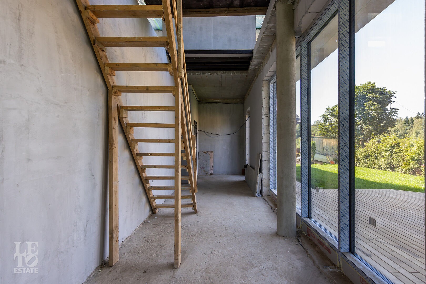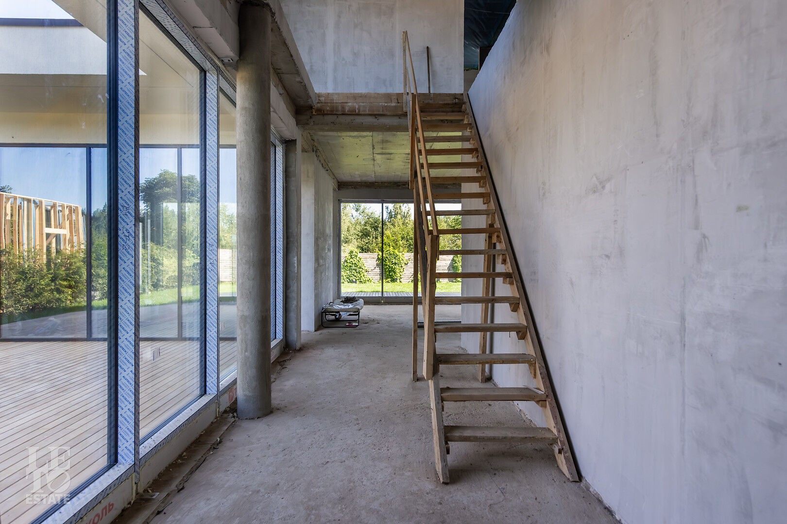 Прочность и долговечность здания обеспечены его конструктивом. Построен из газобетонных блоков, известные своей энергоэффективностью, на надежном фундаменте - плита. Внутри сделаны монолитные перекрытия. Завершает образ дома эксплуатируемая кровля, предлагающая дополнительное пространство для отдыха на свежем воздухе.