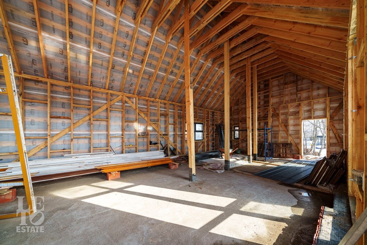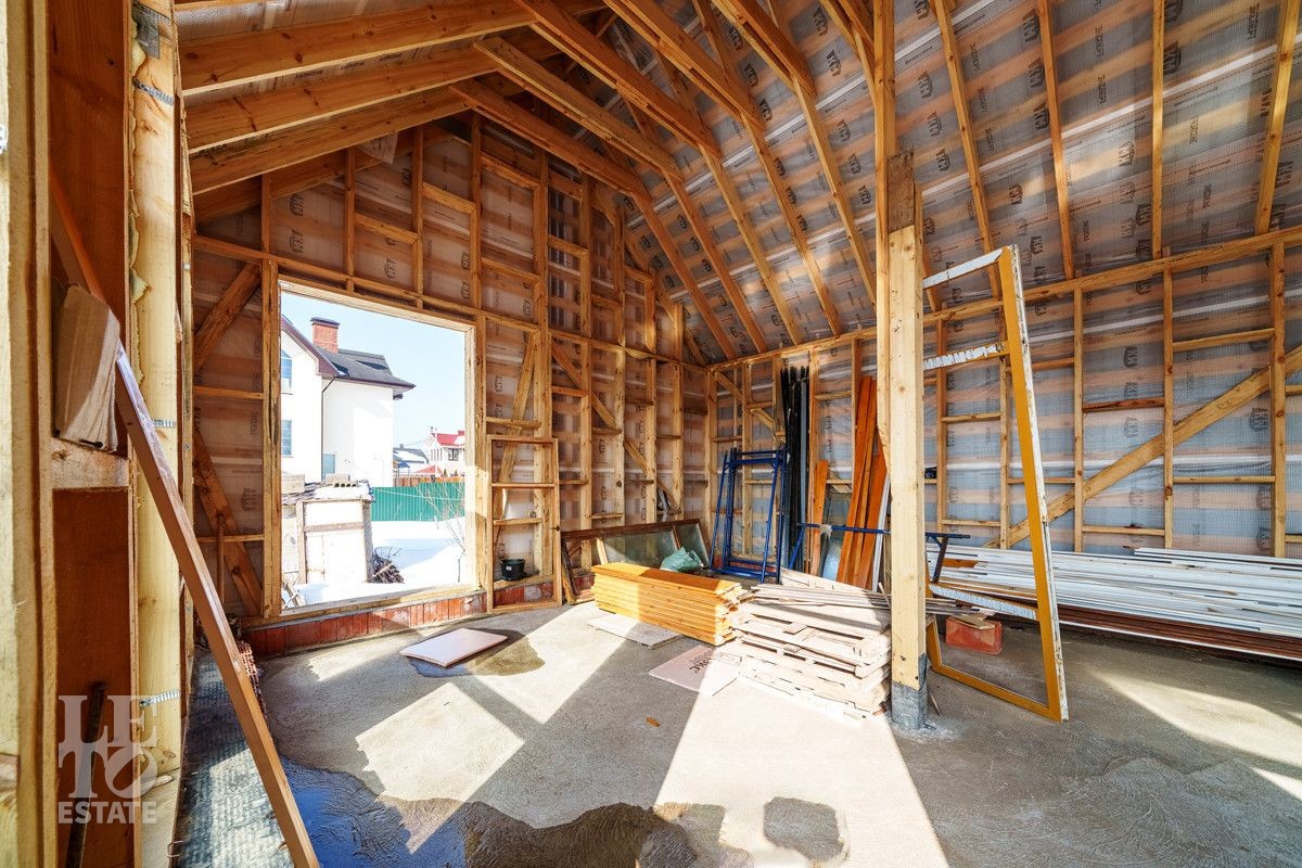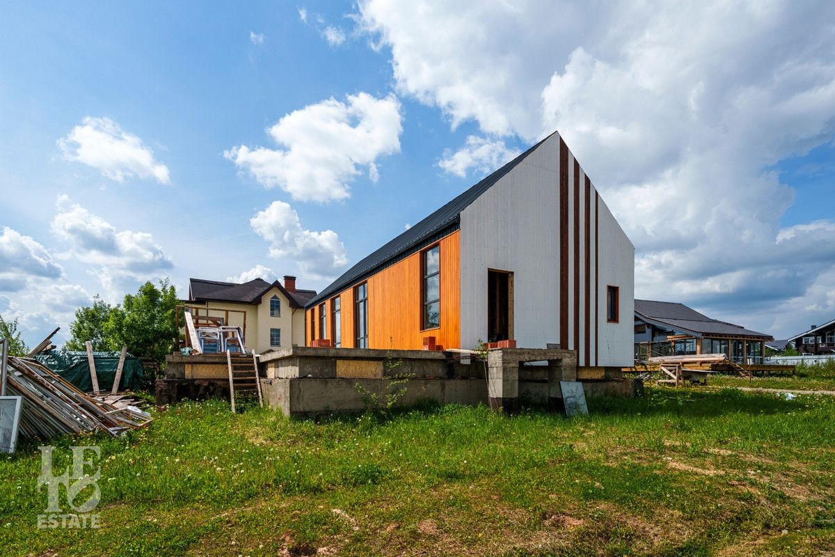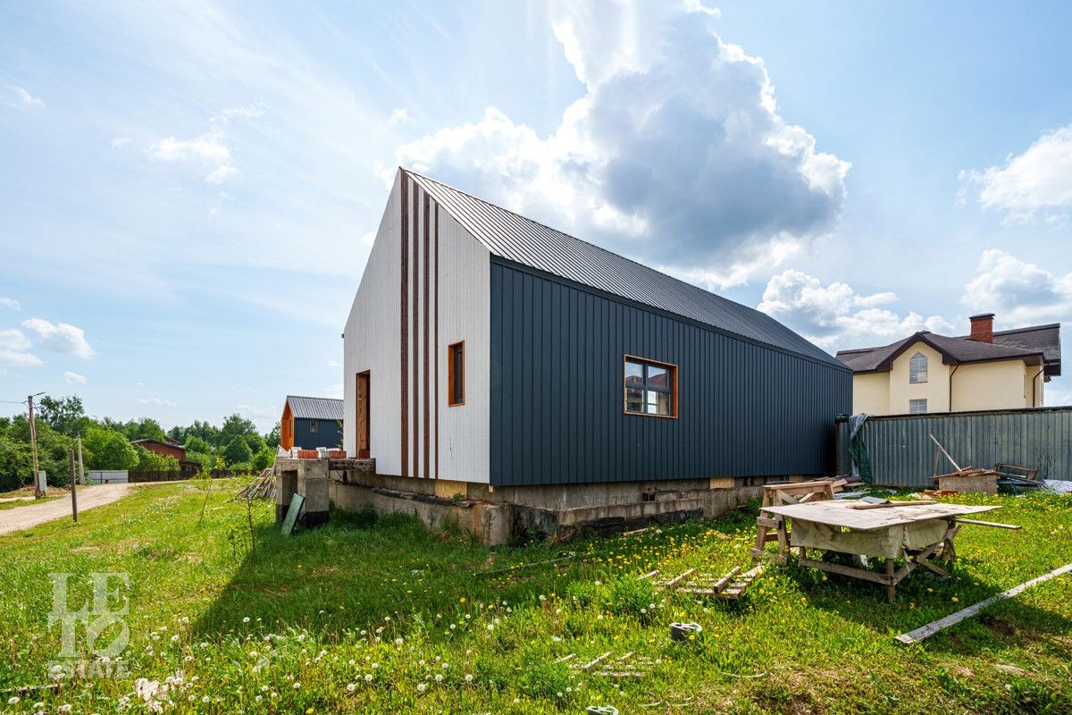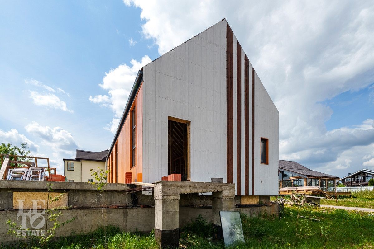 Дом построен в 2023 году. Фундамент - монолитная плита 40 см с двойной гидрозоиляцией. Стены первого этажа построены по технологии монолит-кирпич. Второй этаж - стены и крыша каркасного типа (деревянные). Фасад обшит профилем премиум-класса "Барн" (фирма Стинерджи) и планкеном, окрашенным немецким маслом OSMO и краской Tikkurila Pesto.
