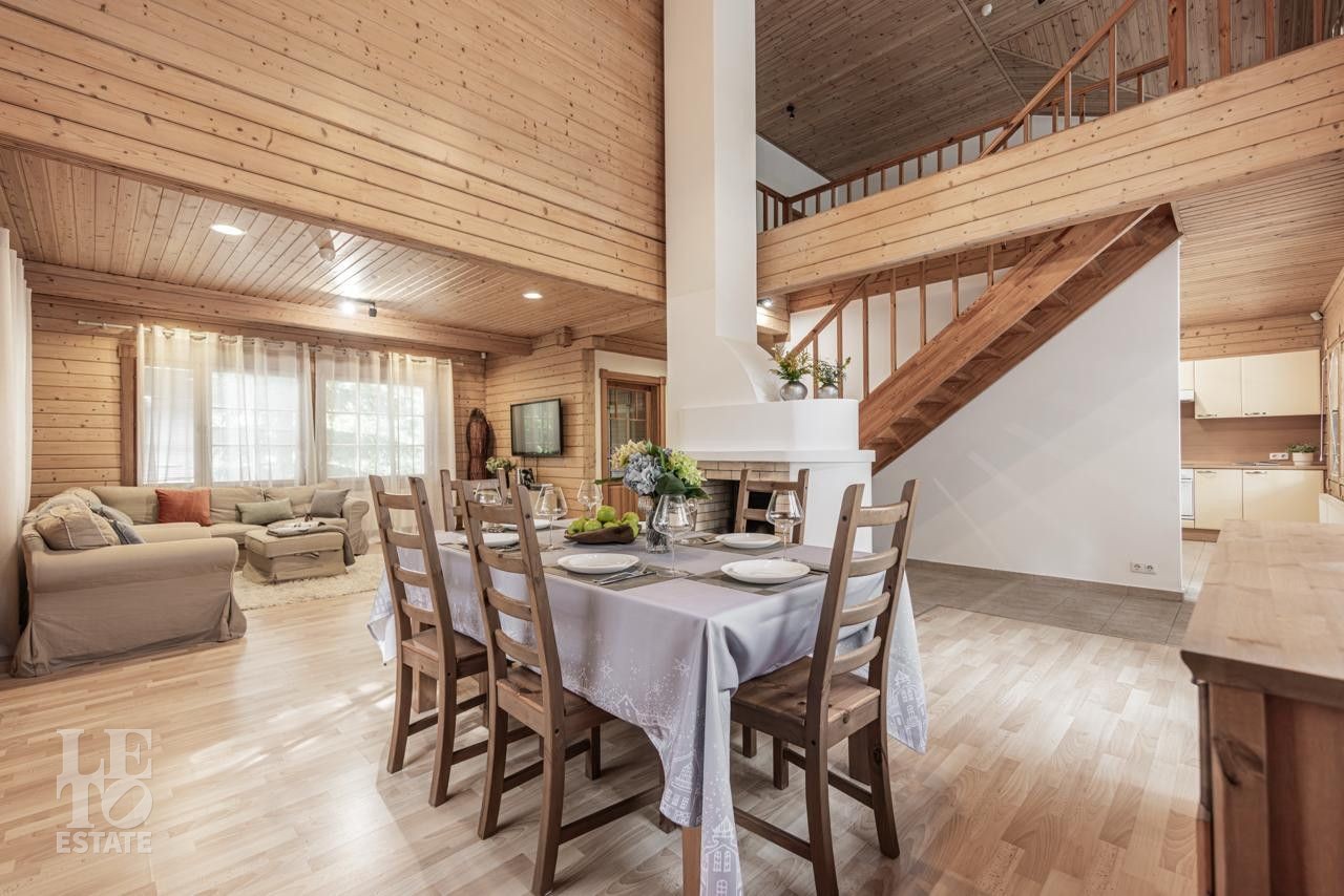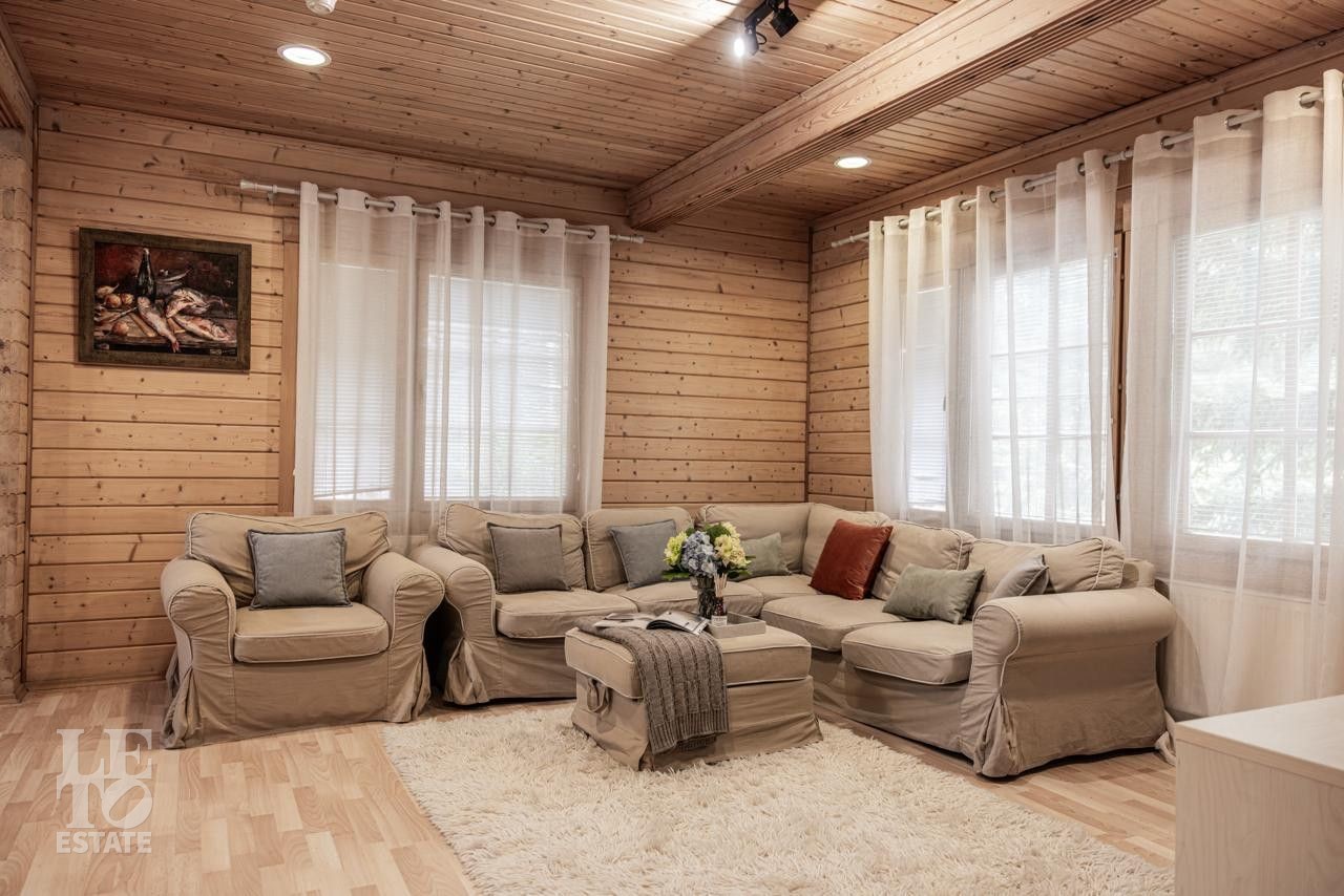 Дом 9*15м, 2 этажа, в очень хорошем состоянии, после косметического ремонта. В доме новая сауна. Общее состояние бруса идеальное! Ландшафт в общем едином стиле.