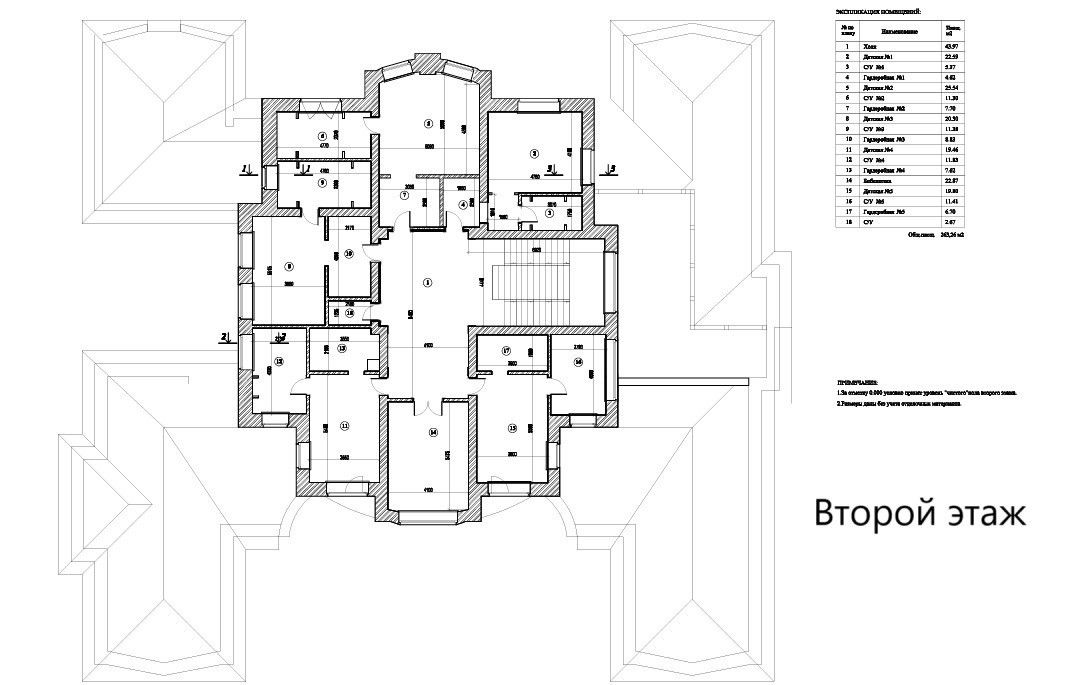 Второй этаж: холл, библиотека , пять спален, каждая со своим санузлом и гардеробными.