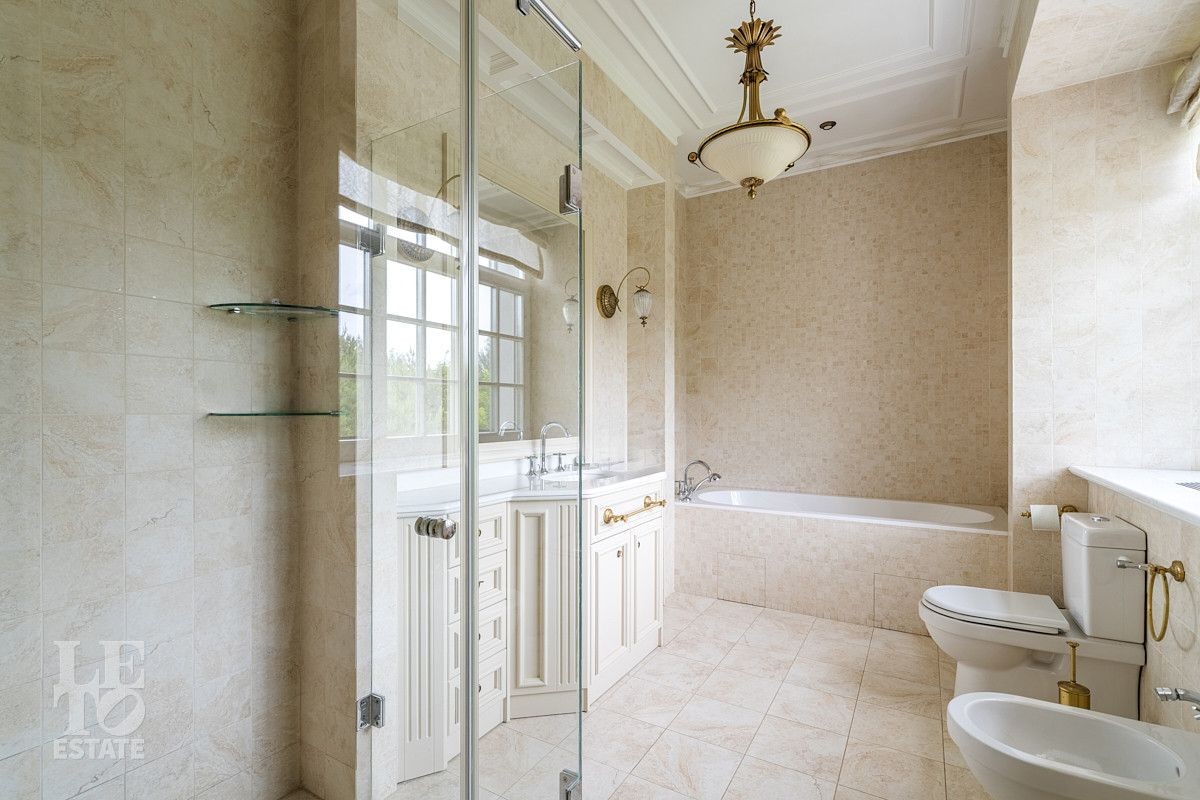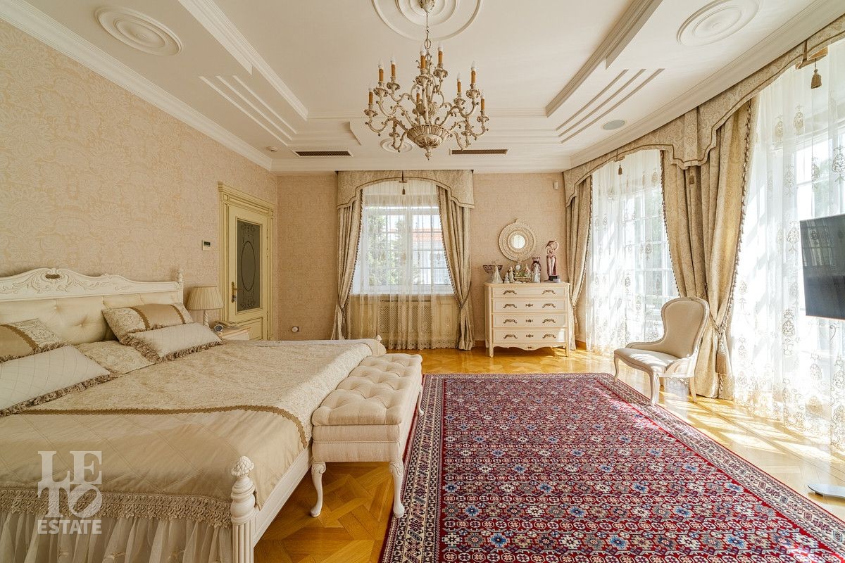 Особняк выполнен по авторскому архитектурному проекту, все детали интерьера - эксклюзивные и продуманы до мелочей. Архитектура и интерьер выдержаны в стиле современной классики: благородные породы дерева в отделке, мраморные полы и балюстрады, изысканная мебель, теплые тона и элегантные детали изготовлены по эскизам архитектора в единственном экземпляре и специально для этого дома. Дом полностью меблирован и укомплектован современной техникой, что позволяет заселиться сразу после покупки.