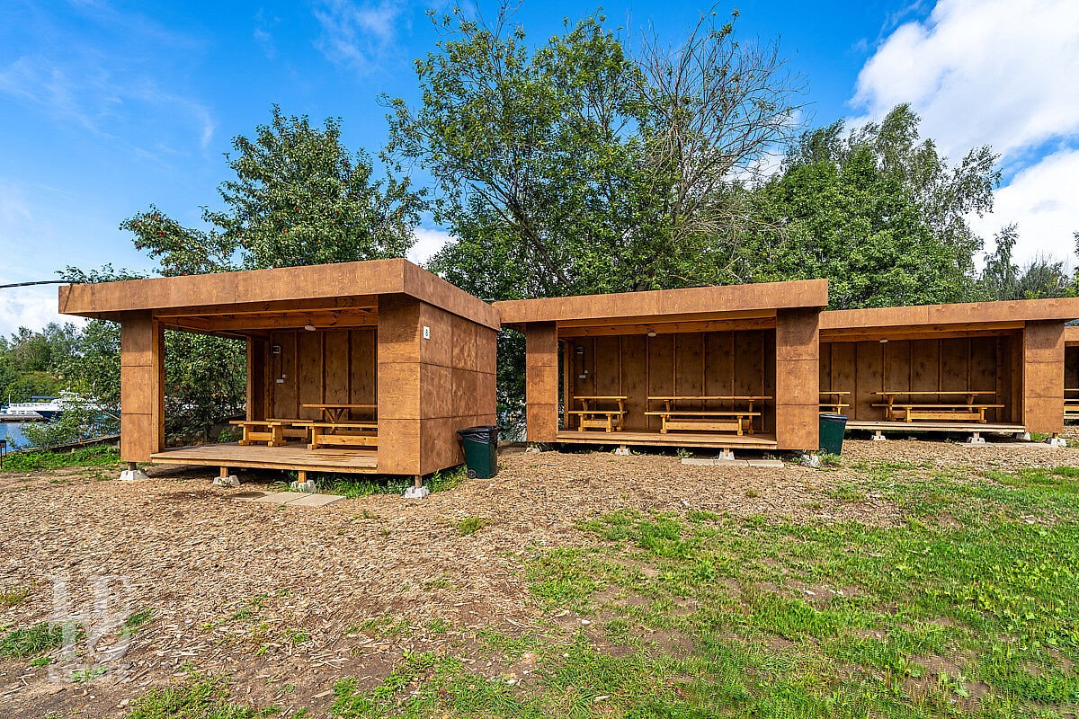• 19 панорамных беседок вместимостью от уютных «Фрейм» для компаний от 6 персон и «Терра» для групп до 20 гостей, до просторной «Аркады», рассчитанной на 40 человек.