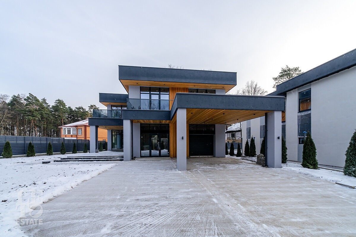 Фасад дома комбинированный, выполнен из натуральной лиственницы и декоративной штукатурки. При строительстве и отделке были использованы высококачественные, дорогостоящие материалы. Дом подключен ко всем коммуникациям. В доме выполнена разводка систем отопления и электроснабжения. Стены оштукатурены. Есть дизайн проект дома.
