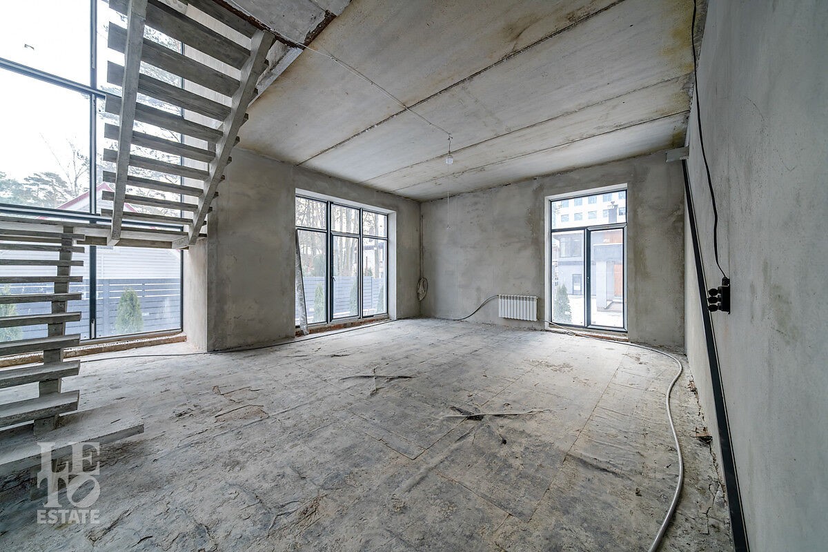 Предлагаем Вашему вниманию новый современный дом под чистовую отделку площадью 430 кв. м с бассейном в ДНТ Спасатель-1, расположенном в 9 км от МКАД по Новорижскому шоссе. В доме очень светлая гостиная-столовая с панорамным остеклением и выходом на открытую террасу.