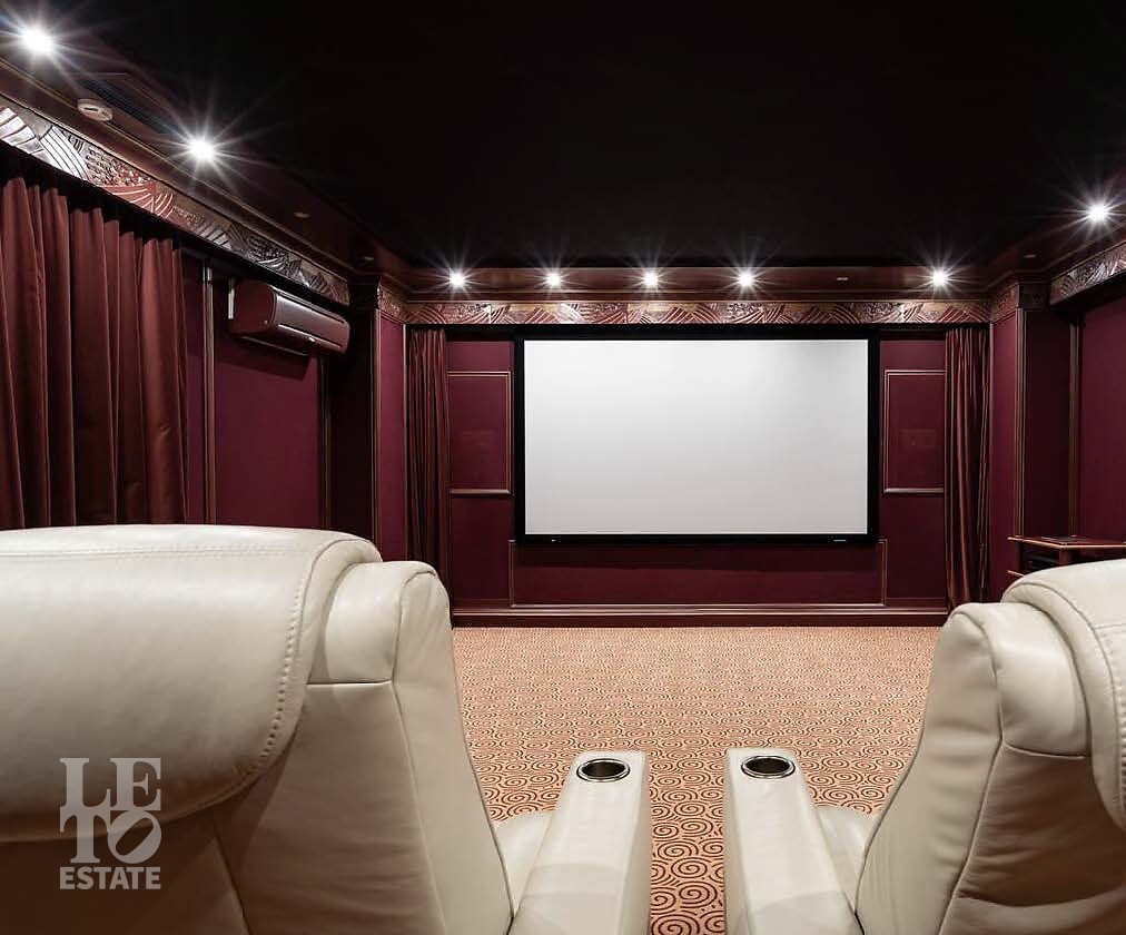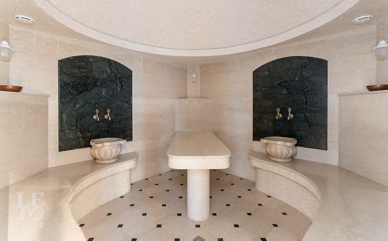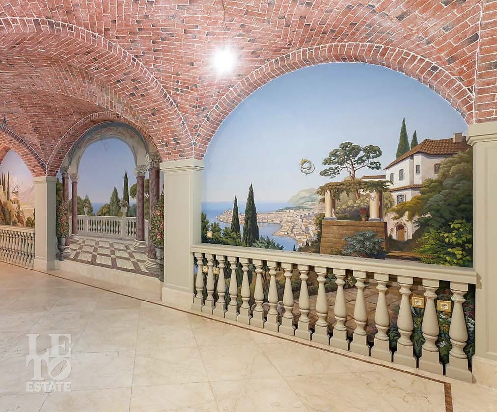 Главная входная зона с парадной лестницей с кованными перилами, большая столовая с выходом на просторную террасу, каминный зал, кинотеатр, бильярдная, дегустационный зал, рабочая кухня, общая кухня с лифтом для подачи блюд, гараж на 2 автомобиля, помещения для персонала и технические помещения, 7 мастер-спален с выходом на балконы, кабинеты с выходом на балконы, общие коридоры с изящной лепниной и декоративными элементами, террасы и балконы со светлой французской лепниной, зимний сад, 15 санузлов.