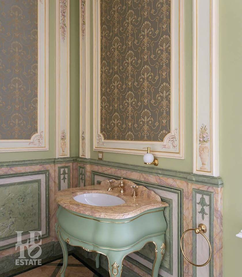 Детали интерьера — лепные кружево, росписи работы Ивана Глазунова, золотое золочение, декоративные вставки в стиле французской классики.