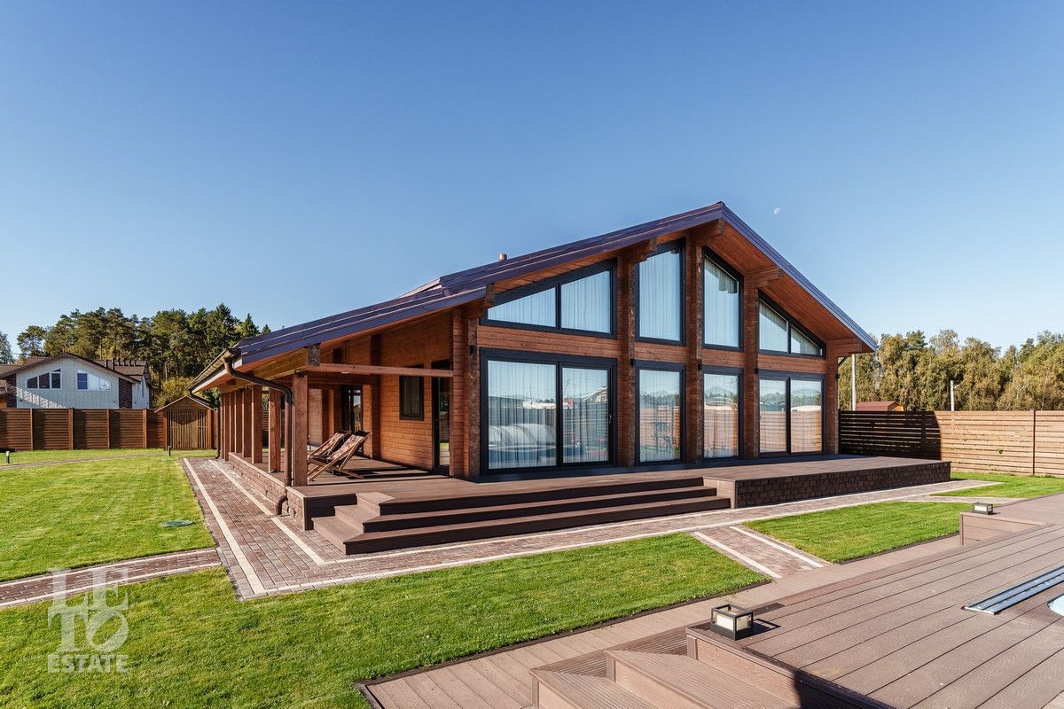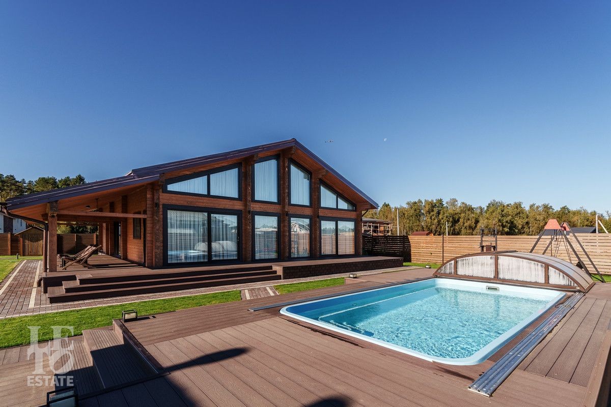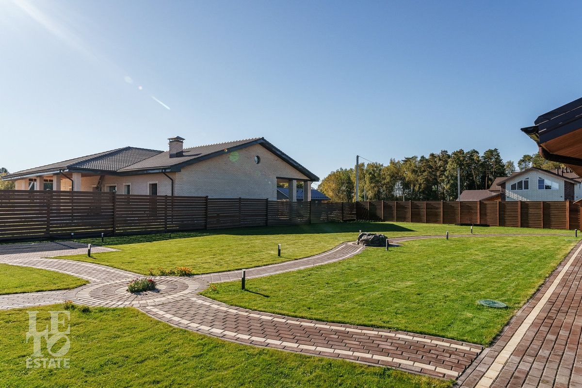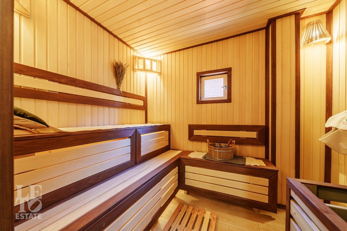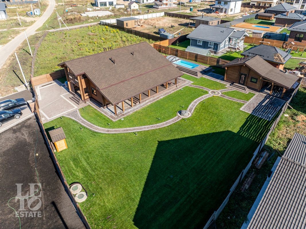 Благоустроенный участок, окружен деревянным забором и оформлен в соответствии с ландшафтным дизайном, установлены уличные фонари и вымощены дорожки. Дополнительно на территории расположены: уличный бассейн с подогревом, удобная мангальная зона примыкает к банному комплексу под навесом, спортивная площадка и качели – все располагает для отдыха и приятного времяпрепровождения.