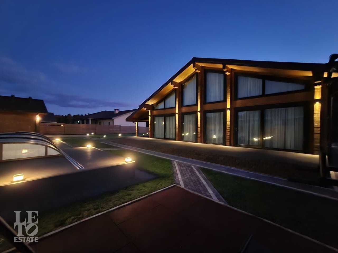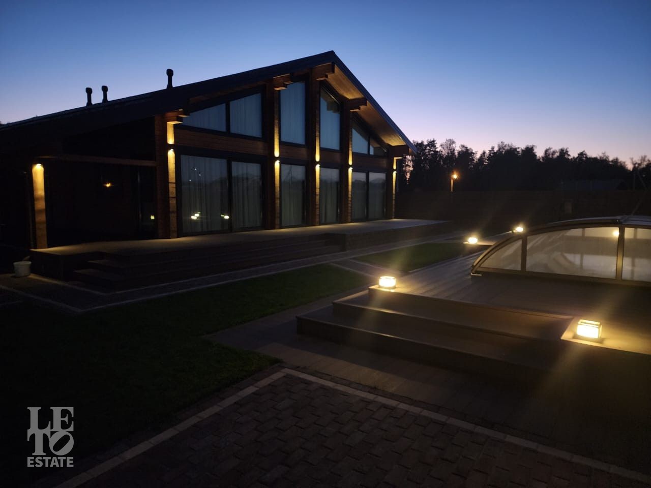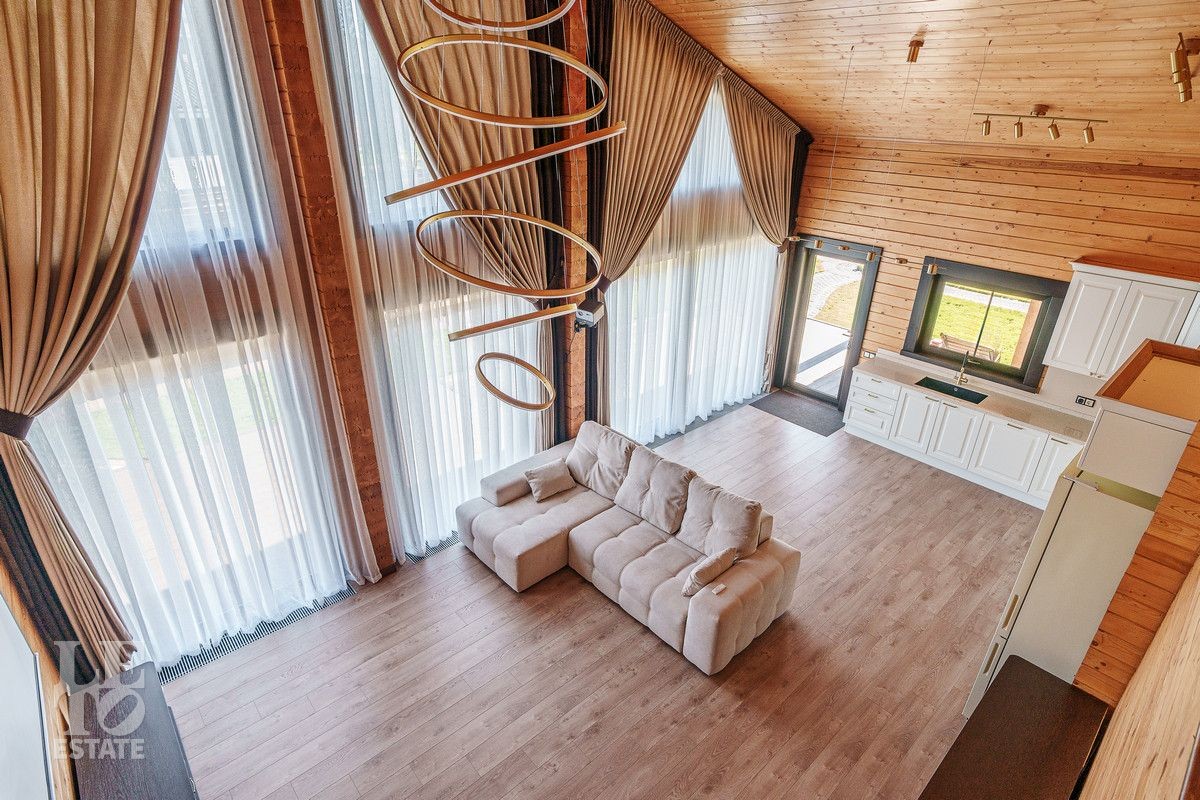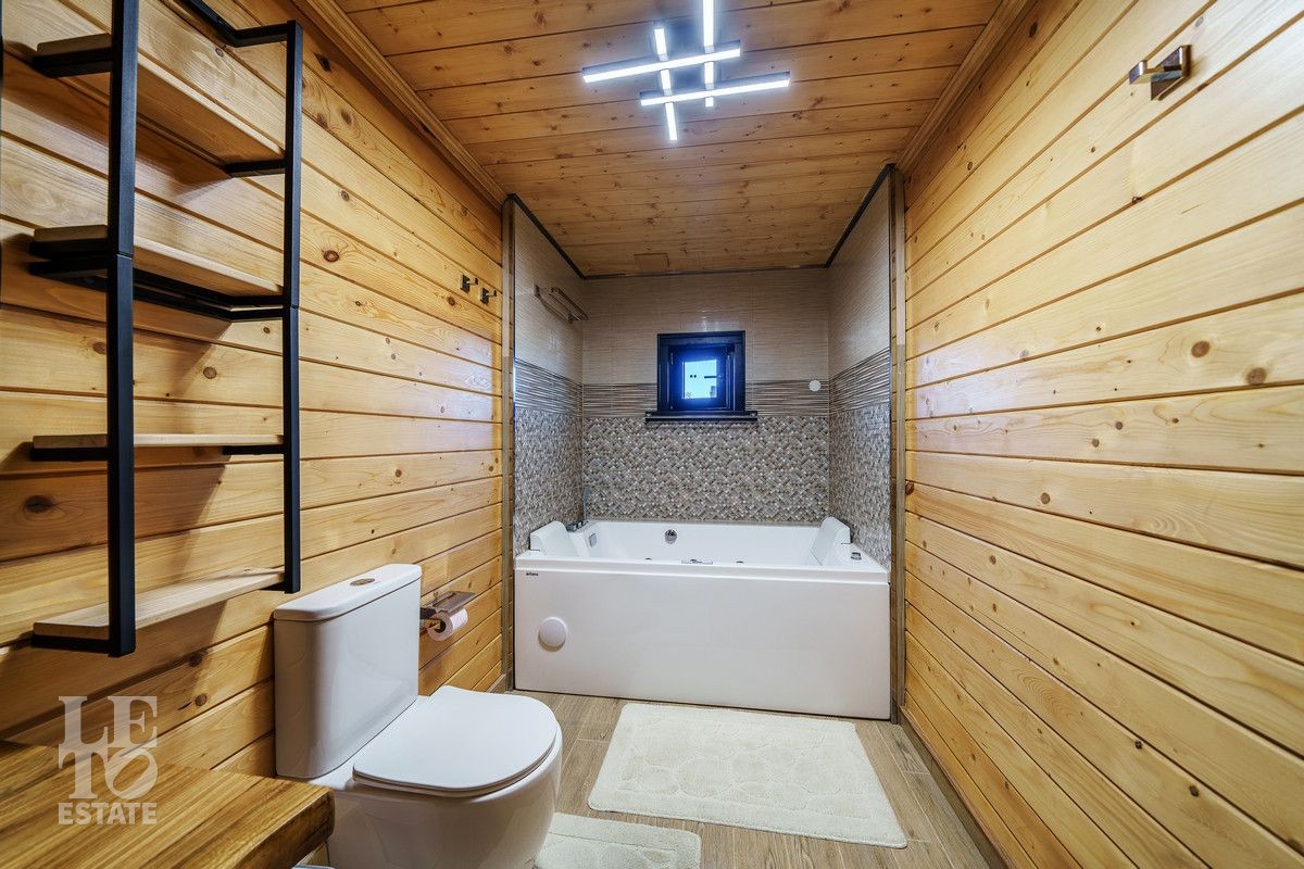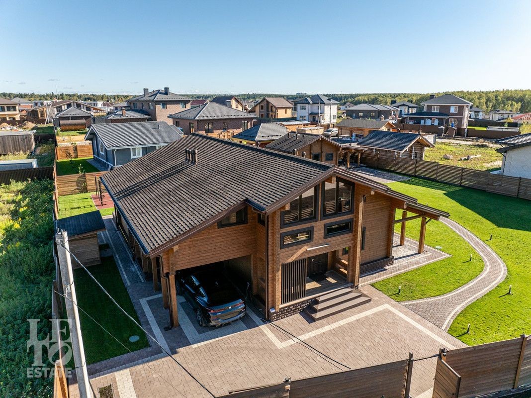 Благоустроенный участок, окружен деревянным забором и оформлен в соответствии с ландшафтным дизайном, установлены уличные фонари и вымощены дорожки. Дополнительно на территории расположены: уличный бассейн с подогревом, удобная мангальная зона примыкает к банному комплексу под навесом, спортивная площадка и качели – все располагает для отдыха и приятного времяпрепровождения.