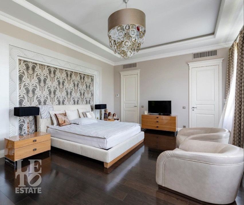 В просторных шести спальнях царит атмосфера безмятежности. Роскошь продолжается и в санузлах, обустроенных элитной сантехникой от признанных лидеров – Falper, Devon&Devon и Duravit, где каждая деталь – это эстетика и высочайшее качество.