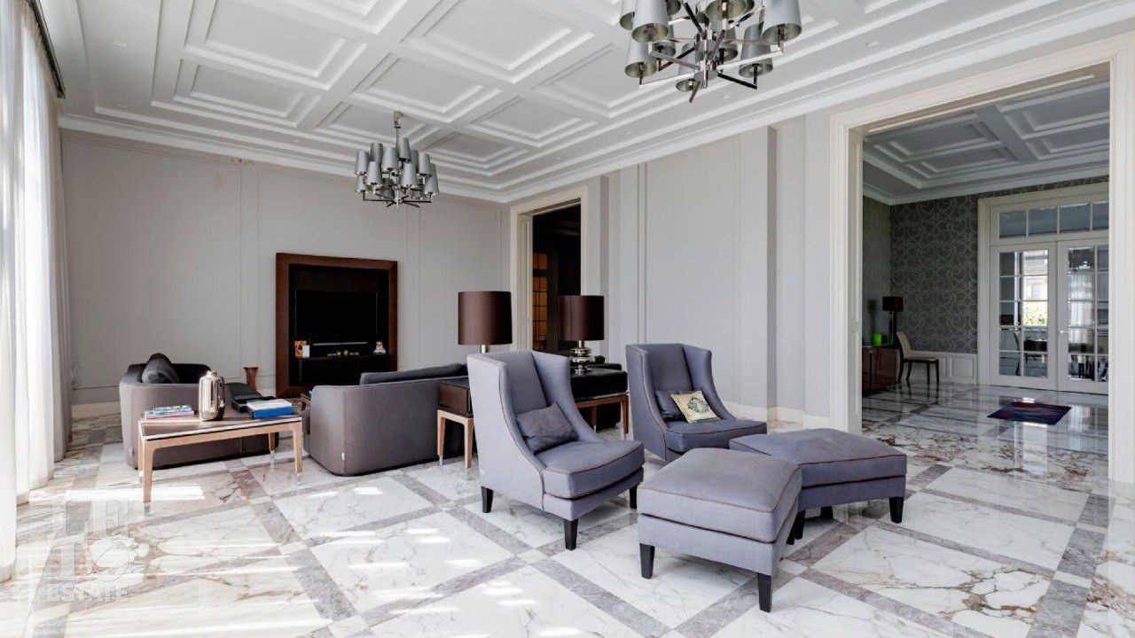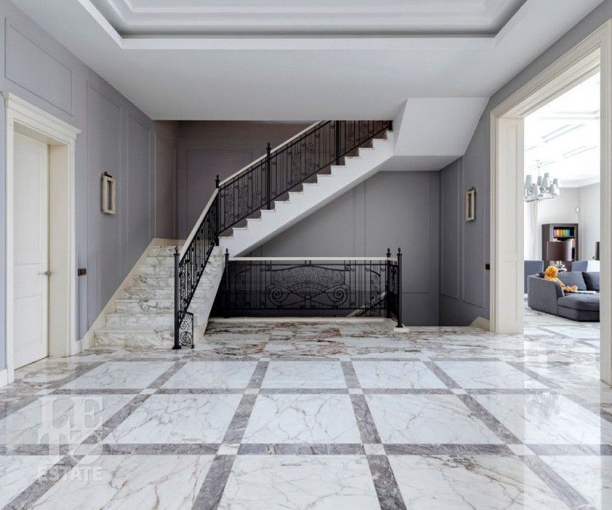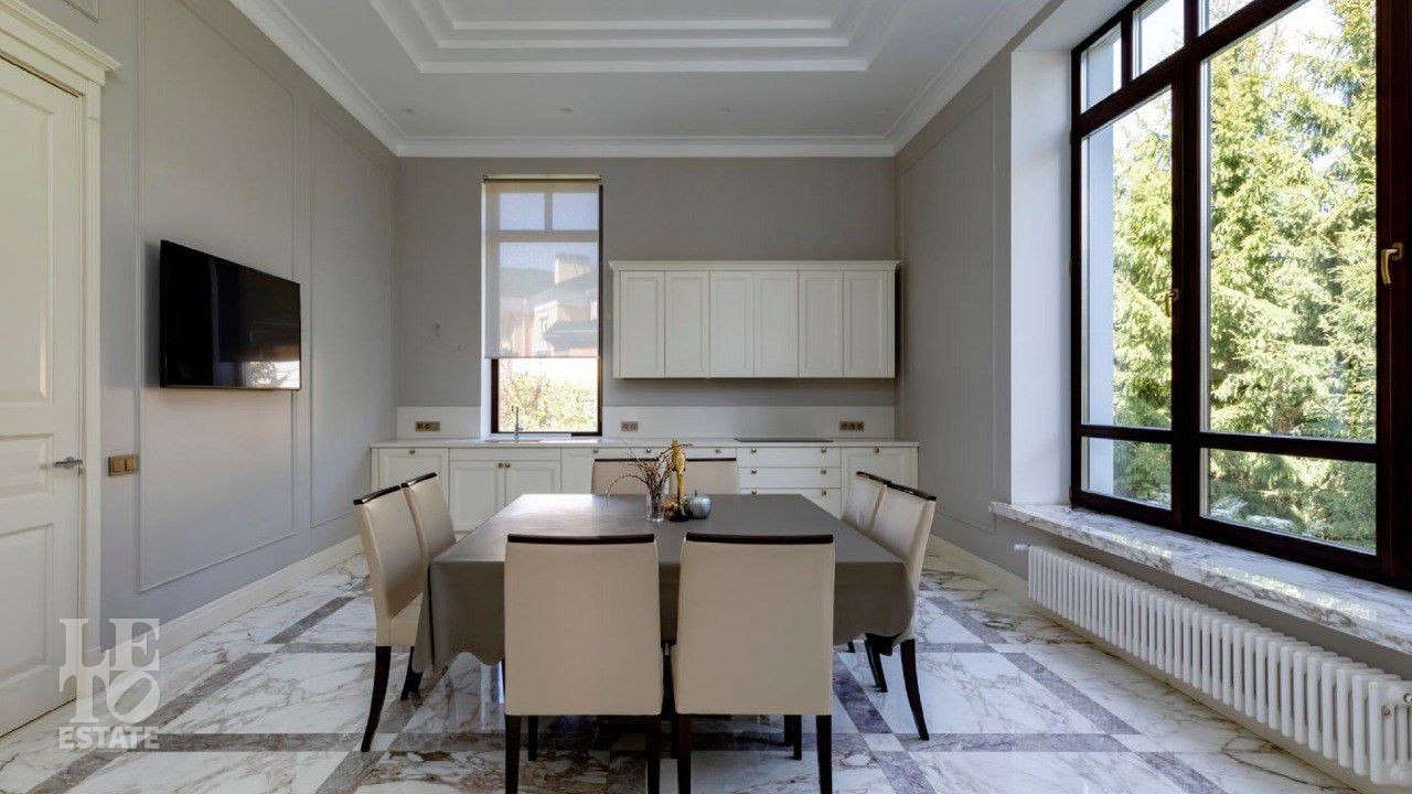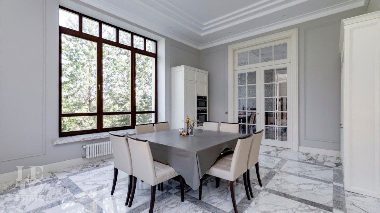 Уникальные интерьеры подчеркивают благородные материалы: теплые тона натурального дерева оконных рам по всему дому создают особую атмосферу, а соборная высота потолков – от 3,5 до внушительных 4,5 метров – наполняет пространство светом и воздухом. Центрами притяжения и уюта станут два дровяных камина: один из них – истинное произведение искусства, изысканно отделанный и украшенный полупрозрачным ониксом.