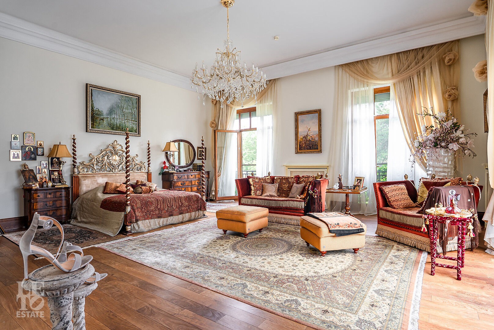 5 просторных мастер-спален: каждая спальня оформлена в уникальном стиле, сочетающем элементы классики и эклектики.