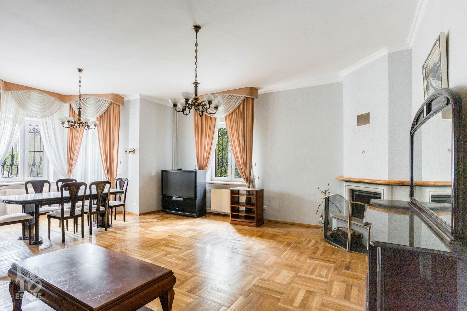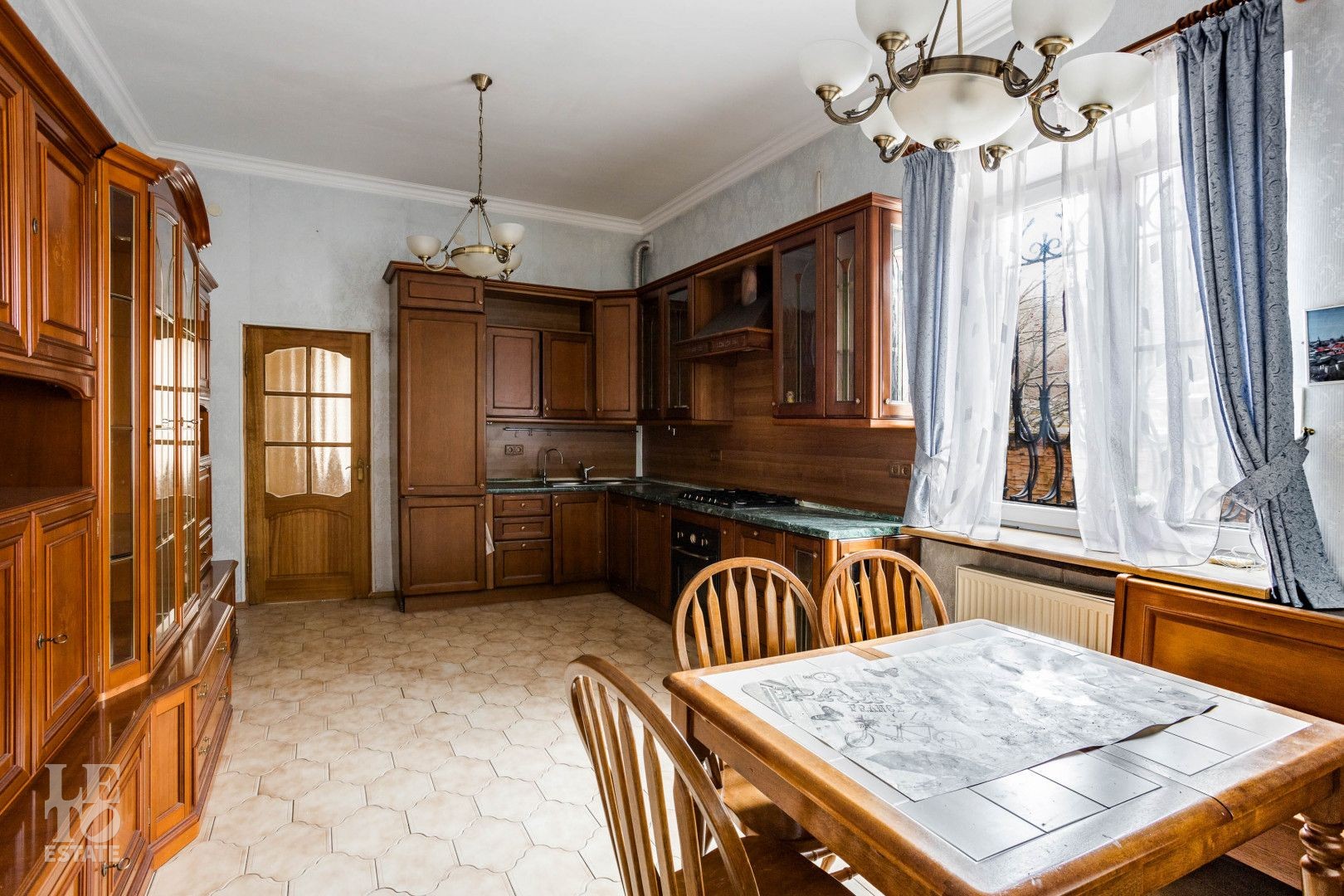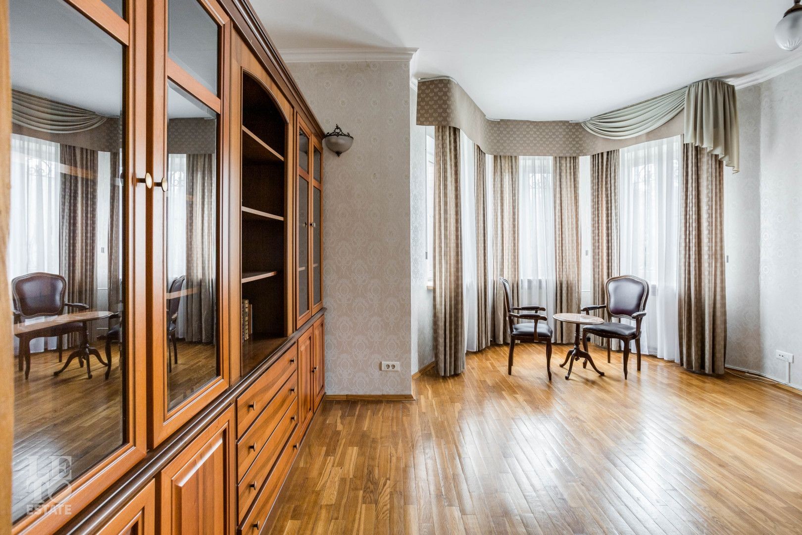 В доме выполнена качественная отделка, продажа с мебелью и техникой. На кухне кухонный гарнитур под единой столешницей со встроенной бытовой техникой. На полу наборный дубовый паркет. В гостиной много окон и света, благодаря наличию эркера. Есть дровяной камин, бильярдная с русским бильярдом, финская сауна. В котельной мощный напольный котел Viessman, новый бойлер на 300 литров, система водоподготовки.