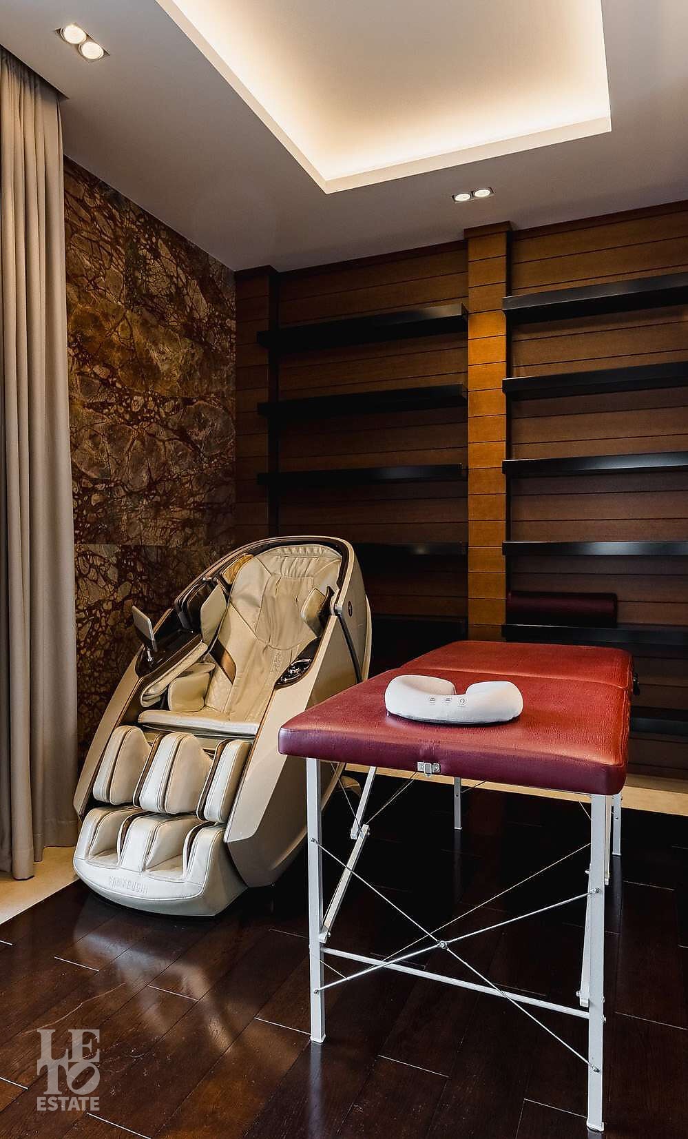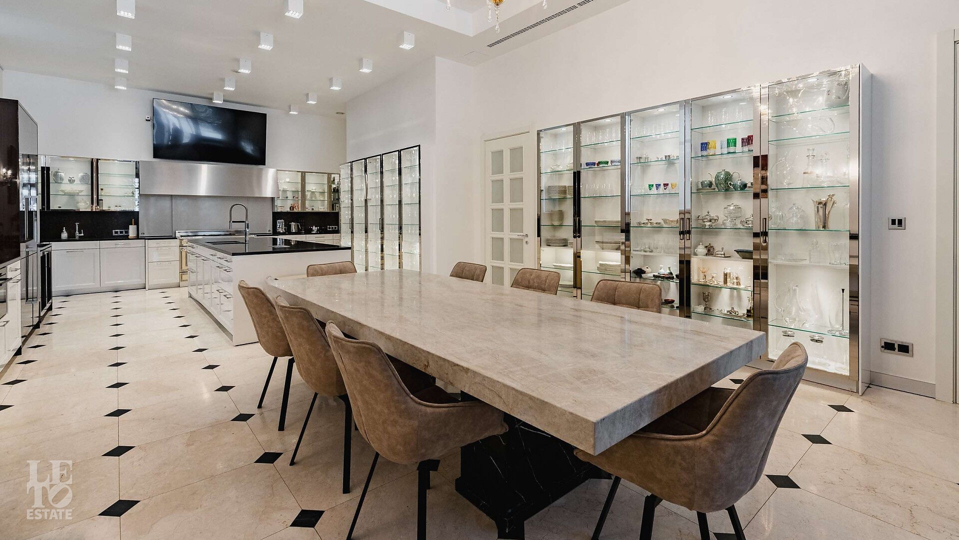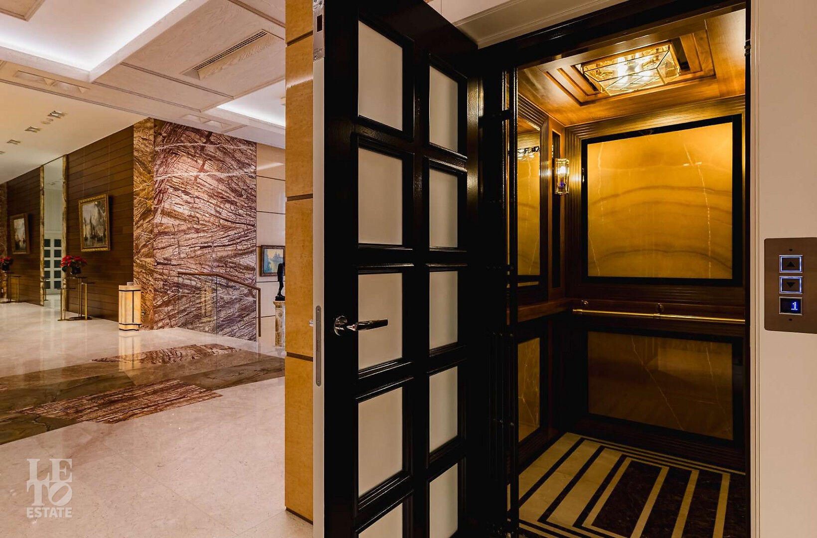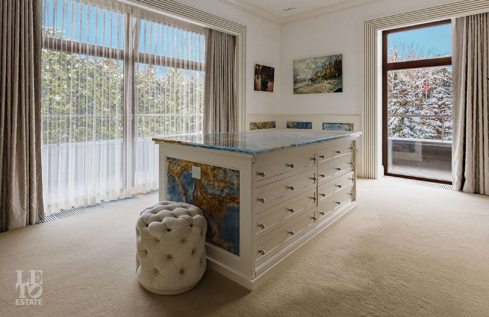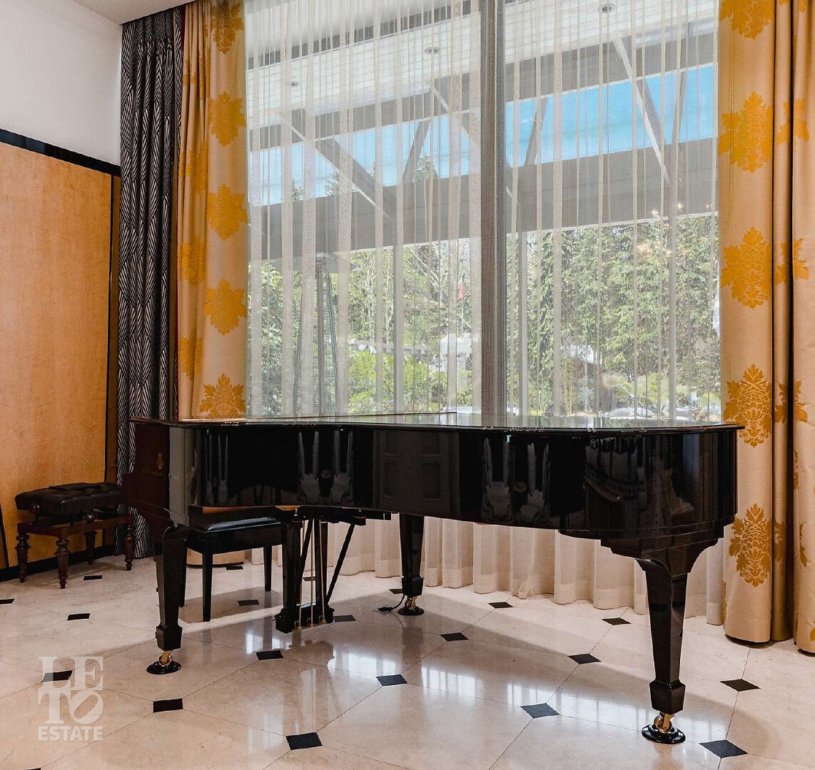 Второй этаж: мастер-спальня с 2 санузлами и 2 гардеробными, мастер-спальня с санузлом и гардеробной, бассейн 25×5 м, спортзал, массажная, сауна, хамам, мини-кухня, раздевалка, аквариумы с морской водой и настоящими кораллами, серверная.