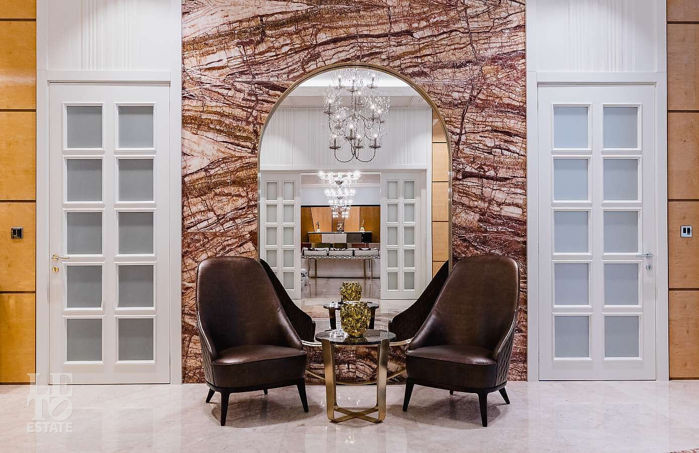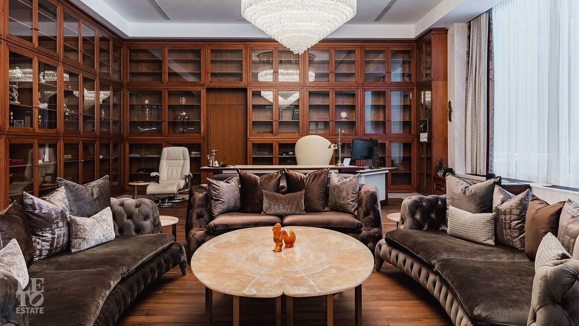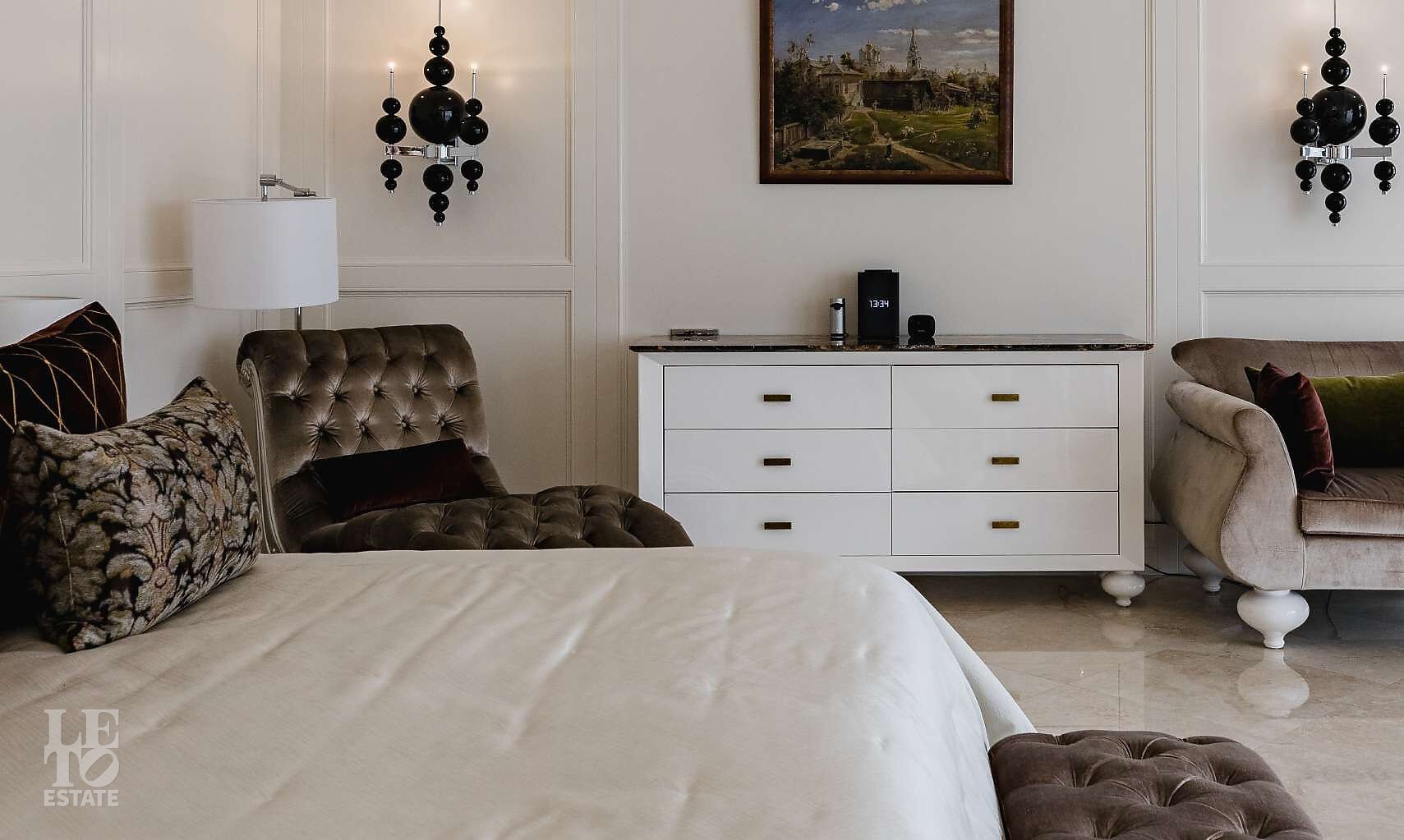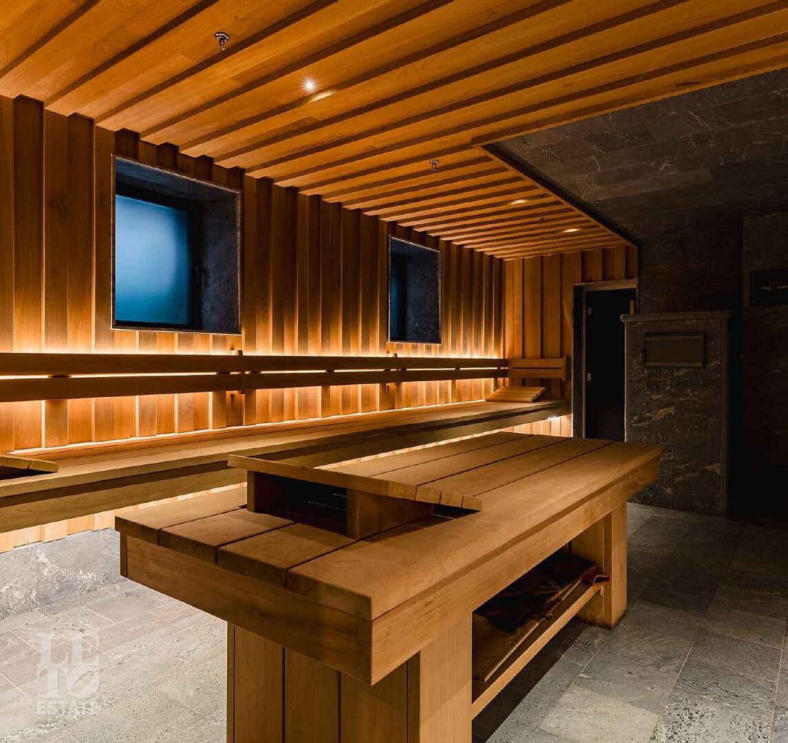 Второй этаж: мастер-спальня с 2 санузлами и 2 гардеробными, мастер-спальня с санузлом и гардеробной, бассейн 25×5 м, спортзал, массажная, сауна, хамам, мини-кухня, раздевалка, аквариумы с морской водой и настоящими кораллами, серверная.