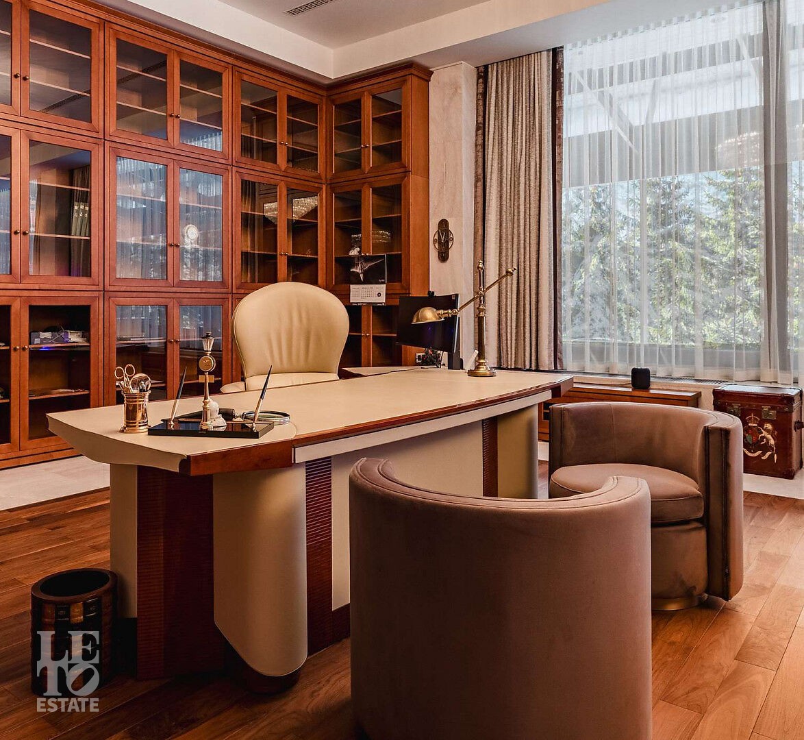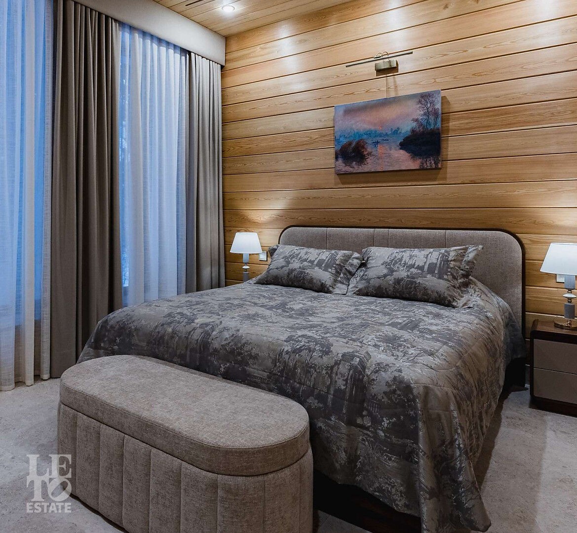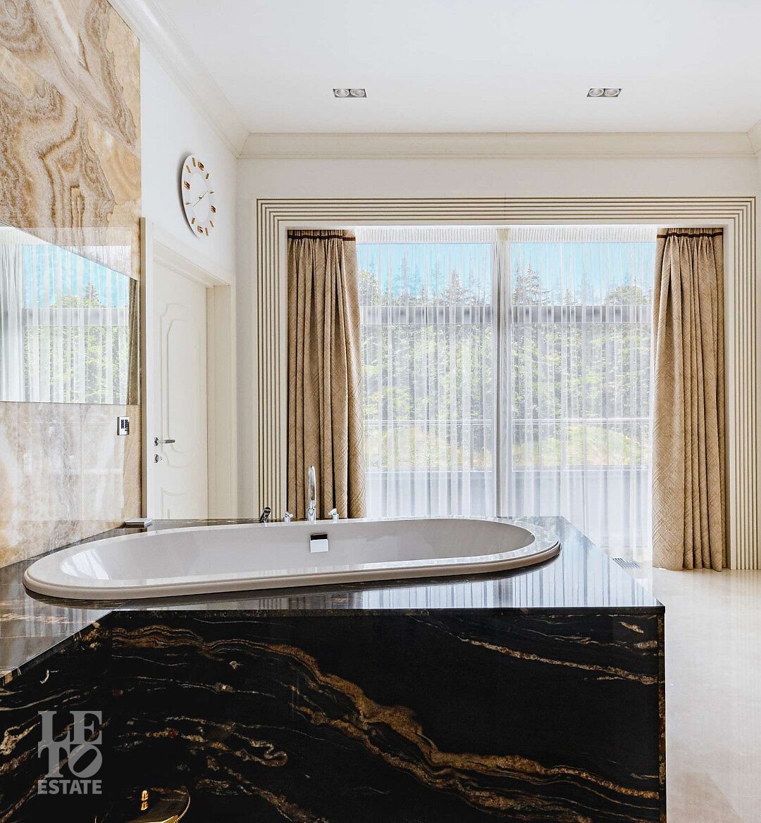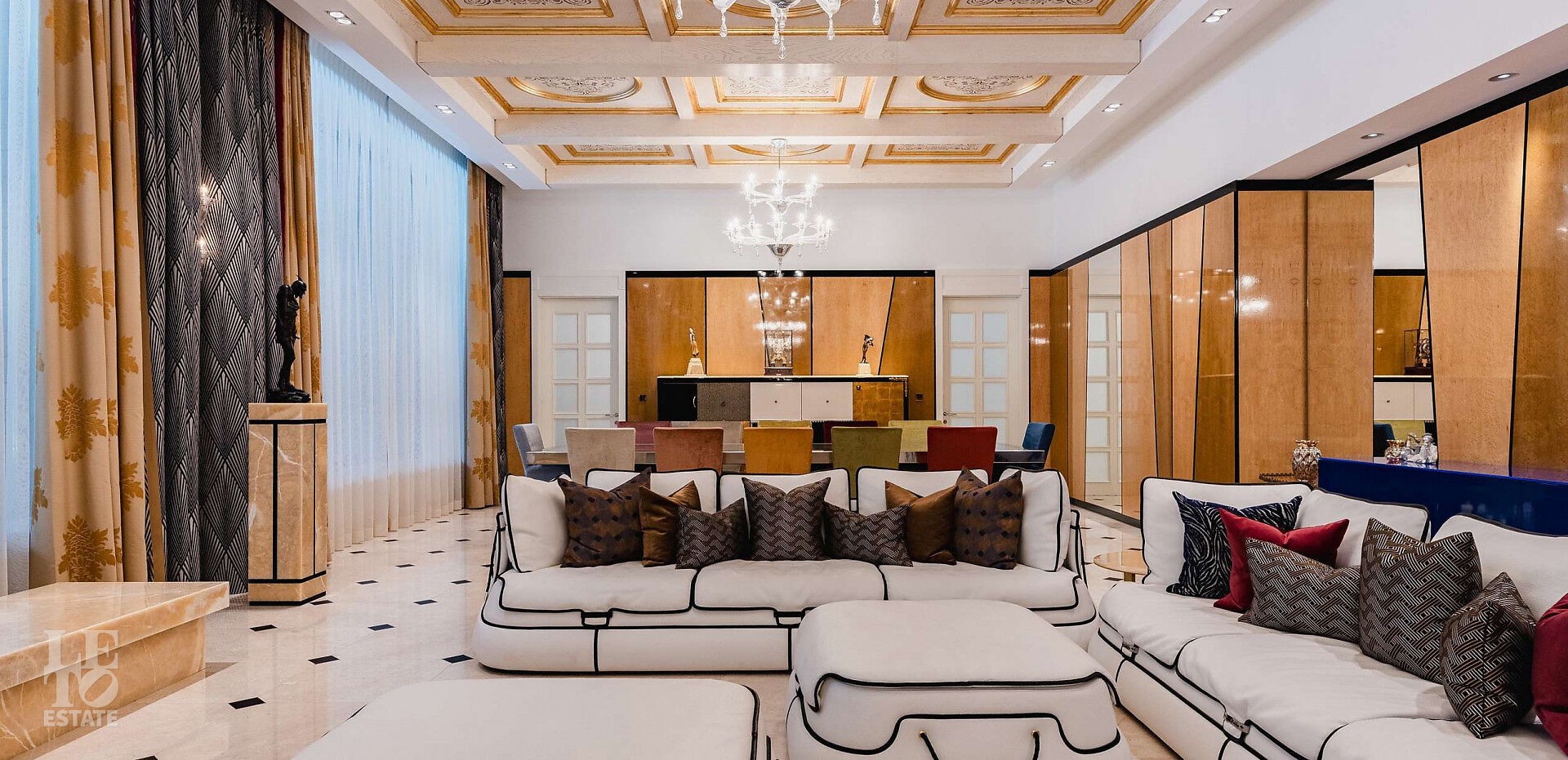 В основном доме имеется вся необходимая мебель и техника для комфортного проживания. Дизайн дома выполнен в стиле современной классики. Из особенностей, в доме имеется: боулинг, кинозал, тенисный корт, пруд с рыбками и винный погреб.