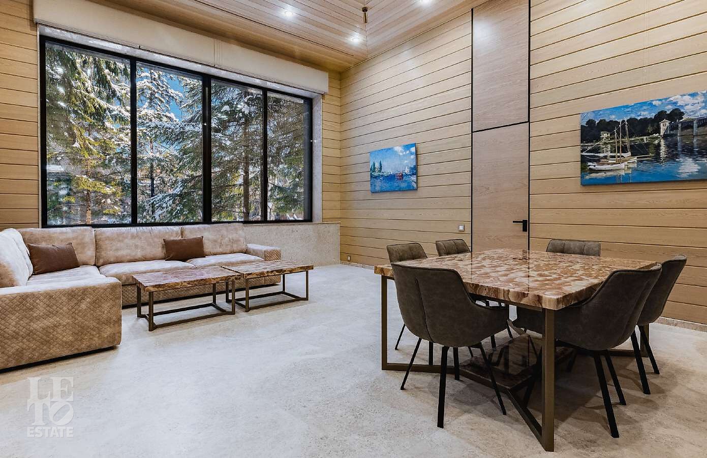 Первый этаж: кухня, гостиная, комната отдыха, парная с 2 печами Tulikivi, гостевая спальня, санузел.