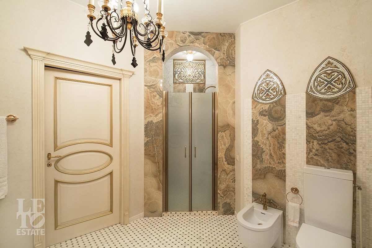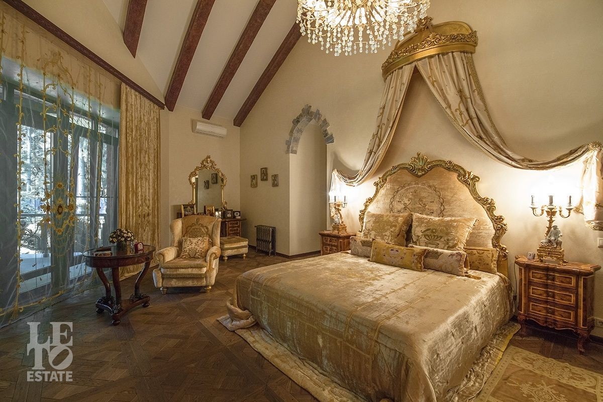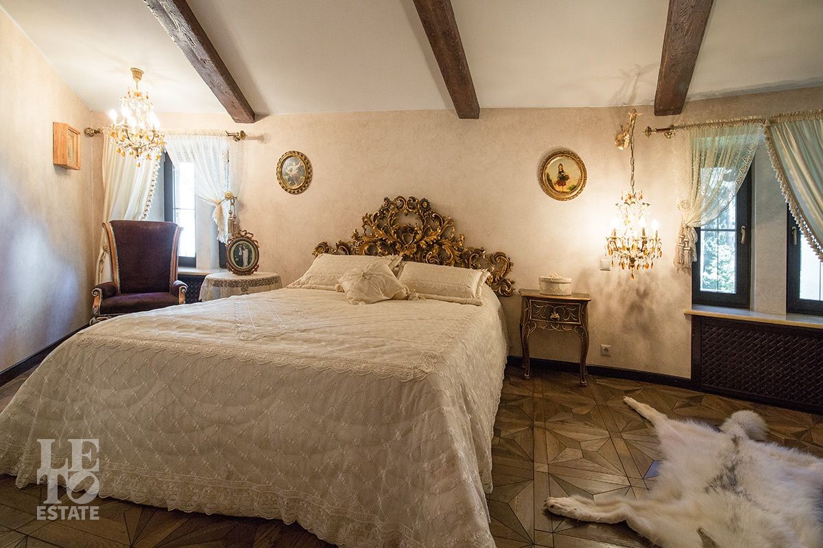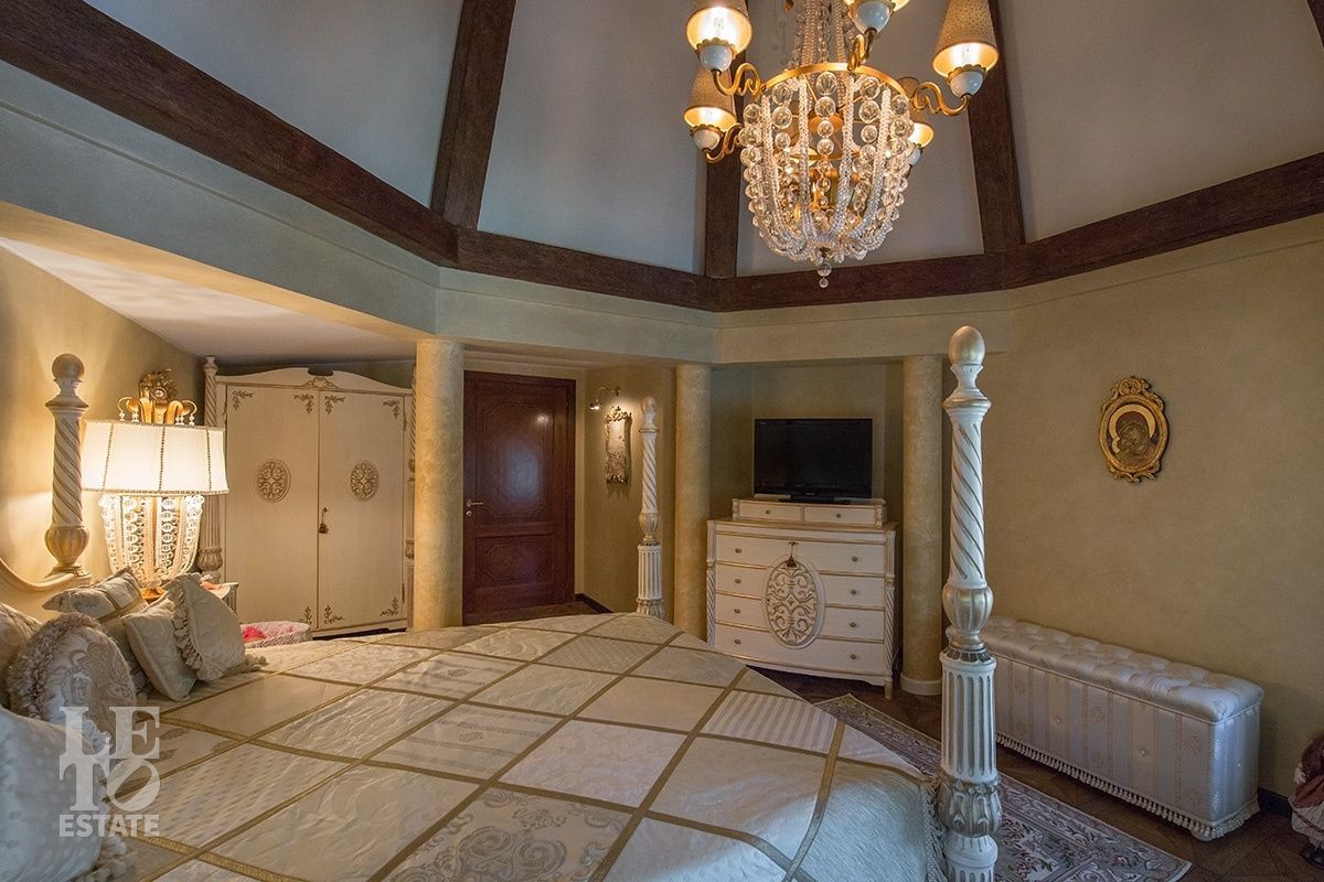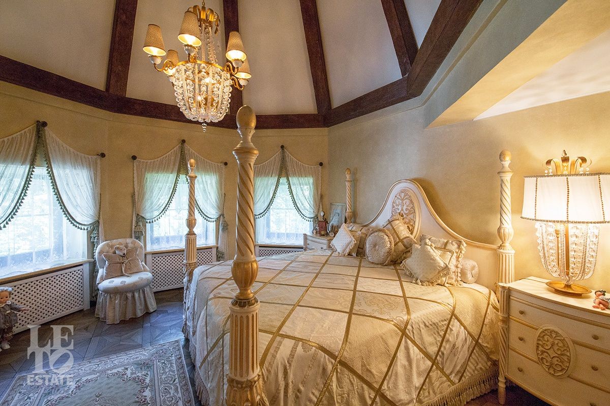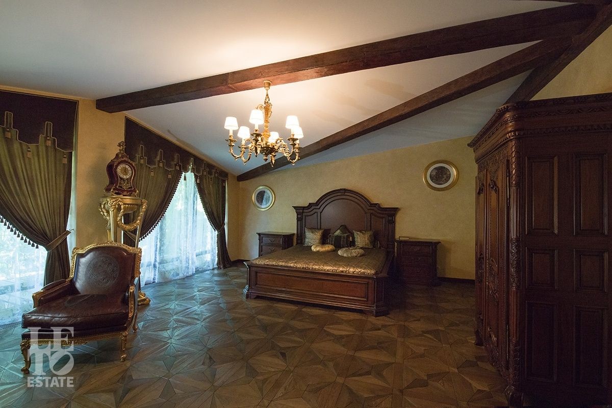 Поднимаясь на второй этаж по парадной дубовой лестнице, которая обрамлена изящными бронзовыми скульптурами-сатирами, Вы оказываетесь в просторном холле откуда выходят три спальни и два санузла. Идеальное пространство для большой семьи.