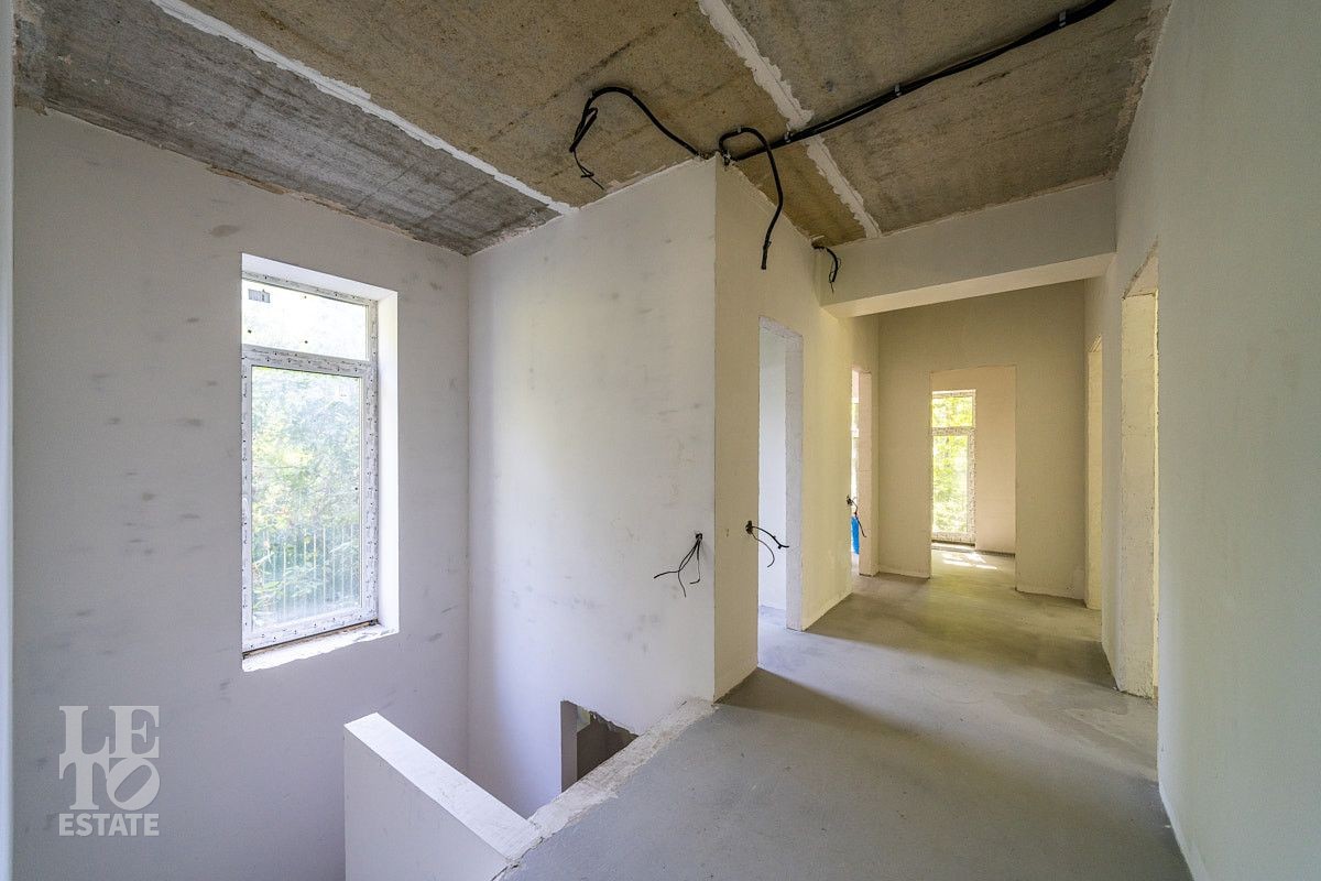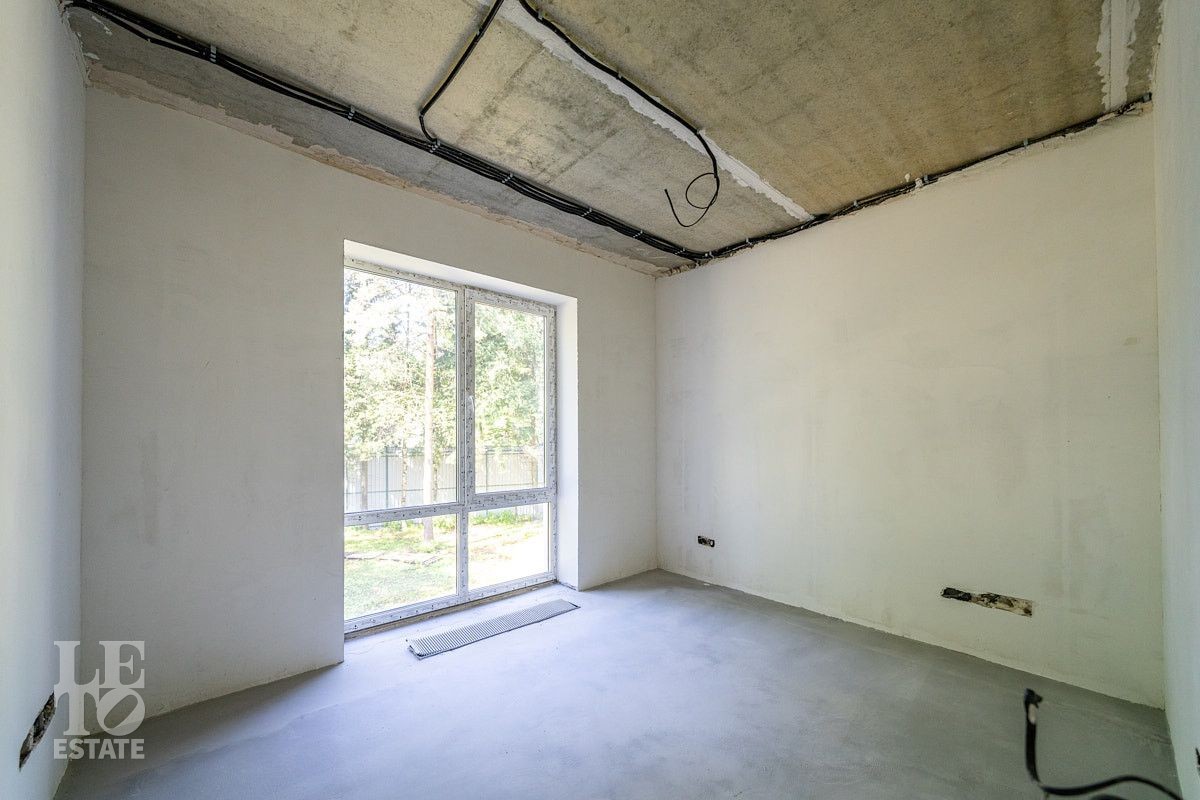 Современный дом в состоянии "WHITE BOX" (готов под чистовую отделку) площадью 150 кв.м на лесном участке 10.5 соток. Дом построен на совесть: монолитная плита фундамента, газоблочные стены, железобетонные перекрытия. Для Вашего комфорта в нем уже смонтированы теплые полы, дополненные радиаторами, и установлен газовый котел Bosch. Панорамные окна с тройным стеклопакетом и мультифункциональными стеклами обеспечивают отличную тепло- и шумоизоляцию. Входная группа отделана натуральным камнем, по периметру дома – плиточная отмостка. Все базовые инженерные системы полностью разведены: электричество (3 фазы, 15 кВт), водоснабжение от собственной скважины с кессоном, водоотведение, магистральный газ, оптоволоконный интернет, цифровое ТВ, видеонаблюдение и автоматические ворота. Участок лесной, открывает широкие возможности для ландшафтного дизайна и зонирования.