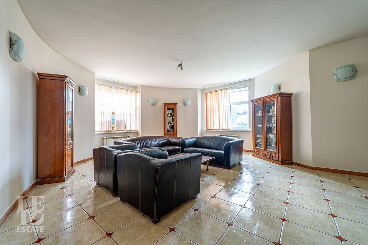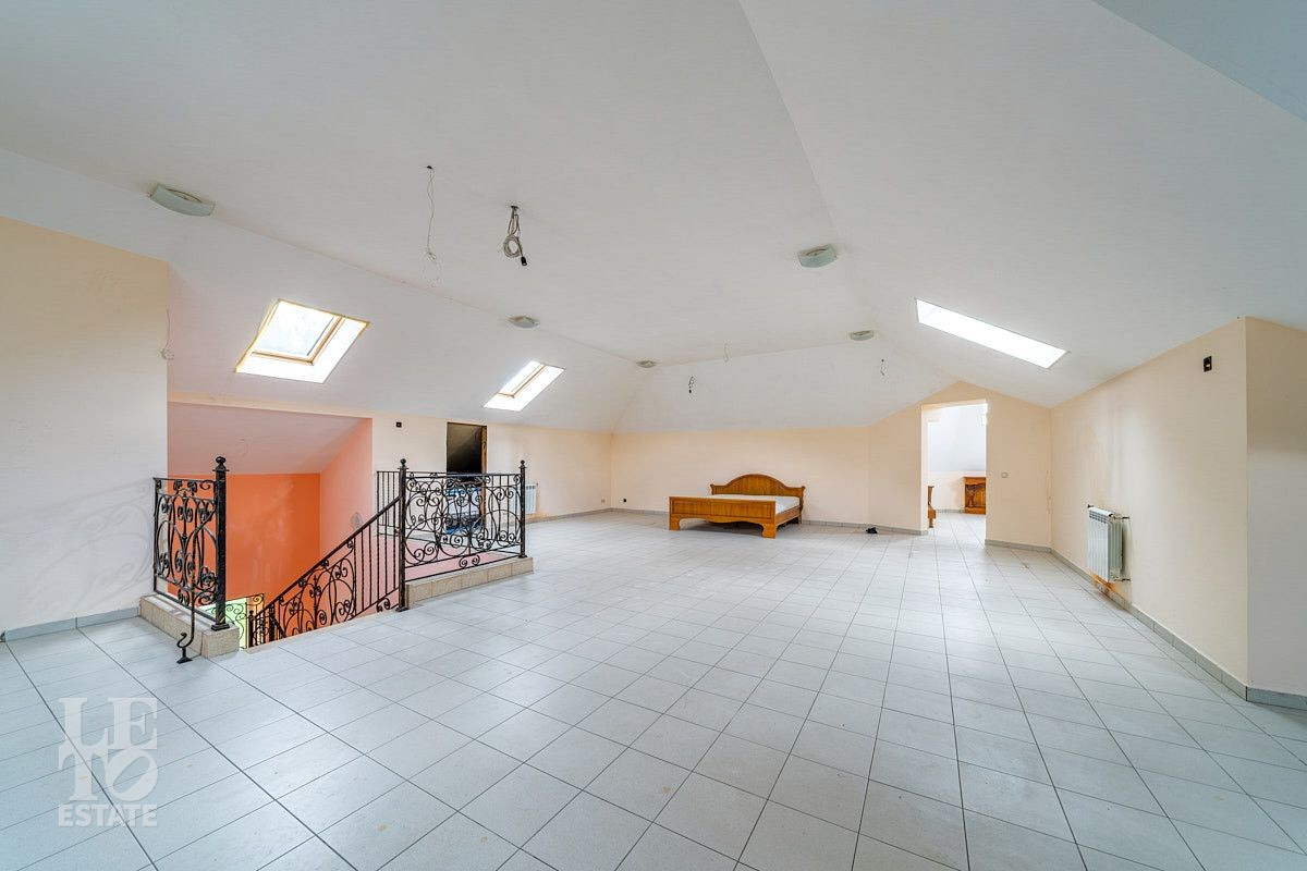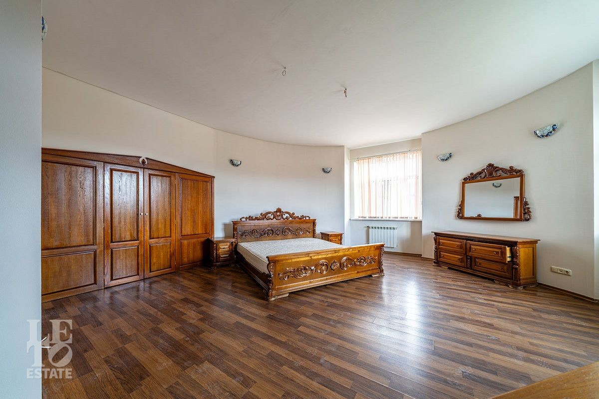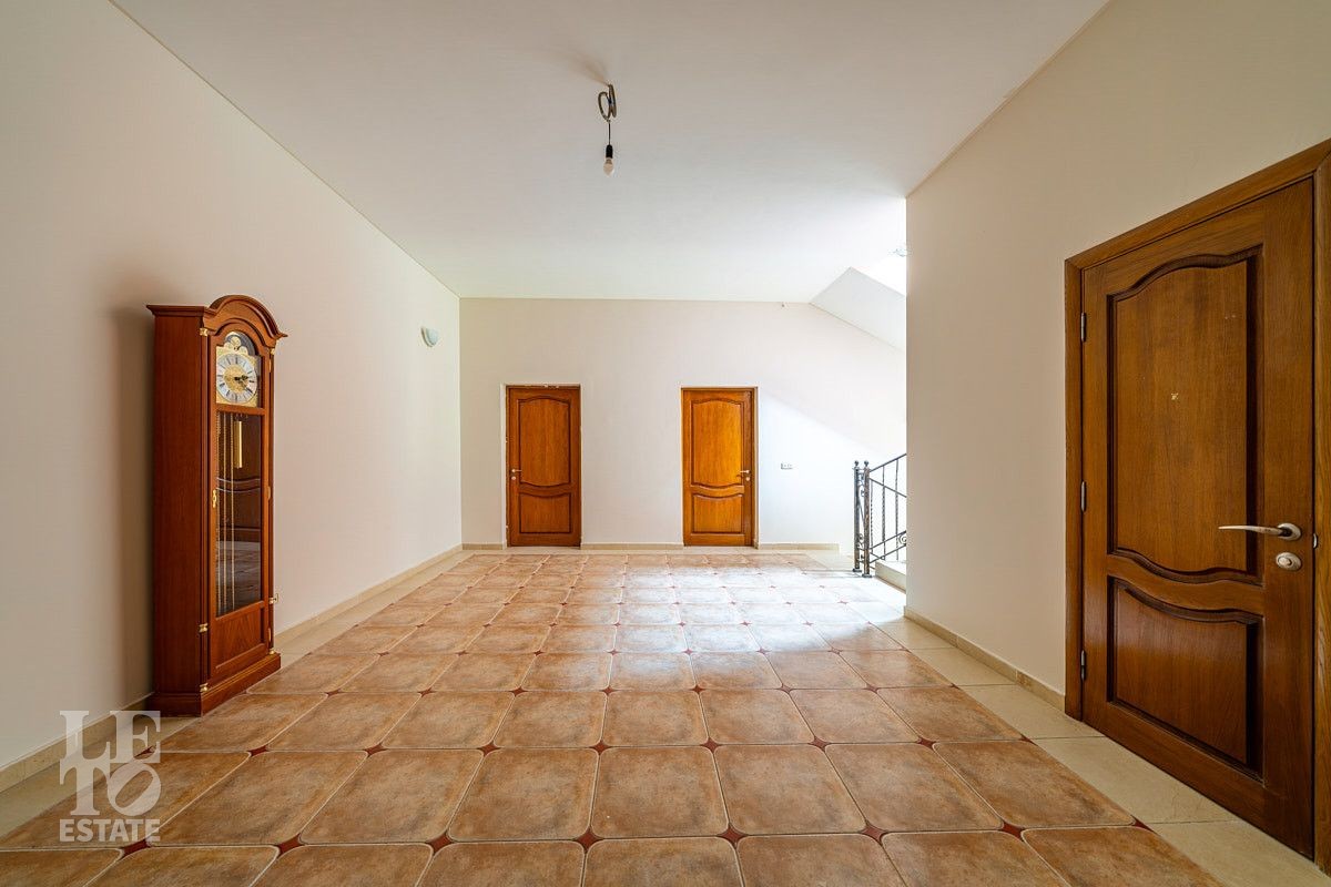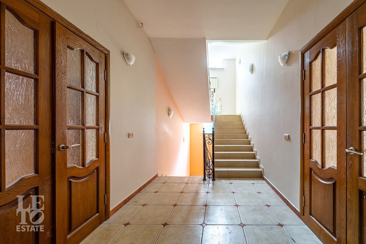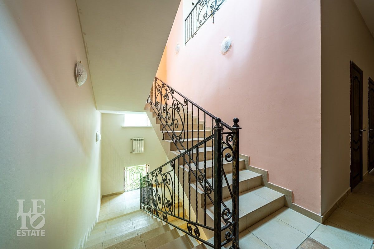 Представляем вашему вниманию просторный дом площадью 614 кв.м, расположенный на приватном прилесном участке 17 соток. Дом построен в четыре уровня и грамотно зонирован: первый этаж - общественная зона с гостевой спальней, второй этаж - хозяйский блок и спальни для детей, третий этаж - игровая и спальня для гостей (няни). В цокольном этаже весьма удачно расположилась котельная и распланировано большое количество помещений для хранения.