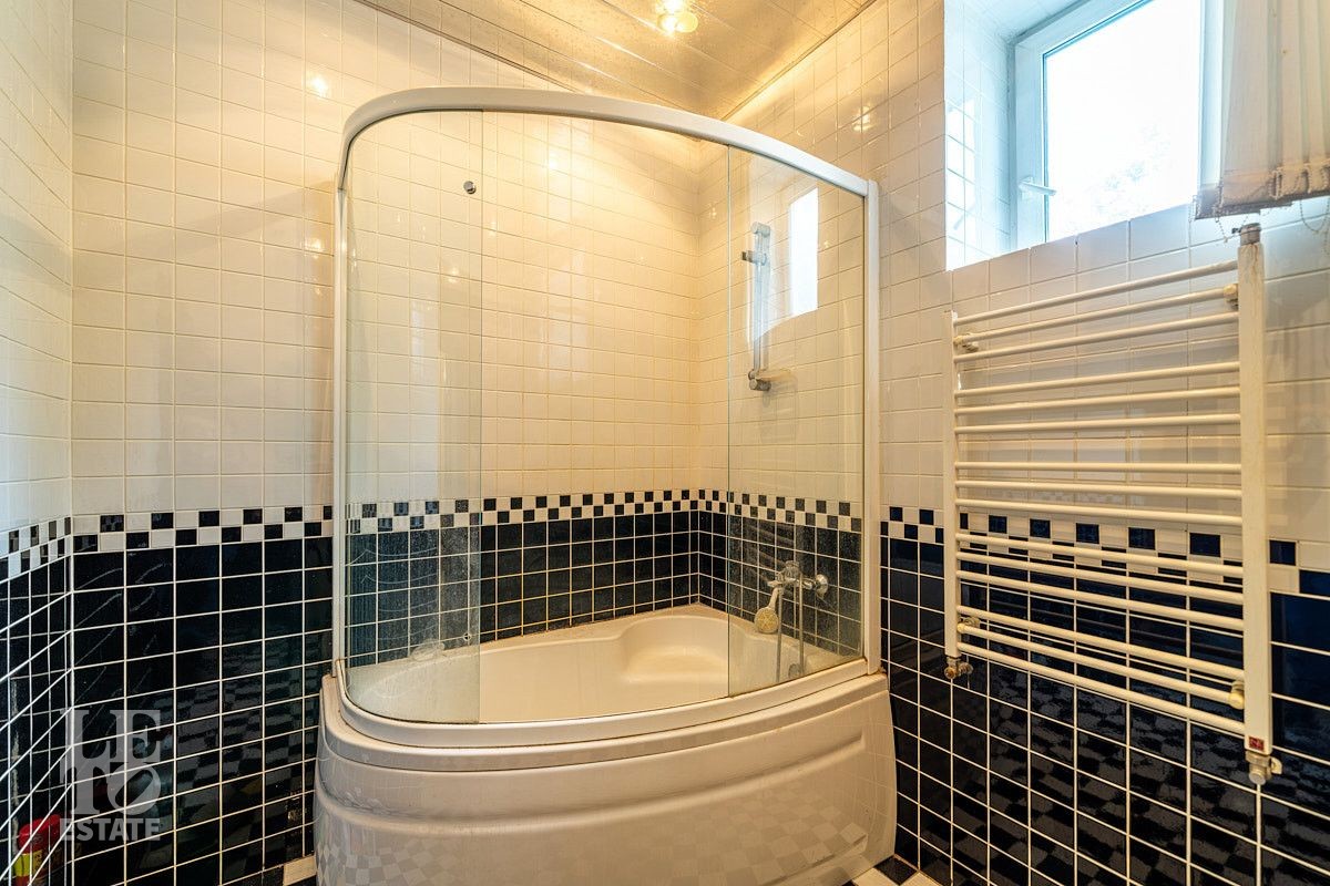 В дом заведены центральные вода и канализация. Электричество - 15 кВт. Магистральный газ заведен в дом.
