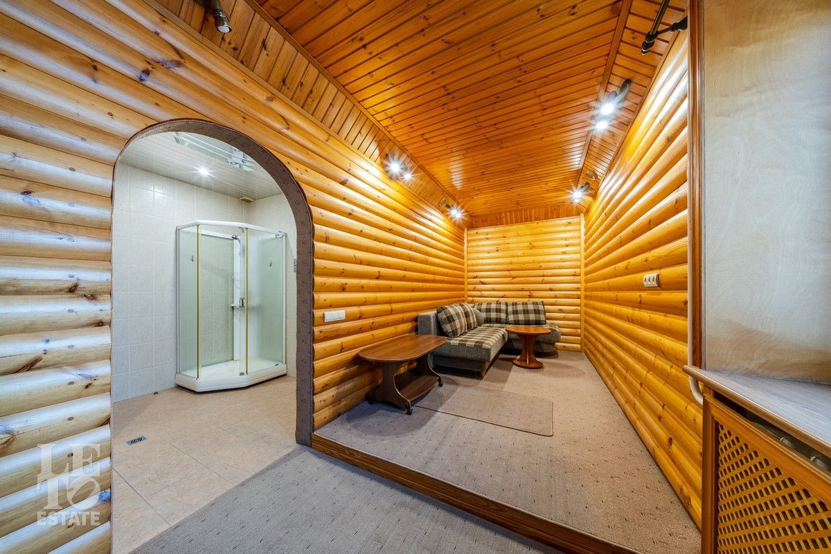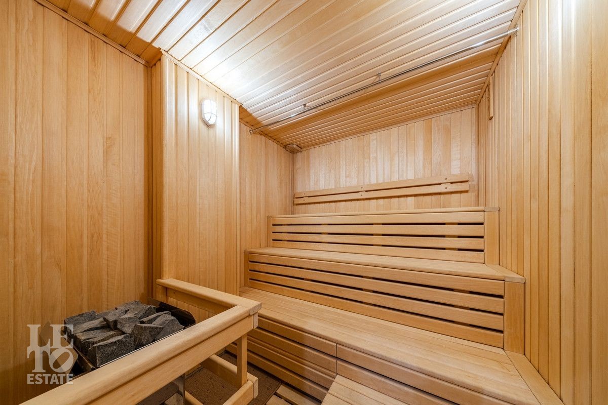 Первый этаж: прихожая, гостевой санузел, кухня-столовая, гостиная с камином, крытая терраса, сауна с комнатой отдыха, душевой и санузлом;