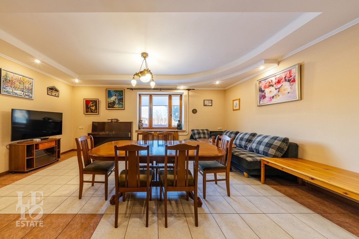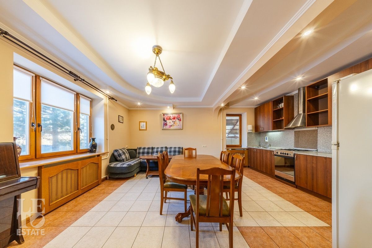 Дом построен в 2000 году в четыре уровня (в том числе цоколь и полноценная мансарда). Стены кирпичные, фундамент - монолитная плита. Отделка в доме выполнена в классическом стиле с использованием высококачественных дорогостоящих материалов. В комнатах уложен паркет, на полу первого этажа уложена итальянская плитка. Доп полностью меблирован и готов к проживанию.