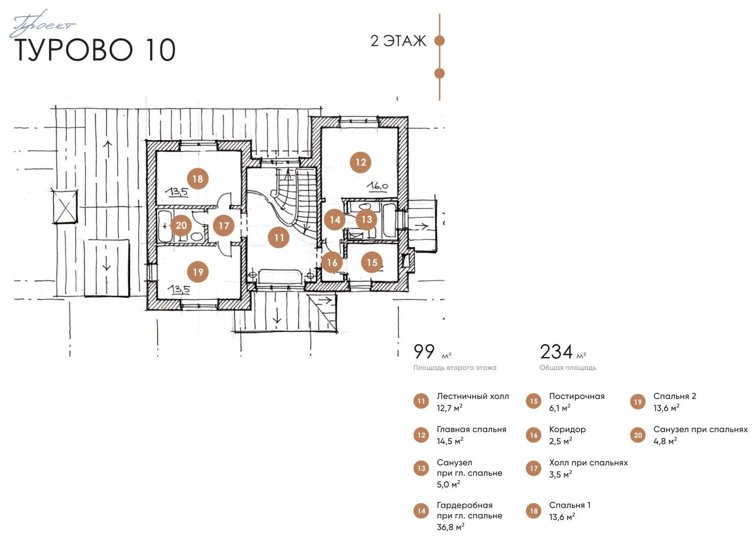 Второй этаж: мастер-спальня с гардеробной с/у, 2 спальни, с/у, постирочная.