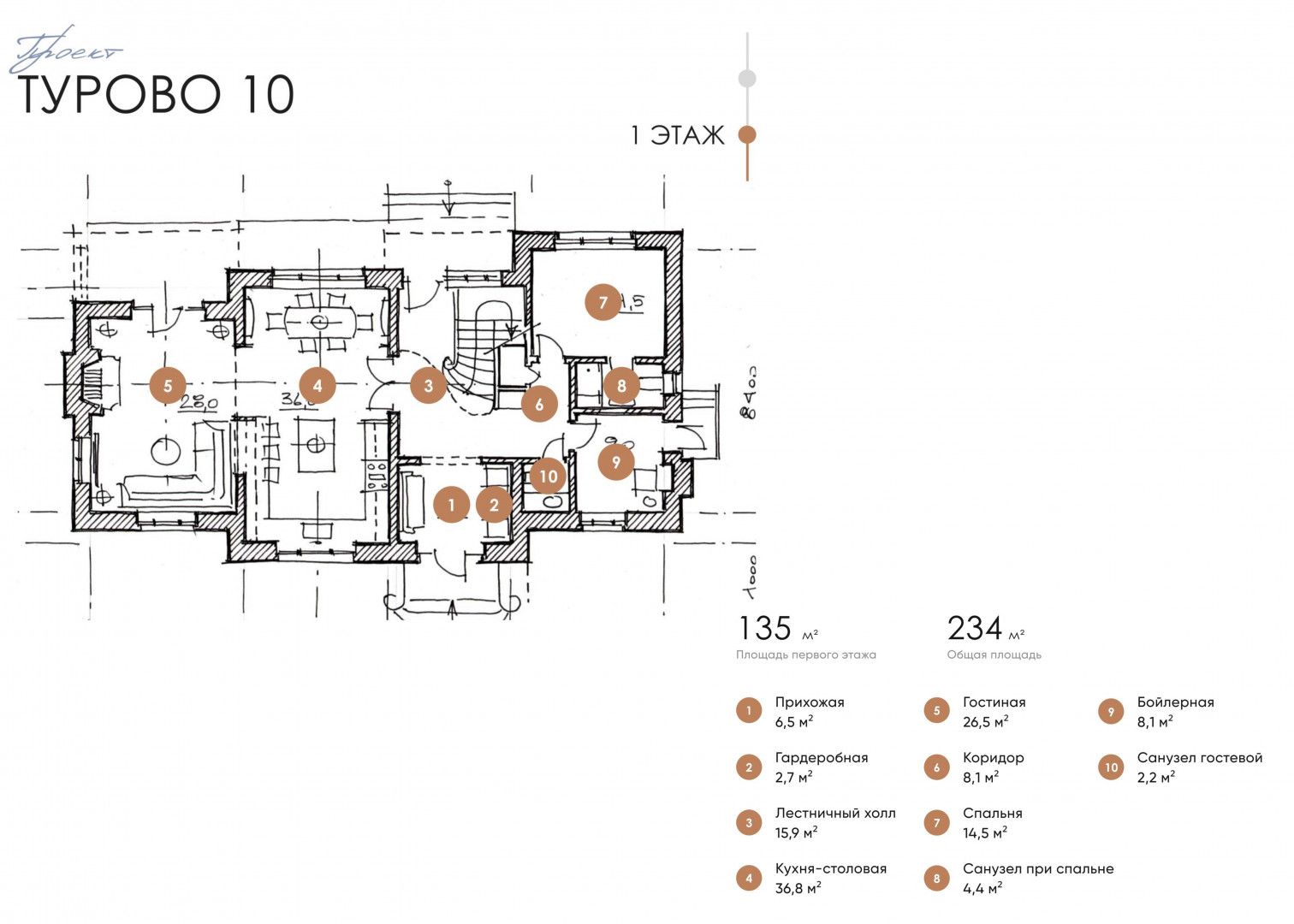 На территории 8 Га расположено 30 домовладений, площадью от 216 до 264 кв.м, с придомовыми участками от 9 до 13 соток. Архитектурный облик поселка представлен единым вневременным классическим стилем, разработанным архитектором с мировым именем - Тимуром Каримовым. Одним из важных принципов работы этого выдающегося архитектора - ни один дом, спроектированный им, не строится повторно, именно поэтому каждый дом в поселке «Турово парк» неповторим и уникален. Оказываясь в поселке, Вы словно попадаете в европейский пригород с его классической архитектурой, уютными улочками и обилием зелени.