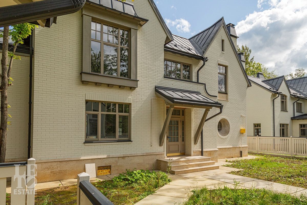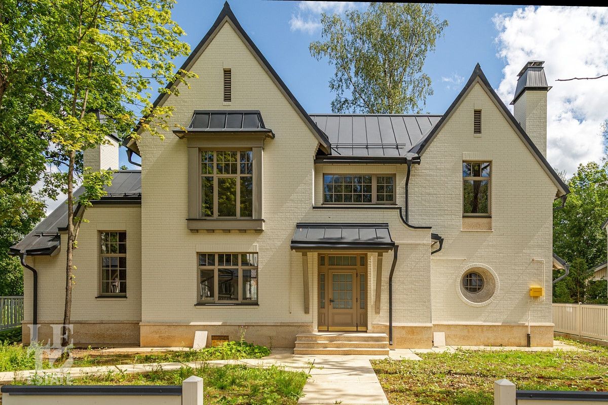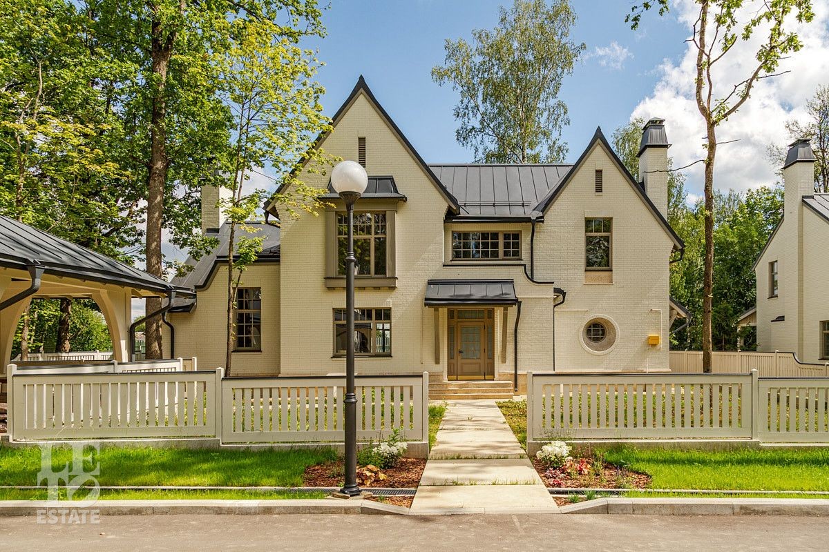 Дом сочетает элегантность традиционного стиля и высокое качество строительных материалов. Стены возведены из кирпича, цоколь, терраса, крыльцо, дорожки выполнены из травертина, крыша- фальцевая кровля, все двери и стеклопакеты в доме- из натурального дерева.