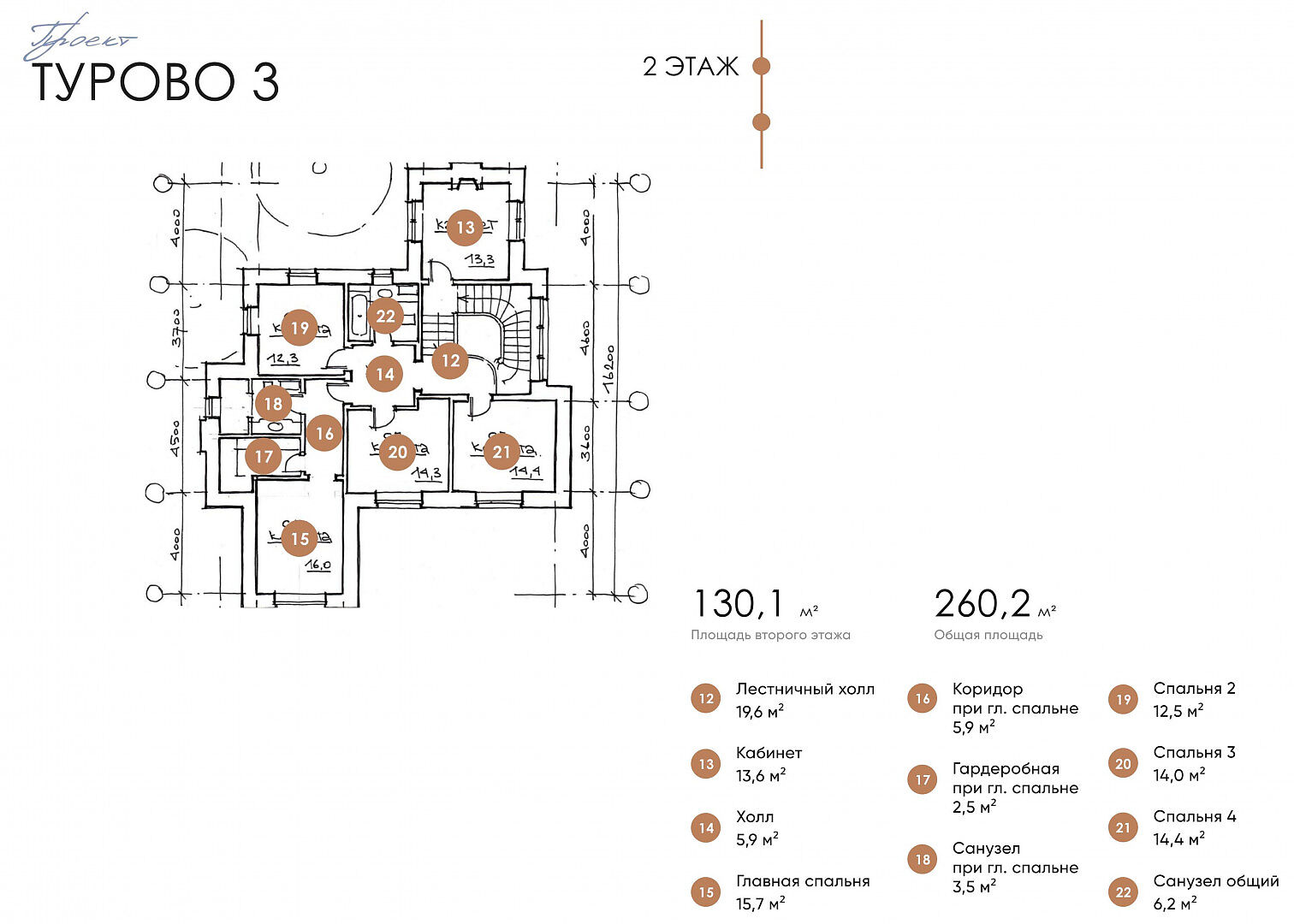 Второй этаж: мастер-спальня с гардеробной и с/у, 3 спальни, с/у, кабинет.