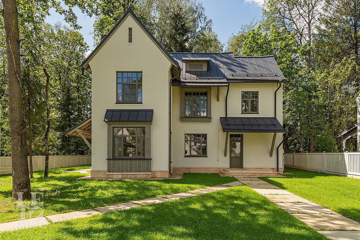 Представляем вашему вниманию стильный загородный дом с 5 спальнями, площадью 251 м2, построенный по авторскому проекту известного архитектора на лесном участке размером 10 соток, расположенном в камерном коттеджном поселке Турово парк, в 25 км от Москвы по Волоколамскому шоссе.