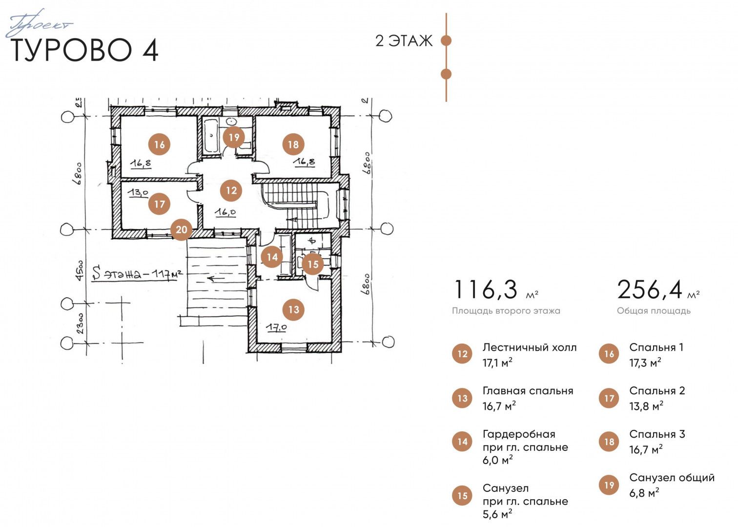 Второй этаж: мастер-спальня с гардеробной и с/у, 3 спальни, с/у.