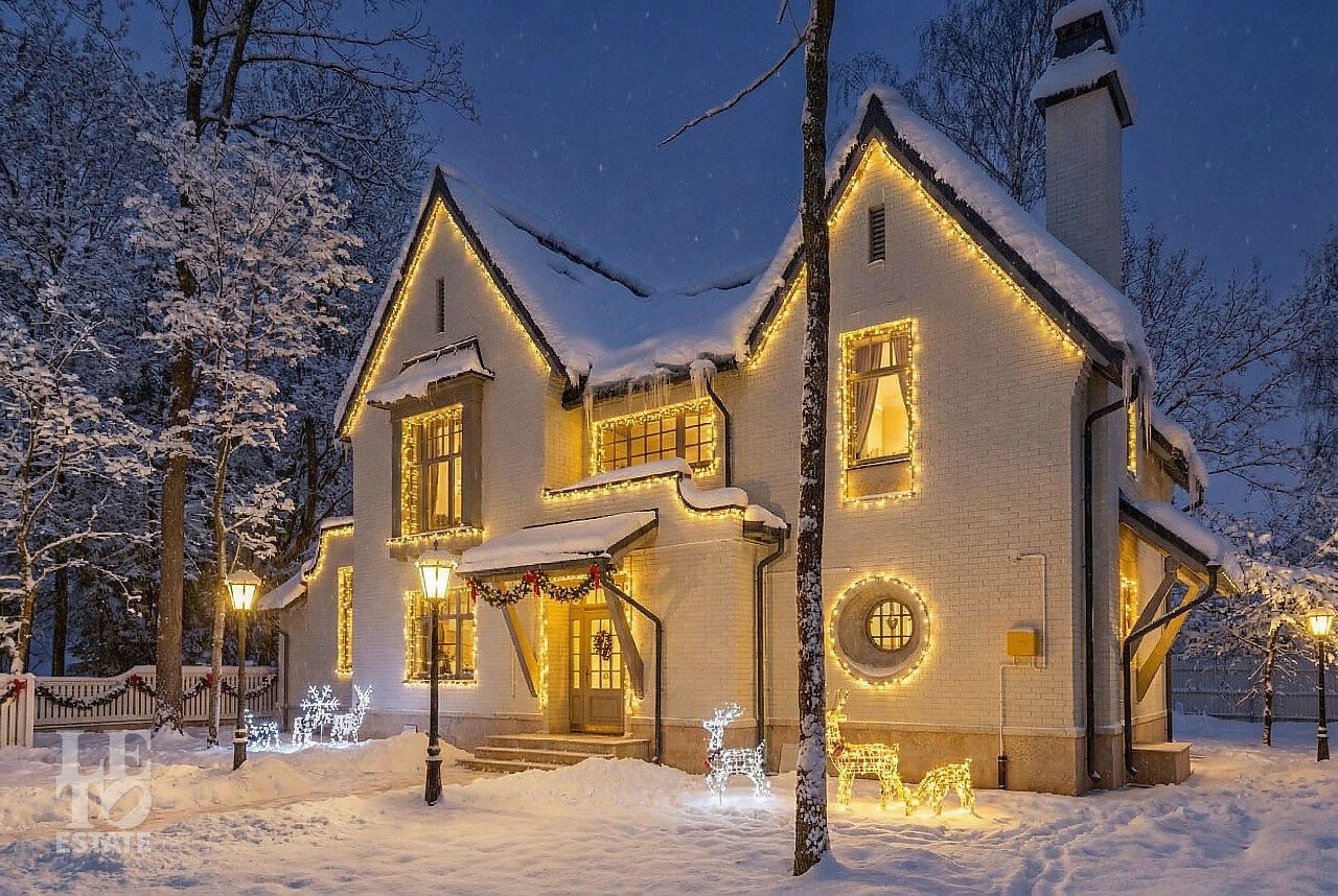 Дом сочетает элегантность традиционного стиля и высокое качество строительных материалов. Стены возведены из кирпича, цоколь, терраса, крыльцо, дорожки выполнены из травертина, крыша- фальцевая кровля, все двери и стеклопакеты в доме- из натурального дерева.