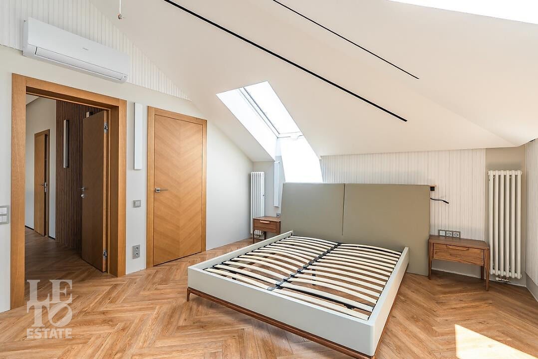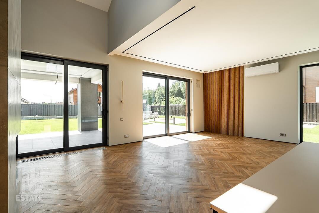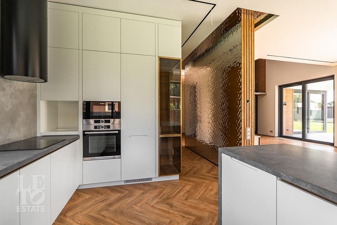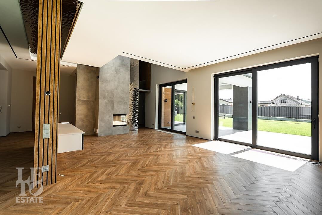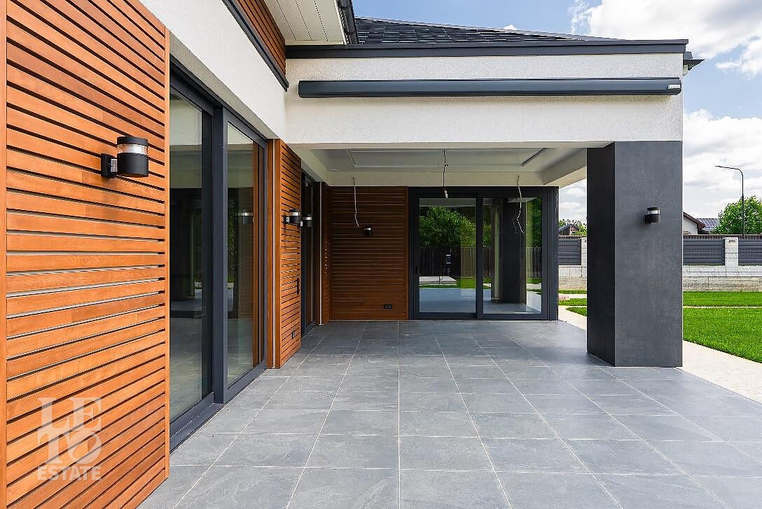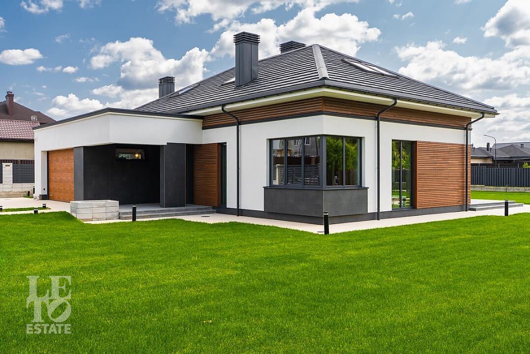 Новый дом возведен из современных и качественных материалов, что гарантирует его долговечность и комфорт. Просторные комнаты с рациональным распределением пространства обеспечивают комфорт и удобство семейной жизни. Эстетически привлекательная и оригинальная конструкция лестницы становится центральным элементом интерьера. Панорамные трехкамерные стеклопакеты с алюминиевым профилем обеспечивают отличную тепло- и звукоизоляцию, а также наполняют дом светом.