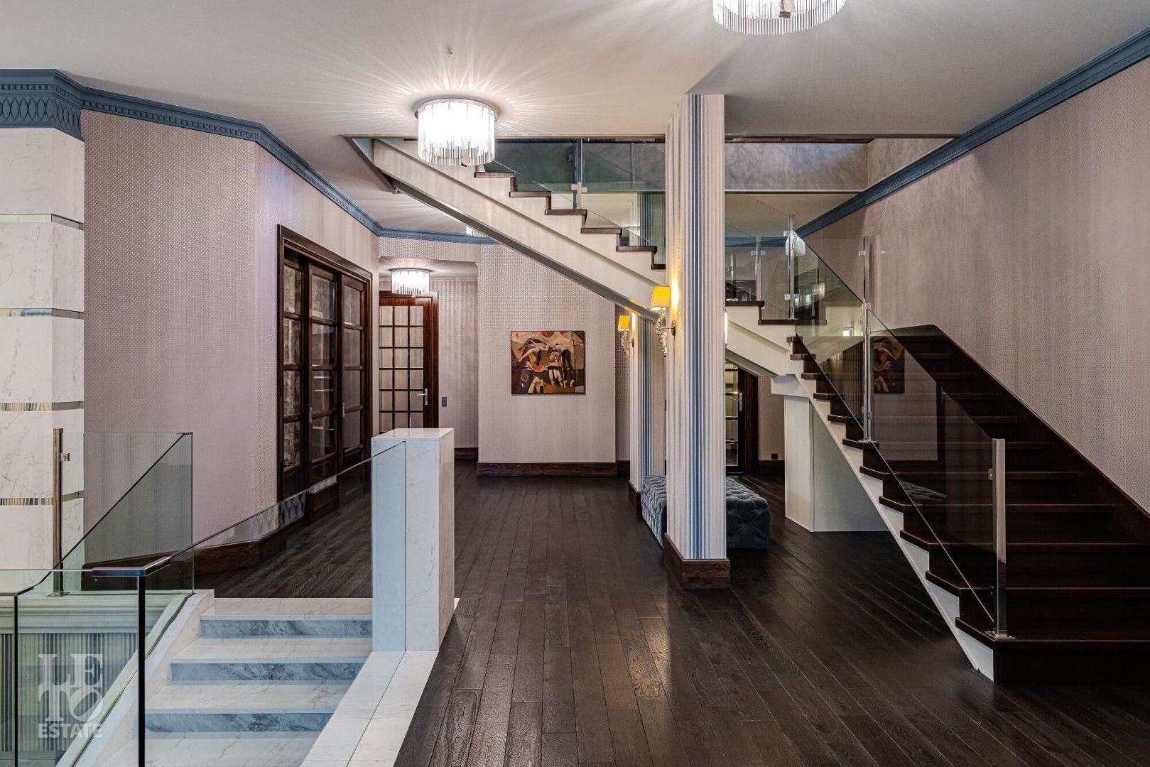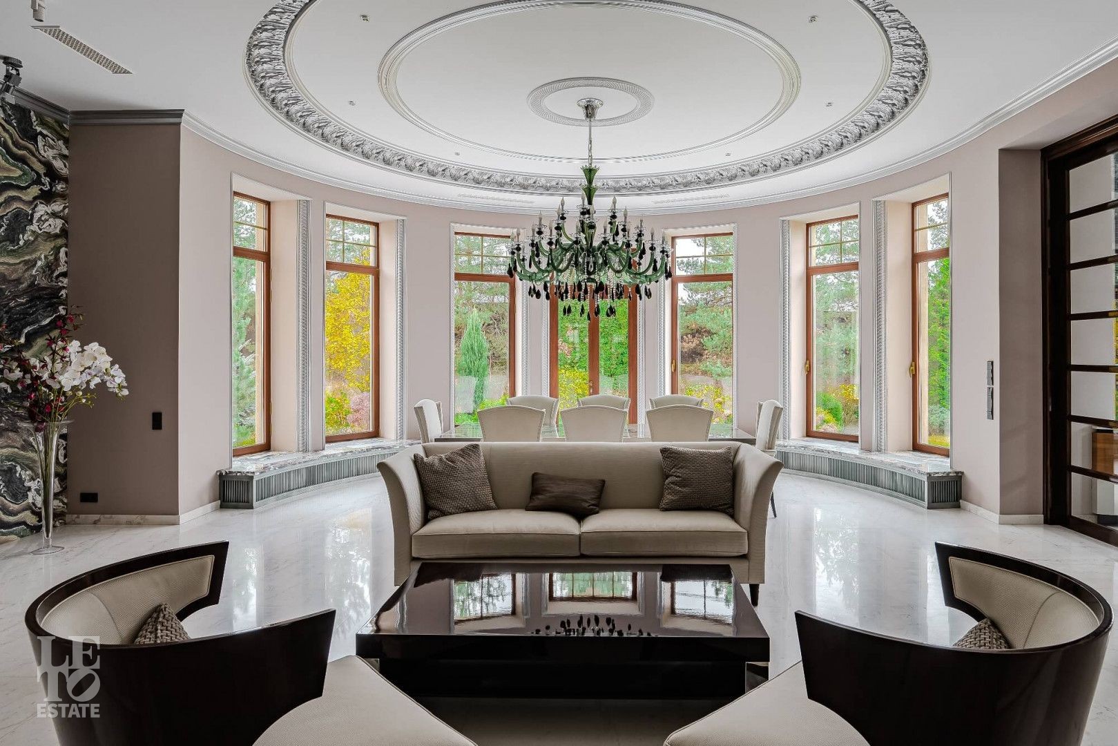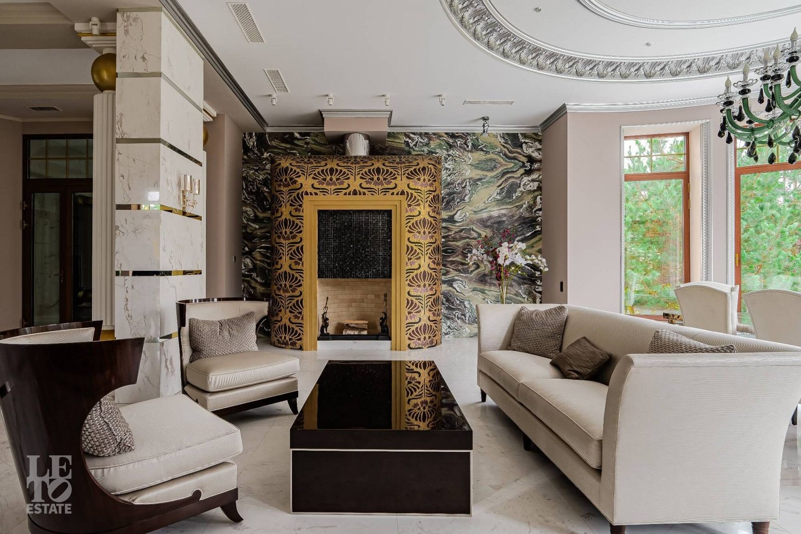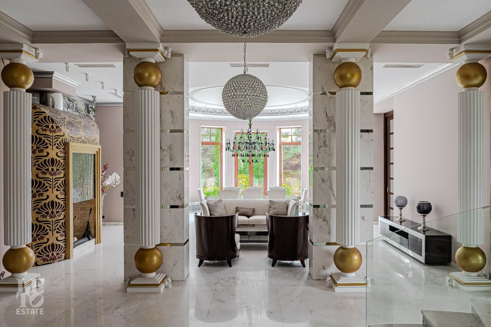 Дом построен в классическом стиле, отделка и декор выполнены в стиле ар-деко.