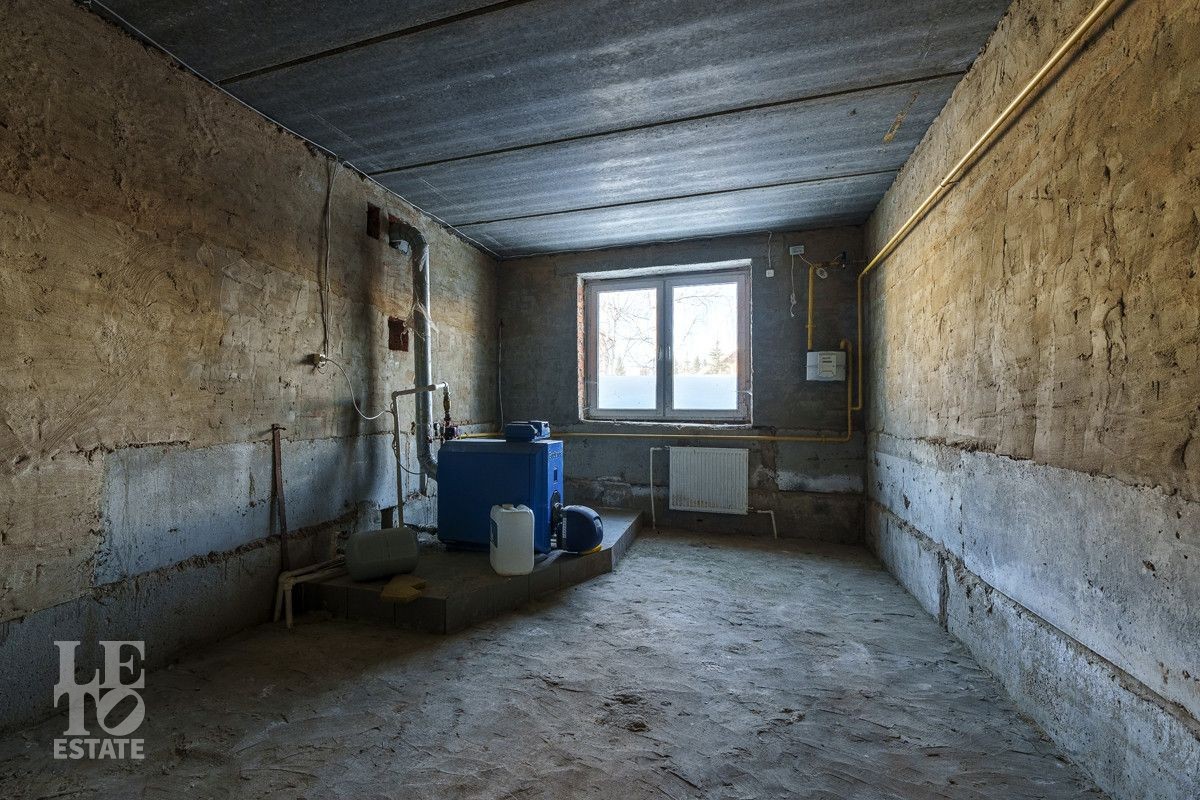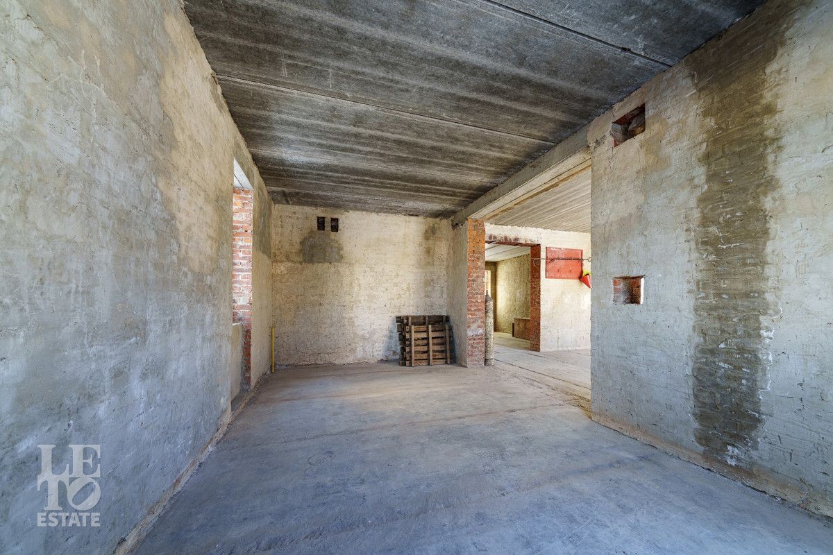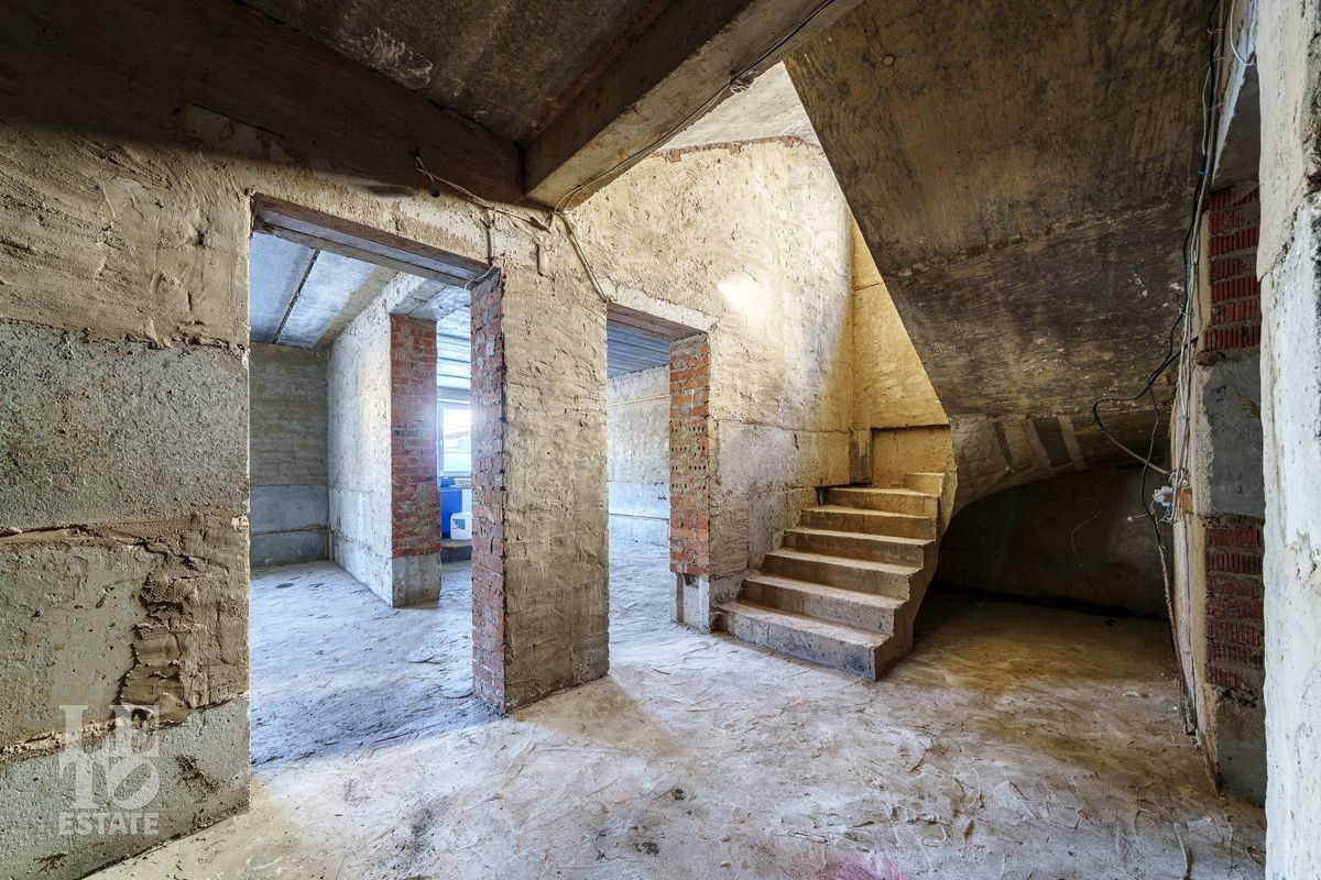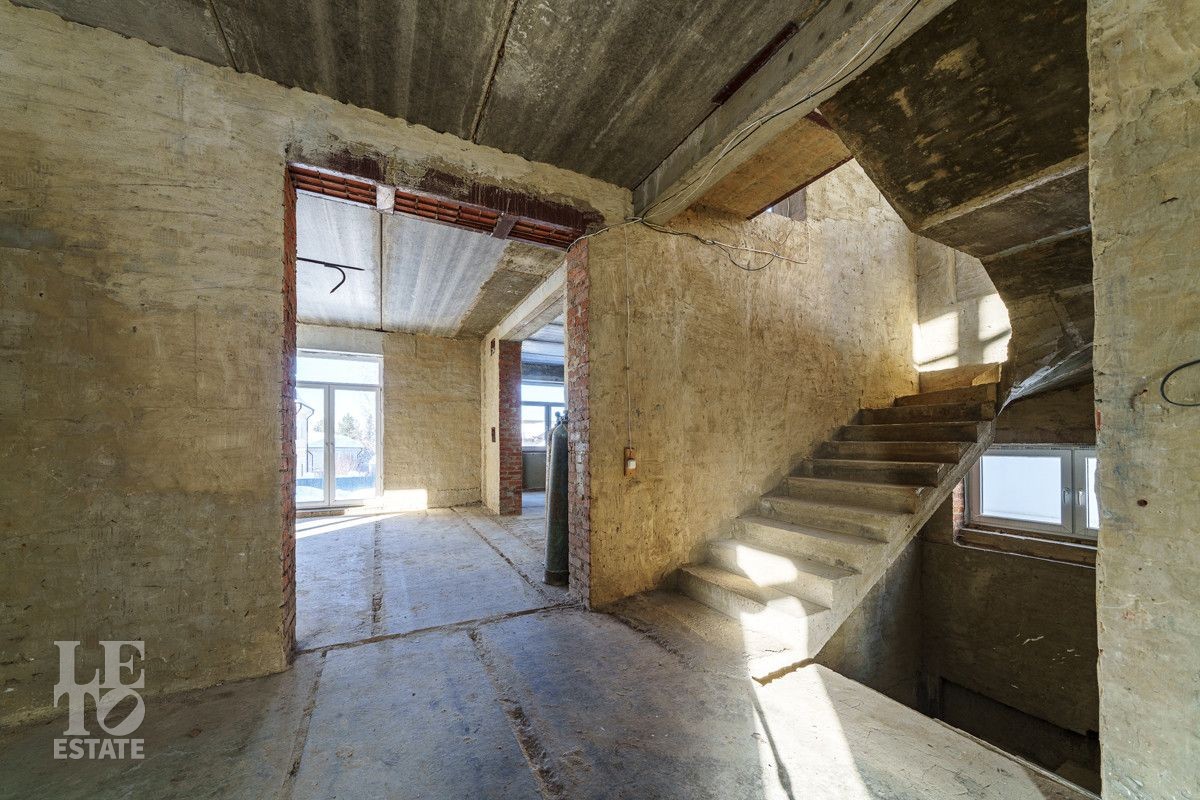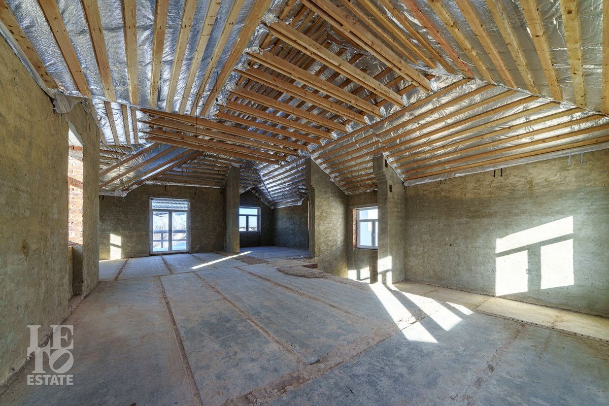 Дом построен в 2022 году из кирпича на монолитном фундаменте и с монолитными перекрытиями, фасад здания отштукатурен, крыша - металлочерепица. Заведены все необходимые коммуникации: Разведено временное электричество, подведен газ и установлено газовое оборудование, сделано разведение воды. Также в доме сделаны монолитные лестницы и стяжка пола.