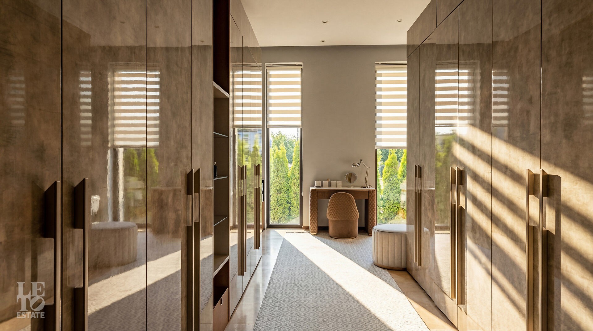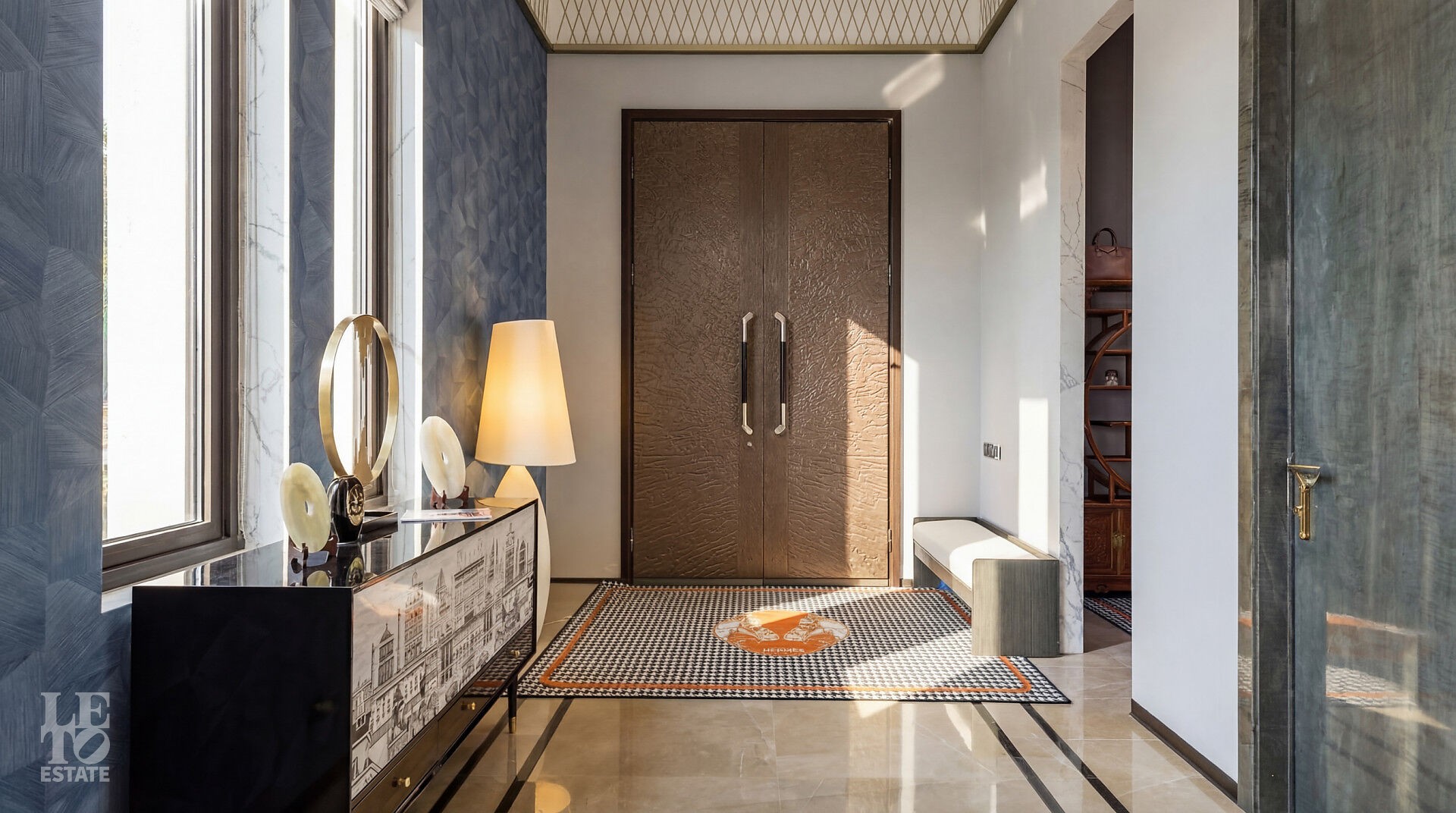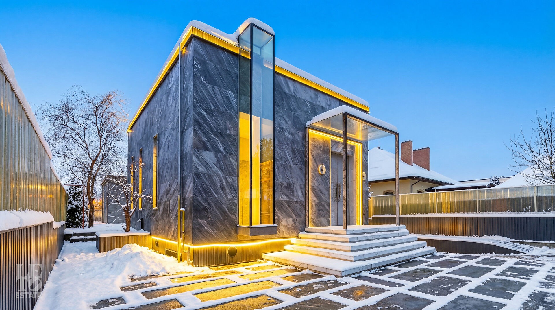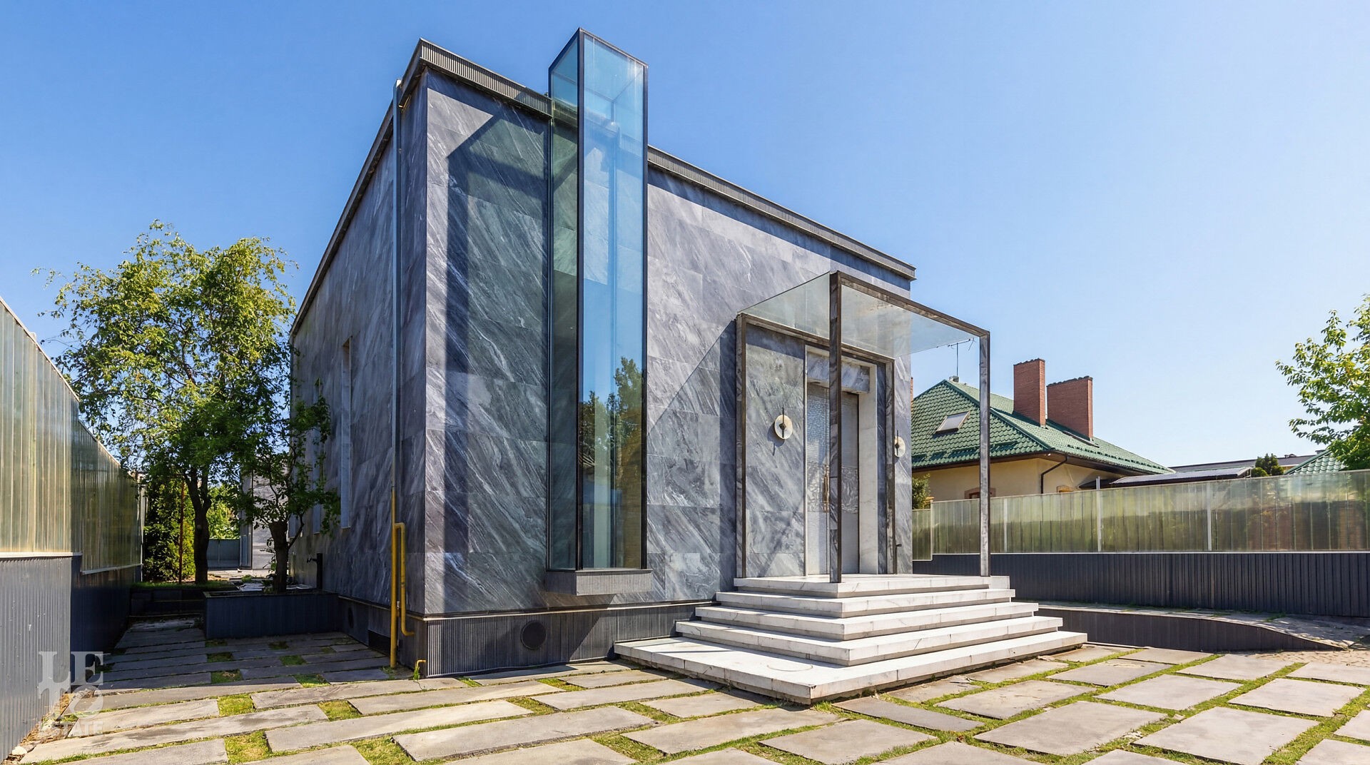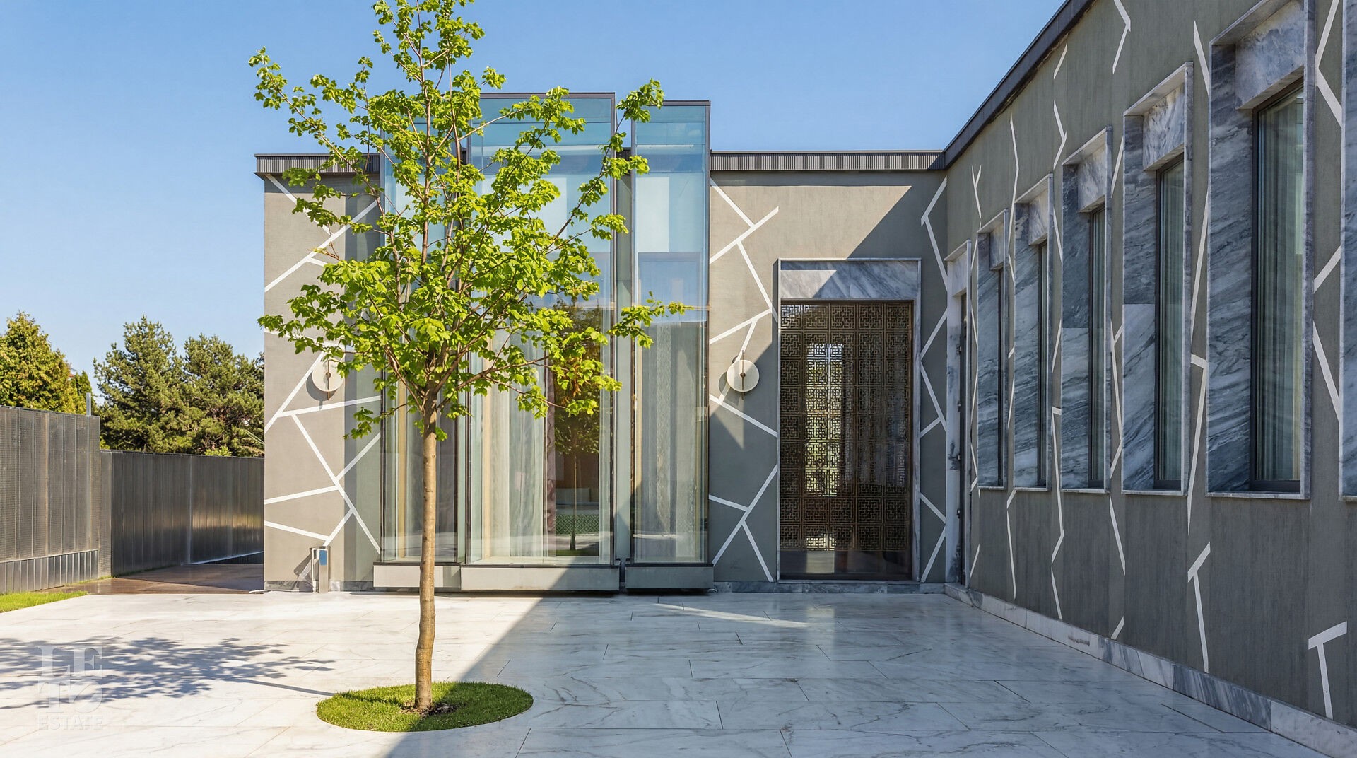 Современный и лаконичный фасад, облицованный серым мрамором, задаёт тон исключительной изысканности. Принцип чистых линий и минимализма продолжается внутри, где царит интерьер в стиле «тихой роскоши»: каждая деталь служит гармонии, комфорту и визуальному покою.