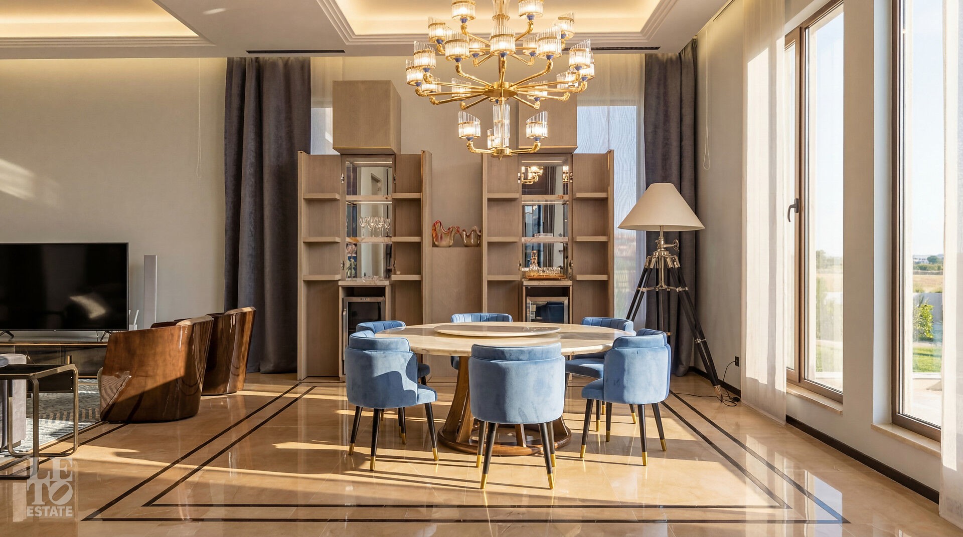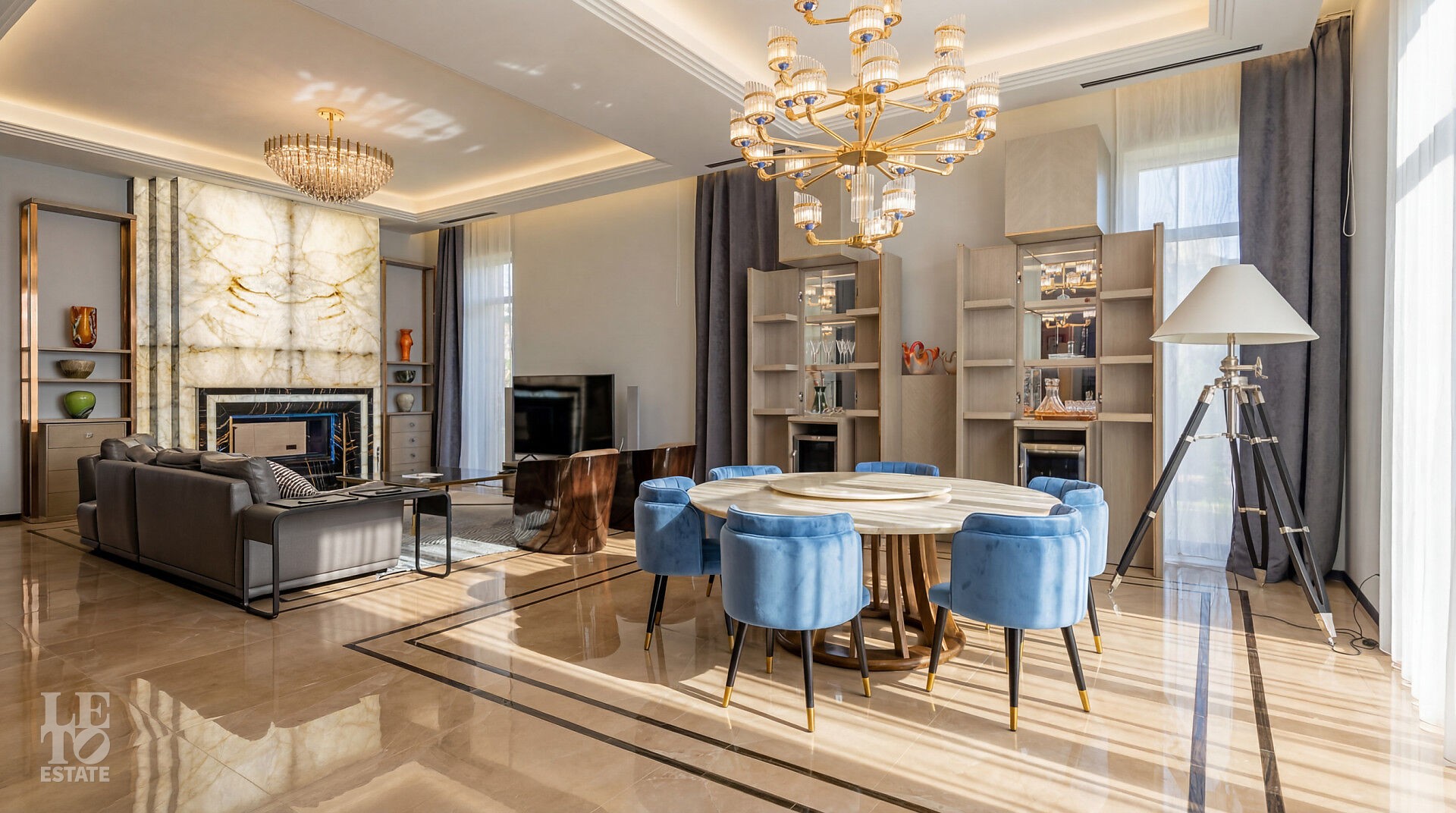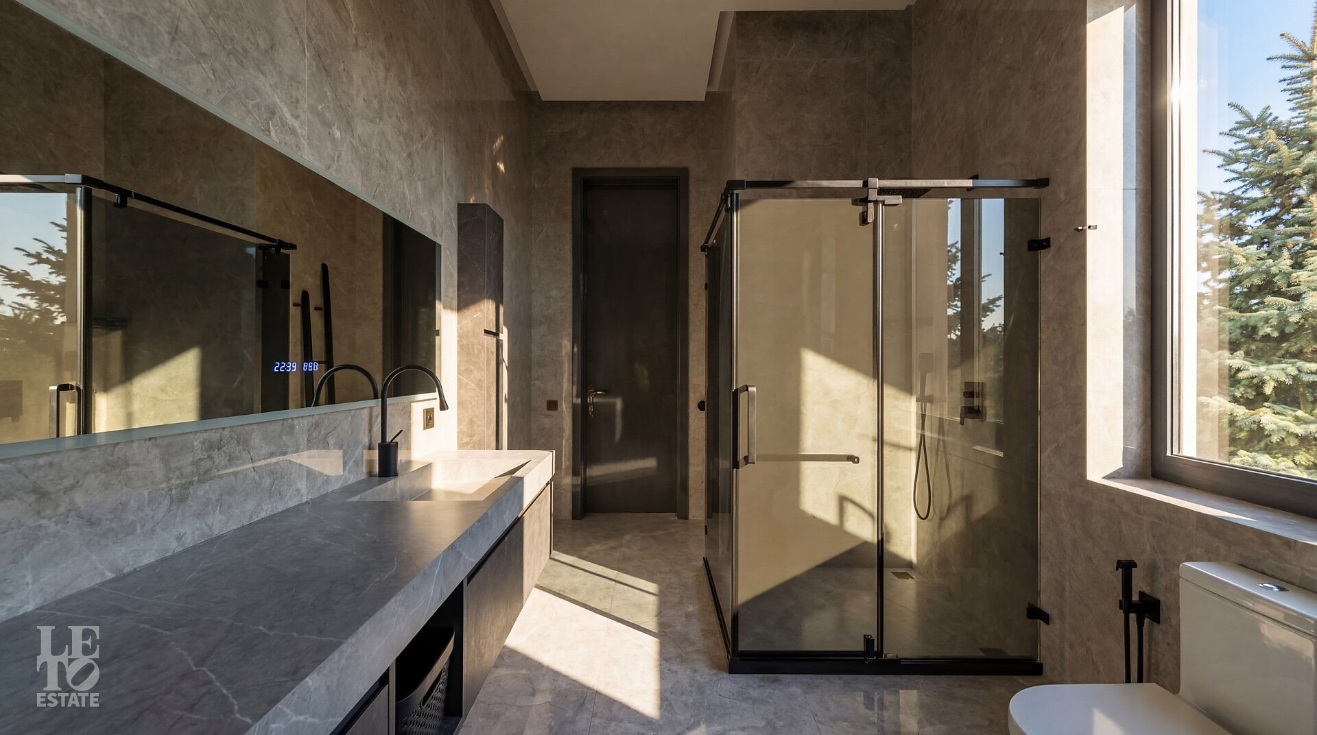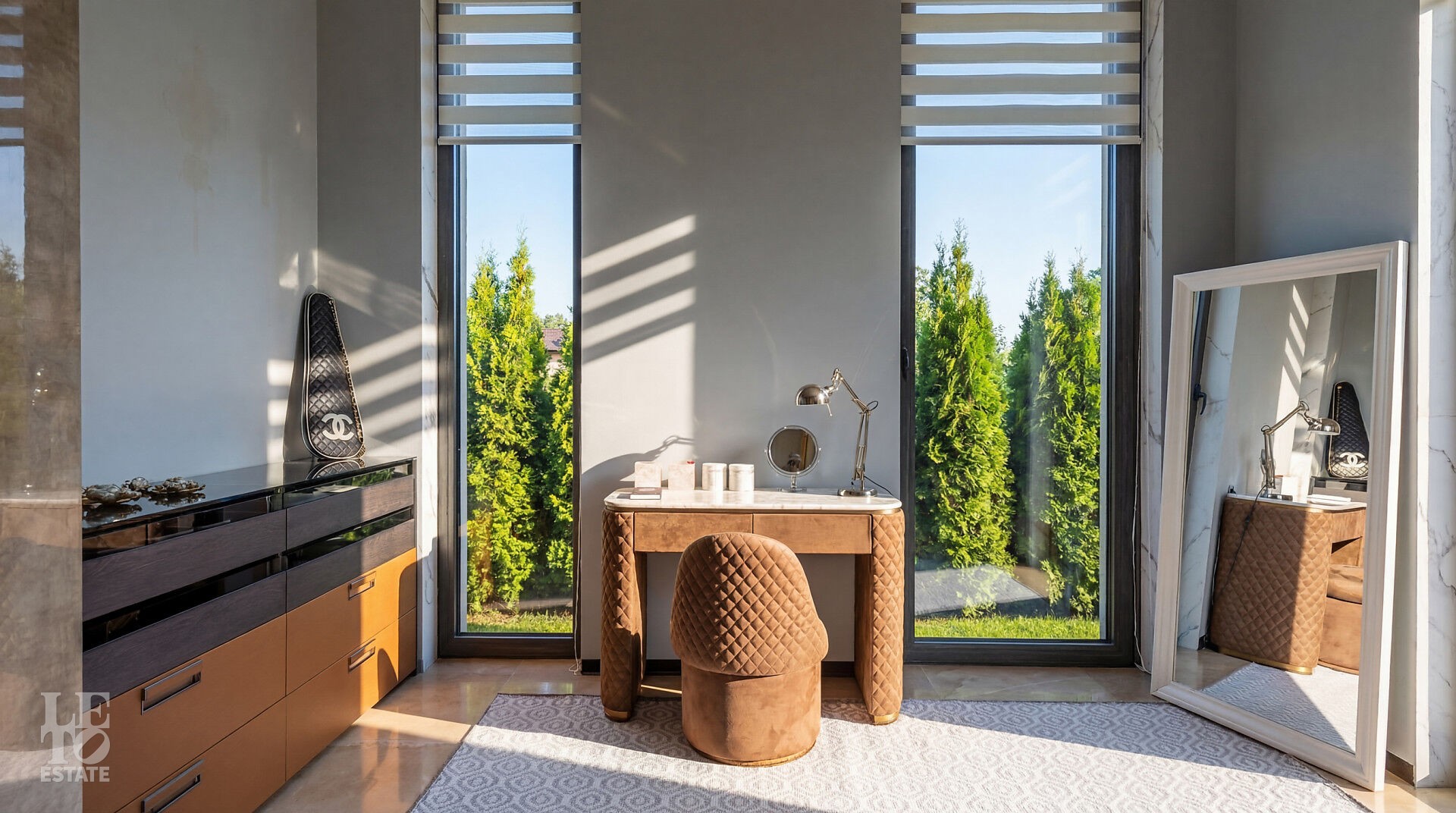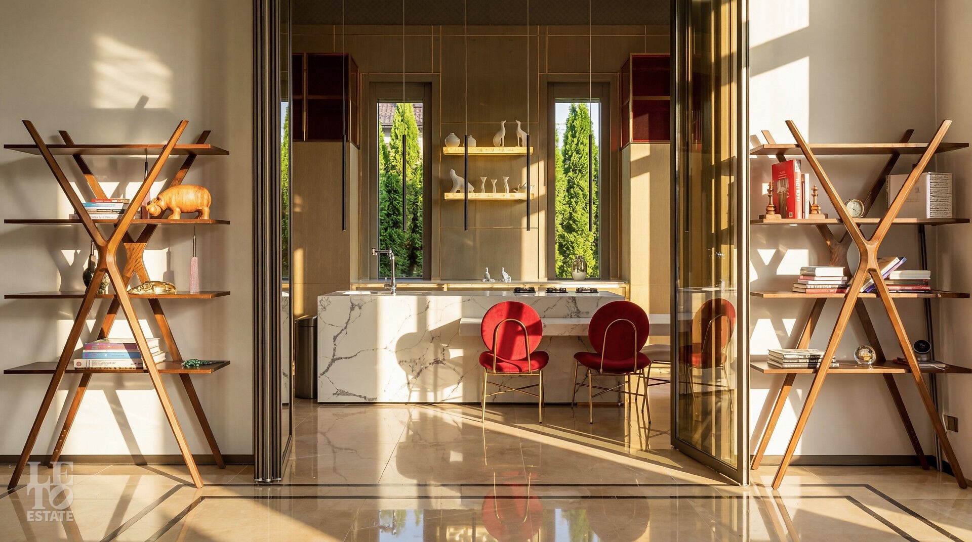 Современный и лаконичный фасад, облицованный серым мрамором, задаёт тон исключительной изысканности. Принцип чистых линий и минимализма продолжается внутри, где царит интерьер в стиле «тихой роскоши»: каждая деталь служит гармонии, комфорту и визуальному покою.