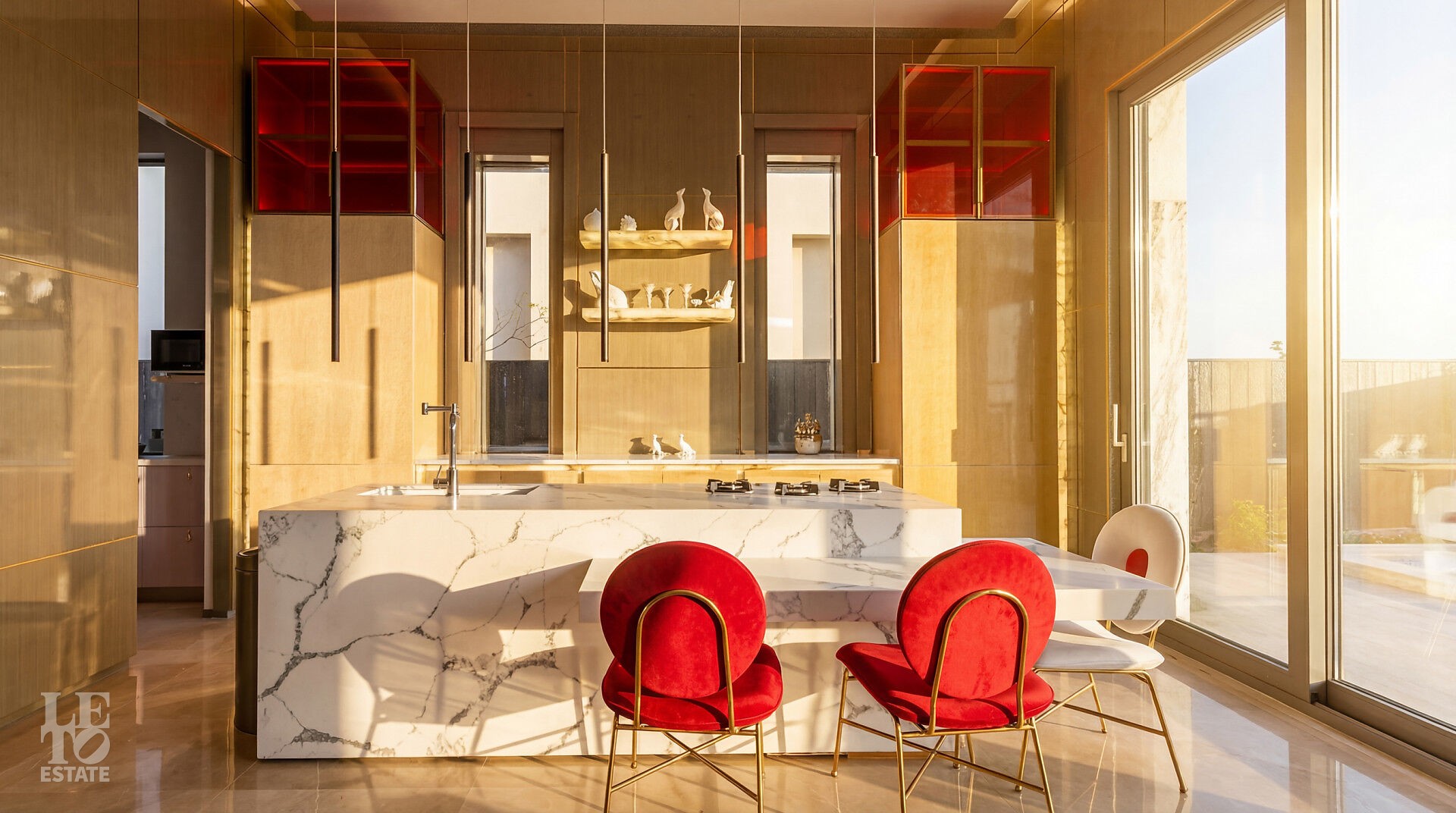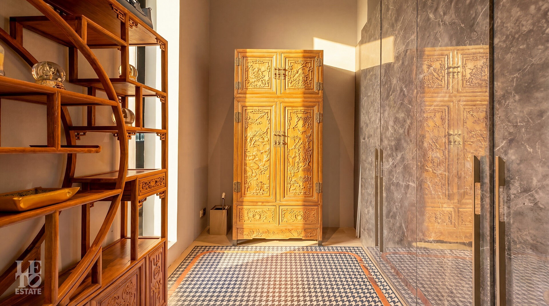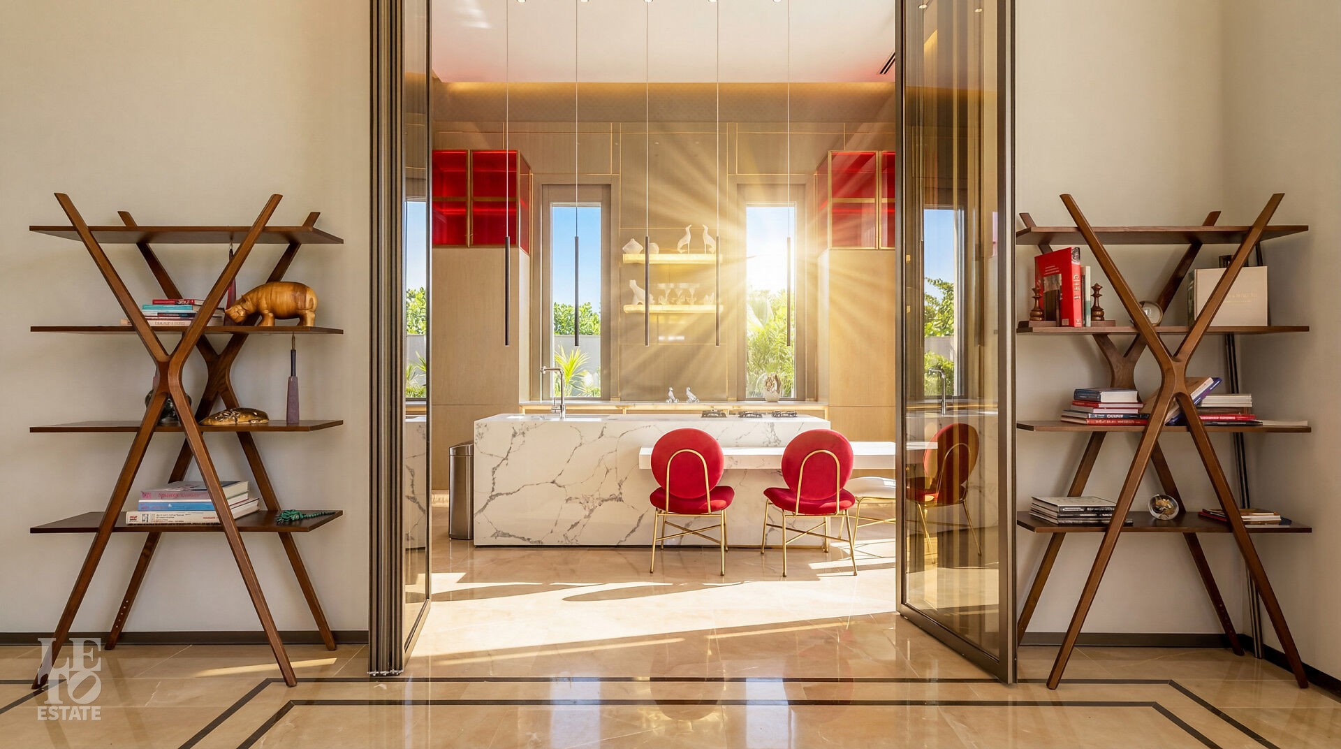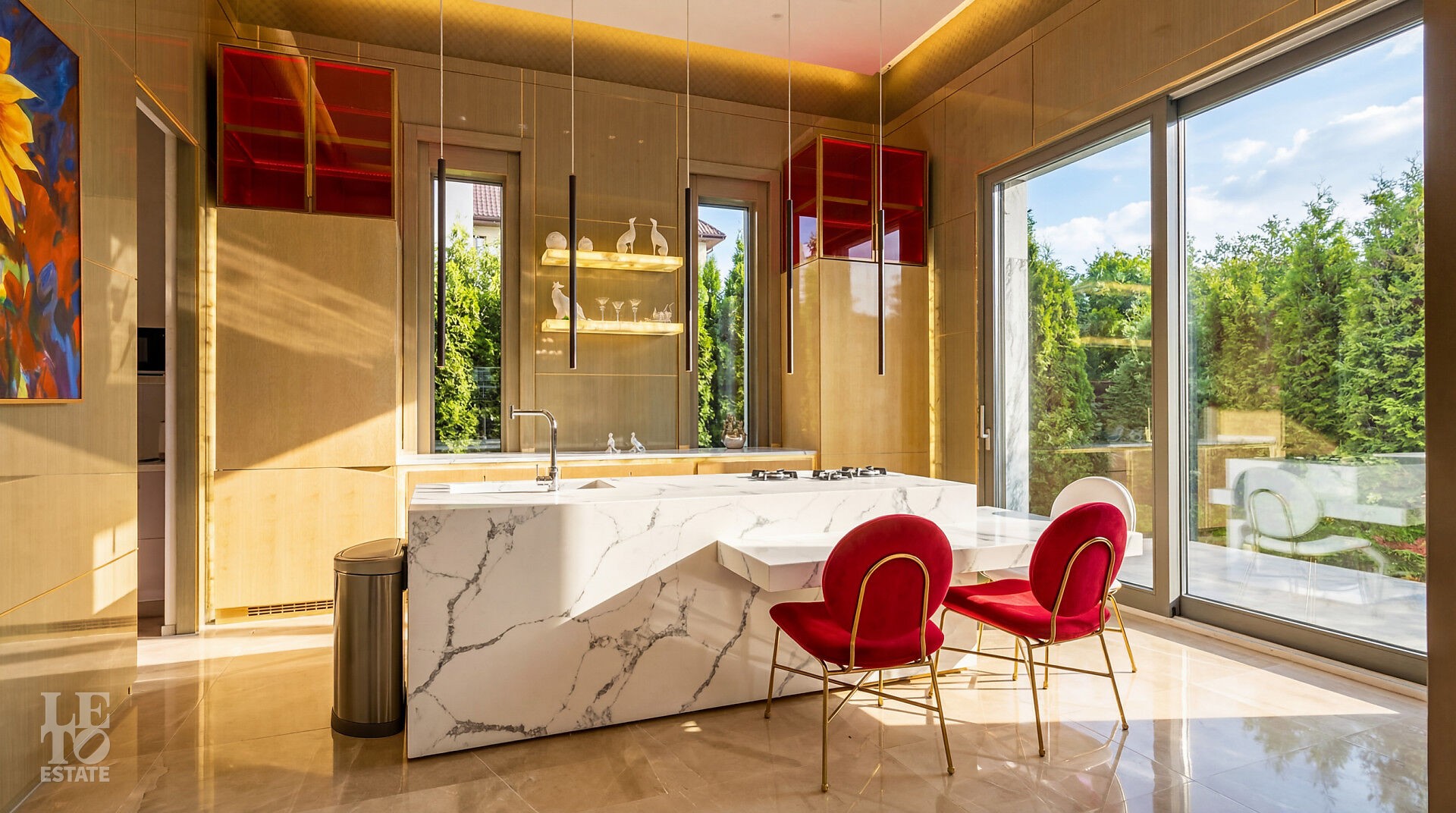 Современный и лаконичный фасад, облицованный серым мрамором, задаёт тон исключительной изысканности. Принцип чистых линий и минимализма продолжается внутри, где царит интерьер в стиле «тихой роскоши»: каждая деталь служит гармонии, комфорту и визуальному покою.