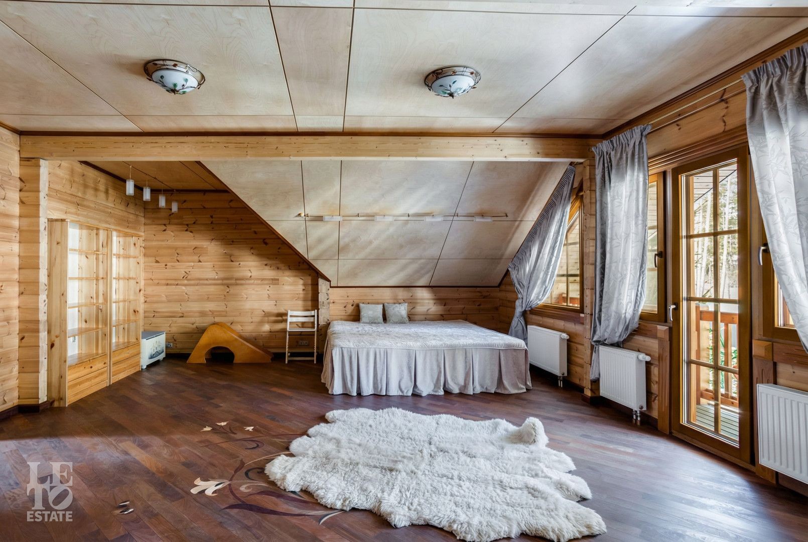 Второй этаж: спальня со своей ванной комнатой, гардеробная, две детские спальни, санузел.