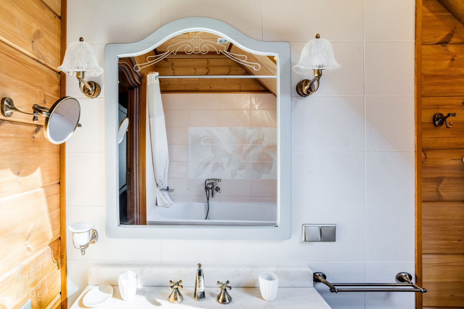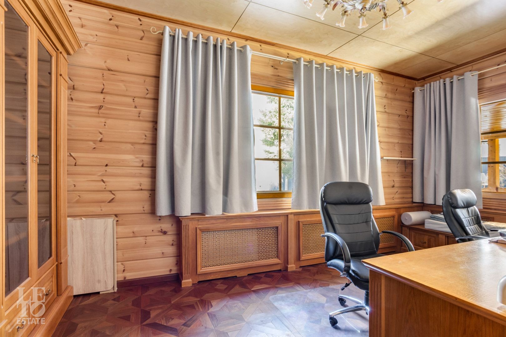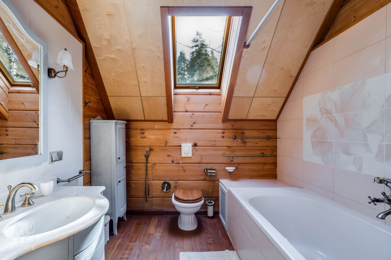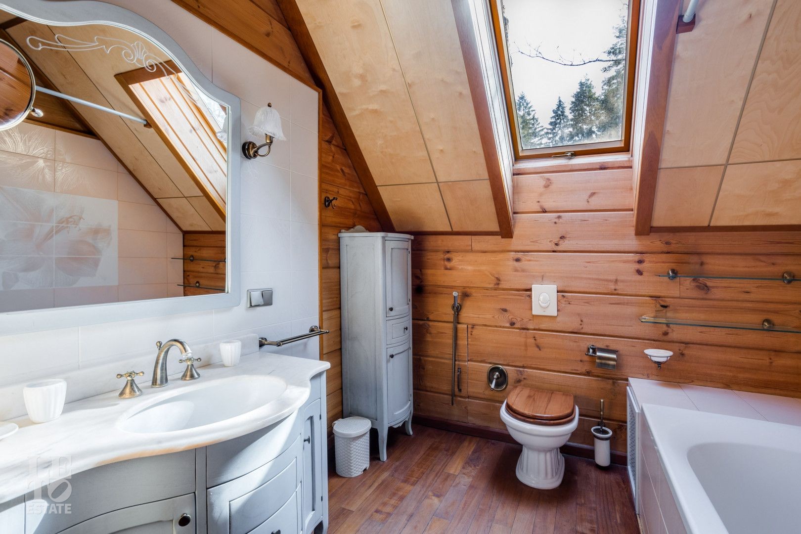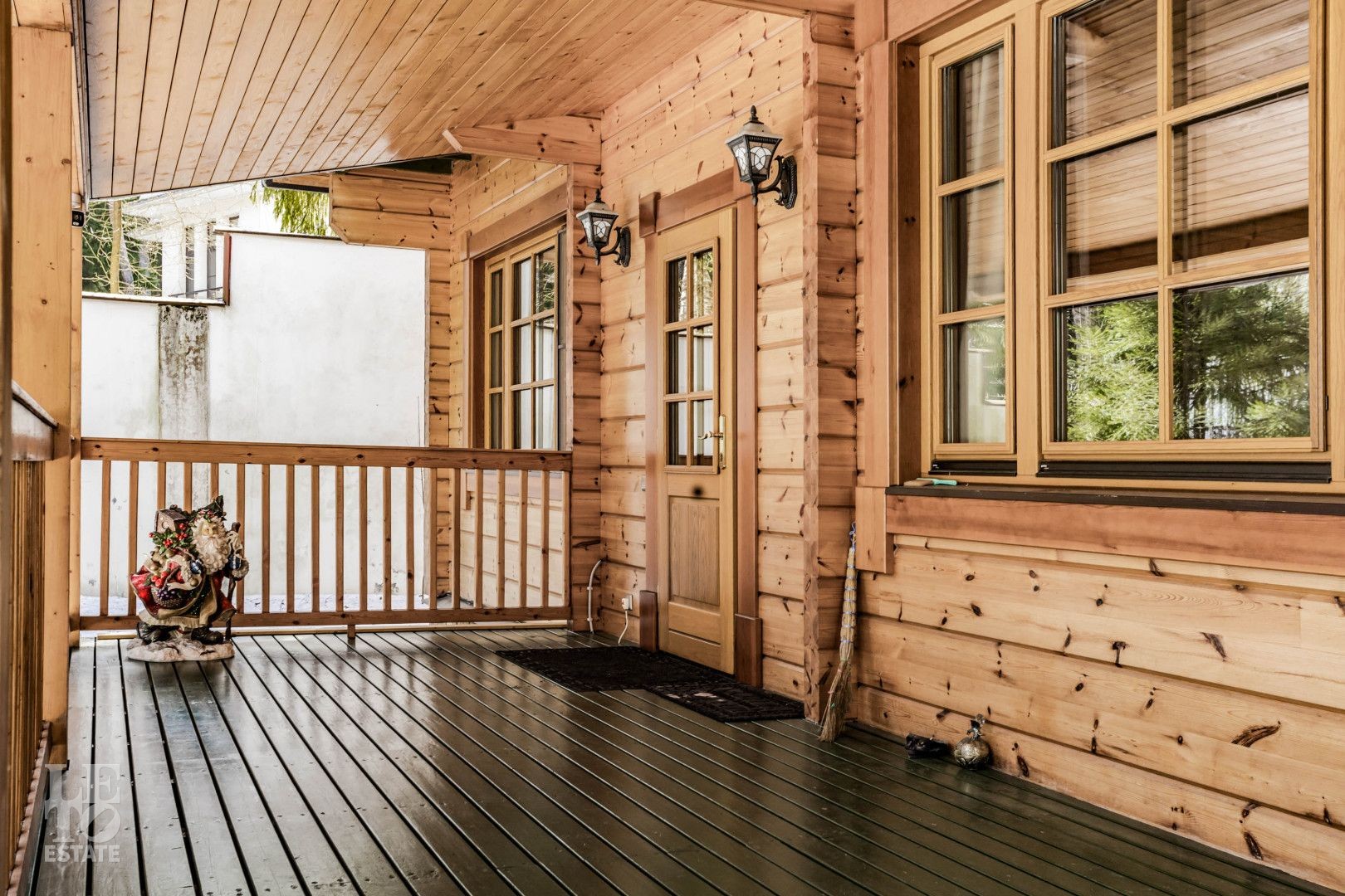 Дом расположен на лесном участке с вековыми соснами. На участке площадью 23 сотки сделан дренаж, ландшафтный дизайн, высажены цветы, дорожки с освещением. На участке гараж на два автомобиля с мойкой, гостевой дом.
