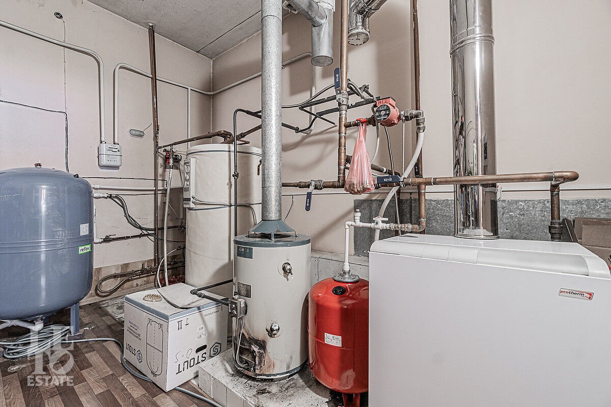 К дому подведены все центральные коммуникации: электричество (15 кВт), магистральный газ, а также автономные системы — скважина и септик, что обеспечивает полную независимость и комфорт.